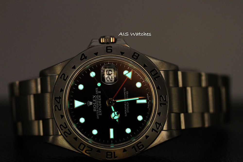 Up for sale is a Rolex Explorer II 16570 with Black Dial Box & Papers. This watch is an F Serial NO Lug Hole Case with Solid End Links (SEL). Overall the watch is in good condition, also the bracelet stretch is very minimal.