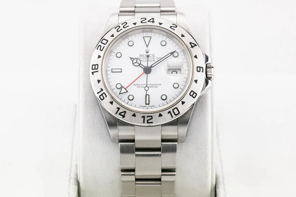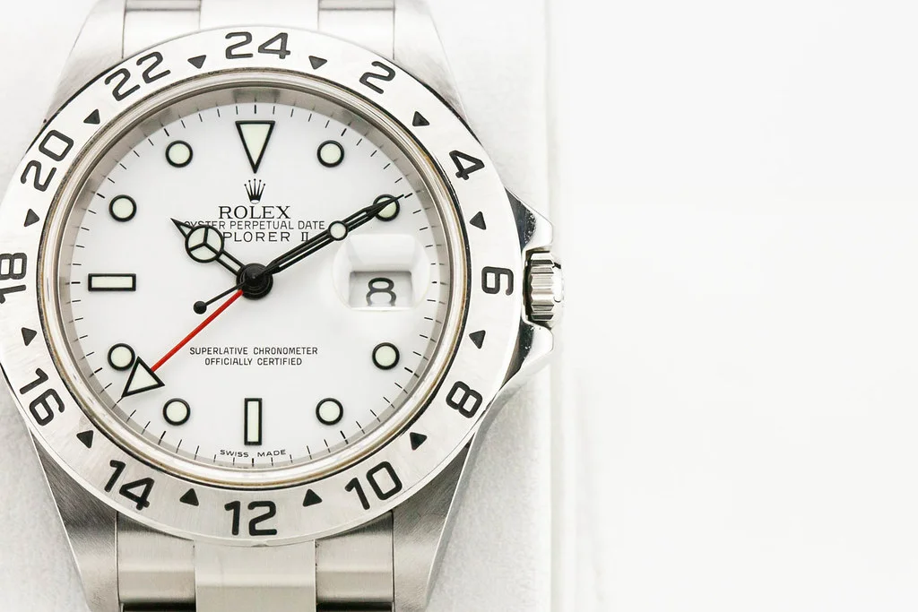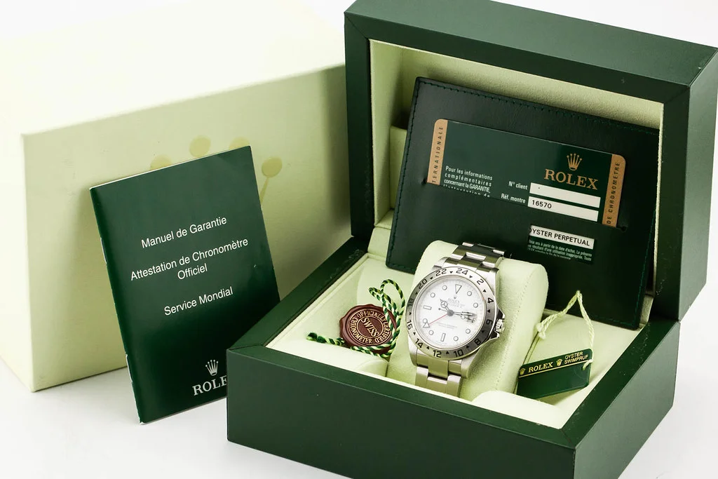 ·Up for sale is an excellent condition Rolex Explorer II 40mm Polar White Z Serial, reference # 16570. It comes complete with all boxes, papers, booklets, hang tags and Rolex Warranty Card dated October 2007.