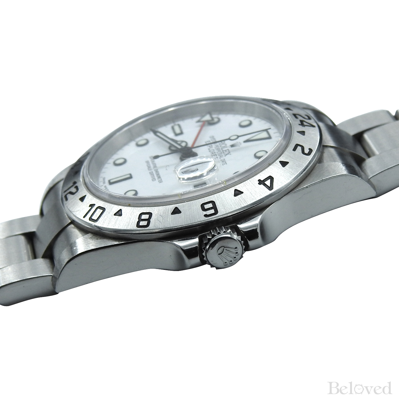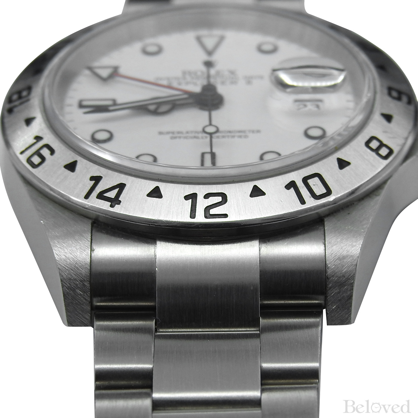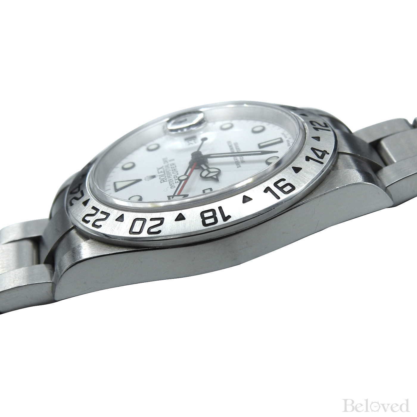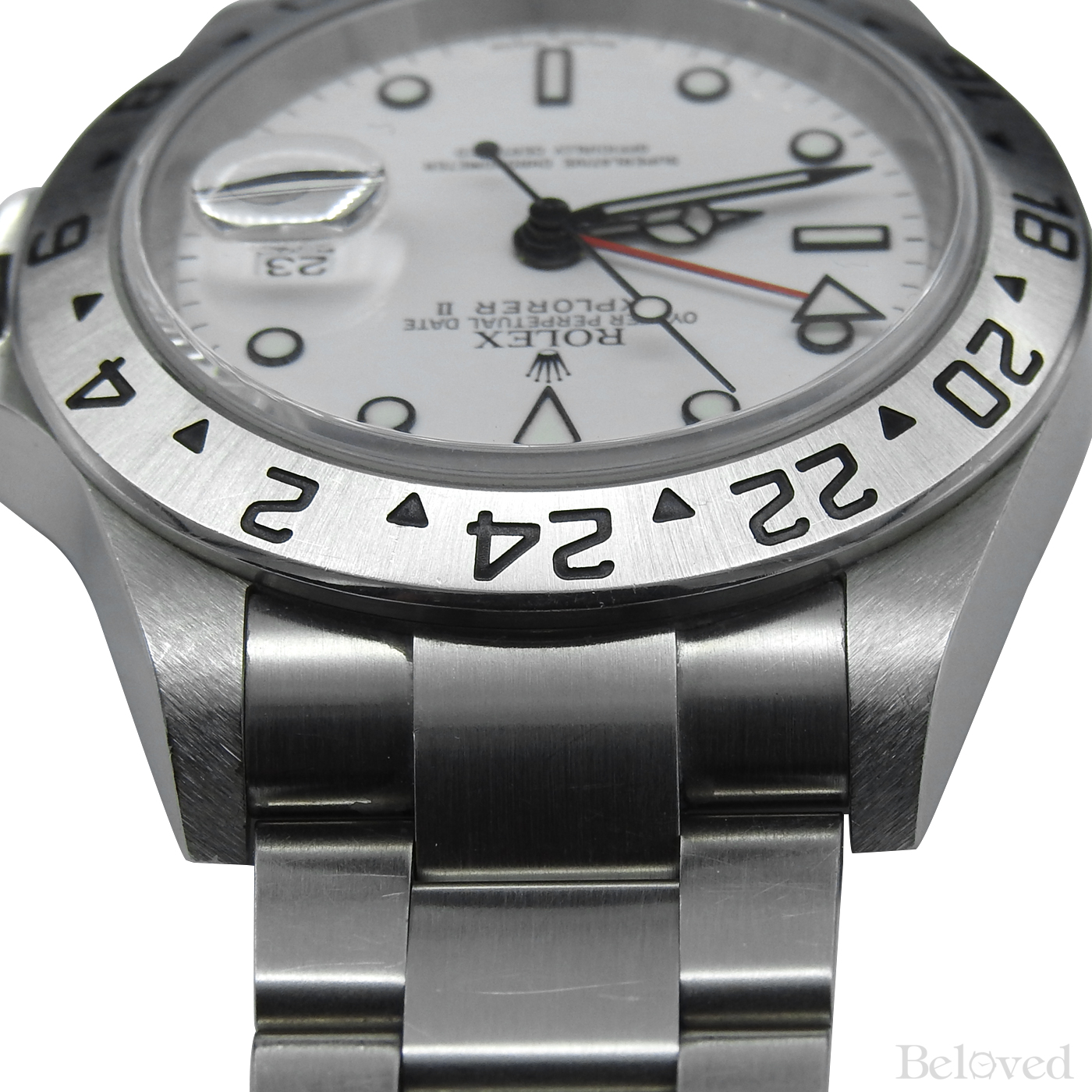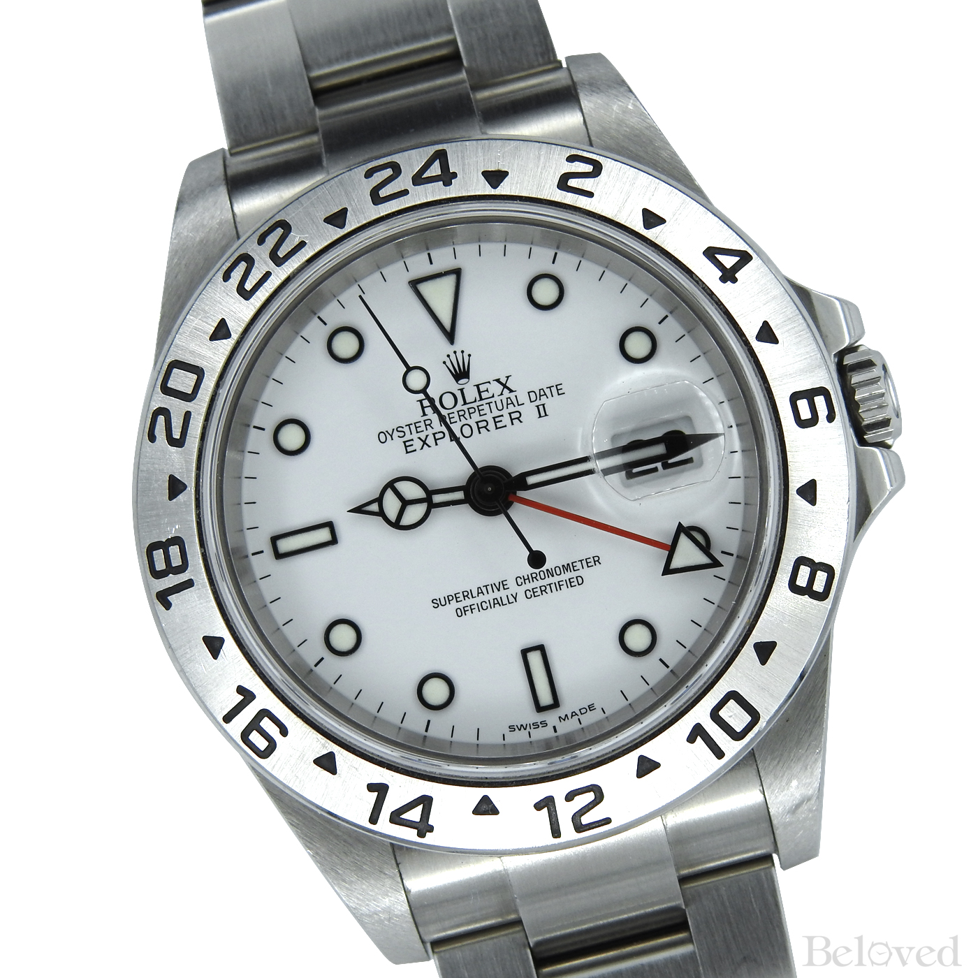 Posts 993 Likes 1,870 MPWATCH ·Aug 8, 2020 Rolex Explorer II Model 16570 Produced in the year 2007 (Z series) Near Mint unpolished condition Bracelet "slack" test rating 9.5/10 (near mint) 40mm in diameter Powered by an automatic Rolex Caliber 3185 Steel SEL (Solid End Link) Oyster bracelet with half-size flip-lock clasp $7,850
