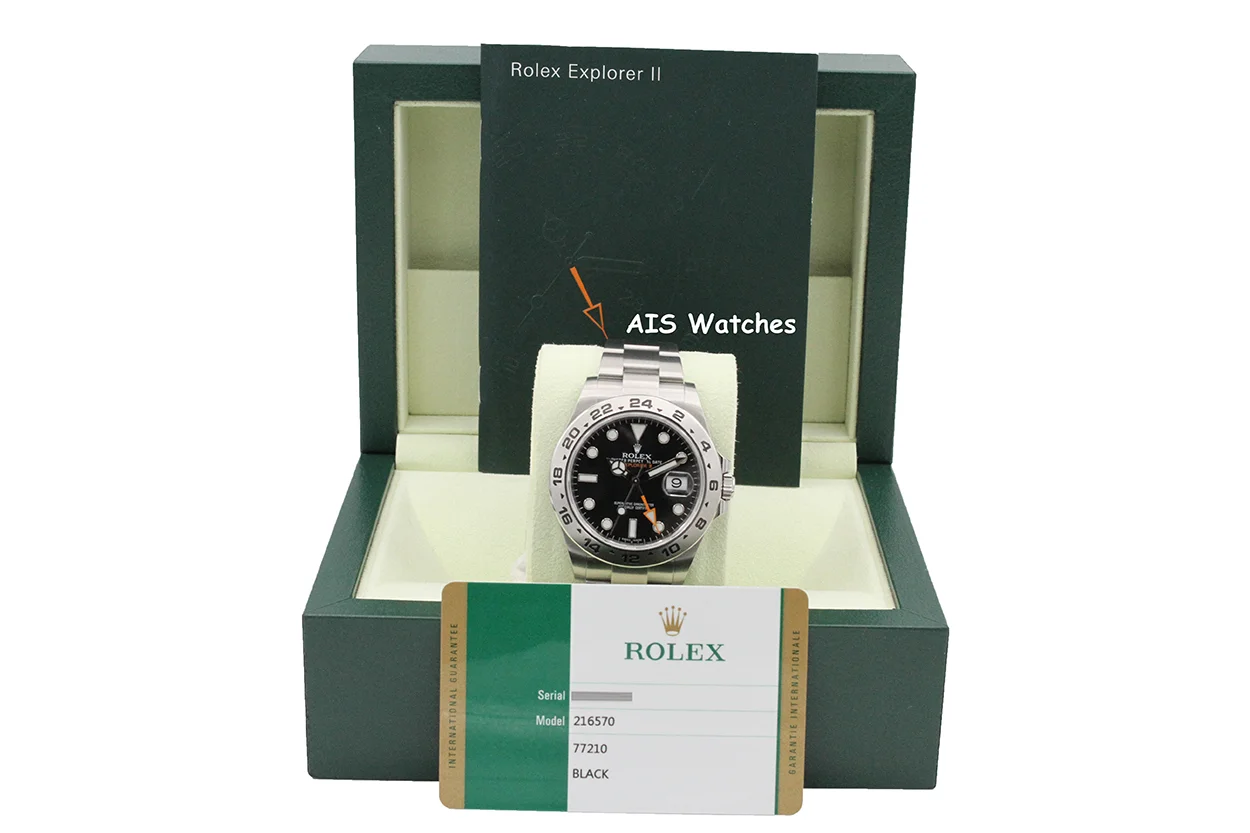 Up for sale is a Rolex Explorer II 216570 Black Dial 42mm Random Serial Box & Papers. The timepiece is in excellent condition.