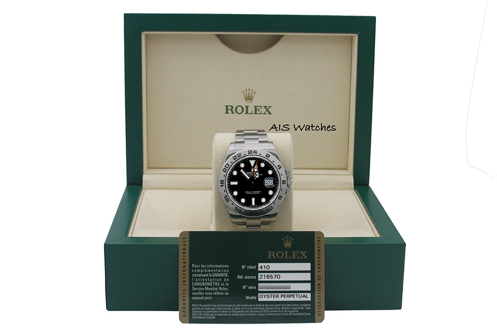 Up for sale is a Rolex Explorer II 216570 Black Dial 42mm Random Serial Box & Papers. The timepiece is in excellent condition.
