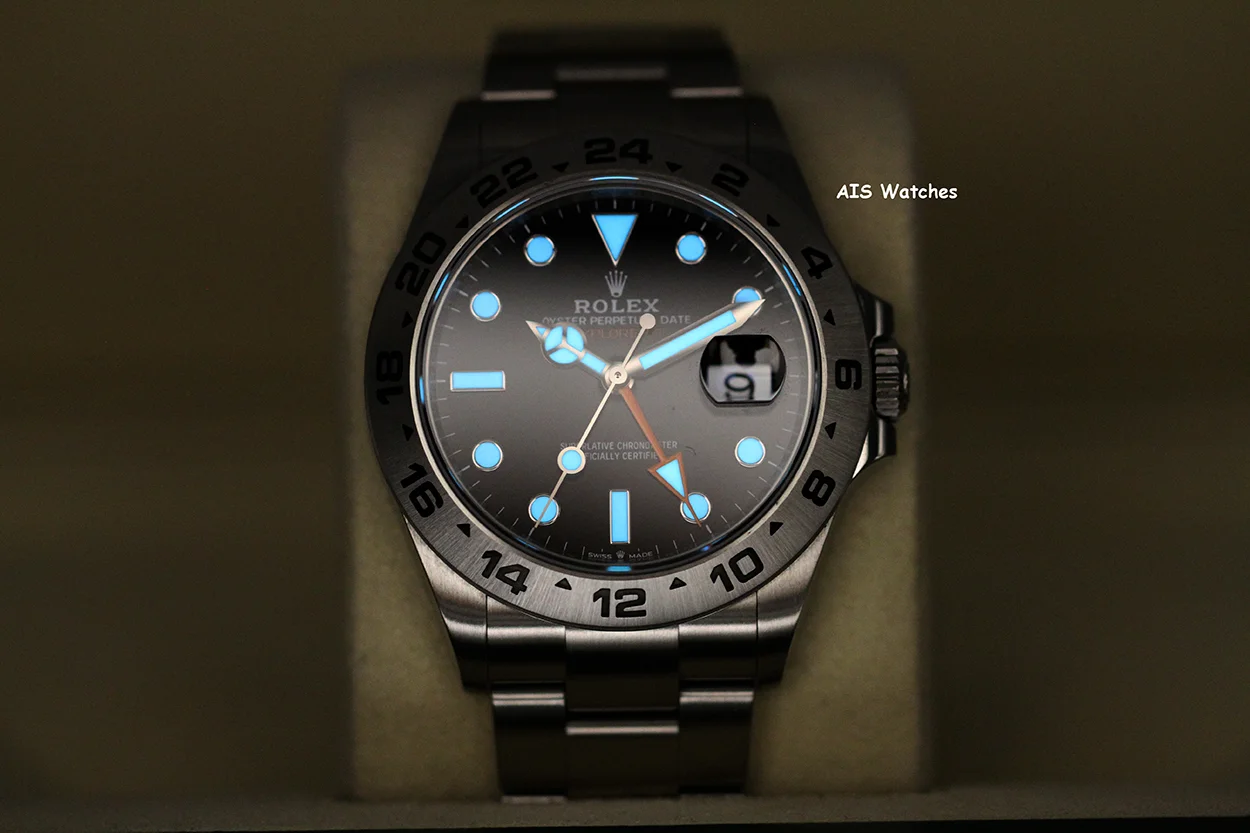 Up for sale is a Rolex Explorer II 226570 Black Dial 42MM Box & Papers. The timepiece is in excellent condition.
