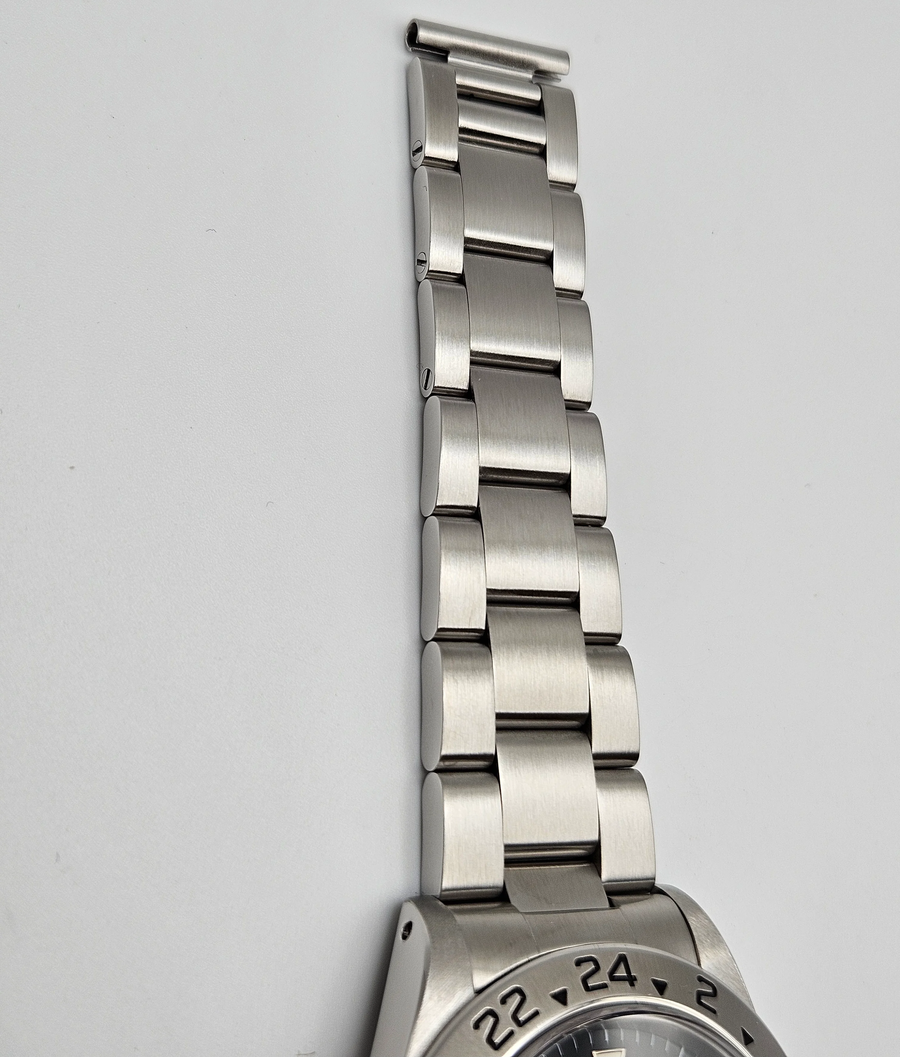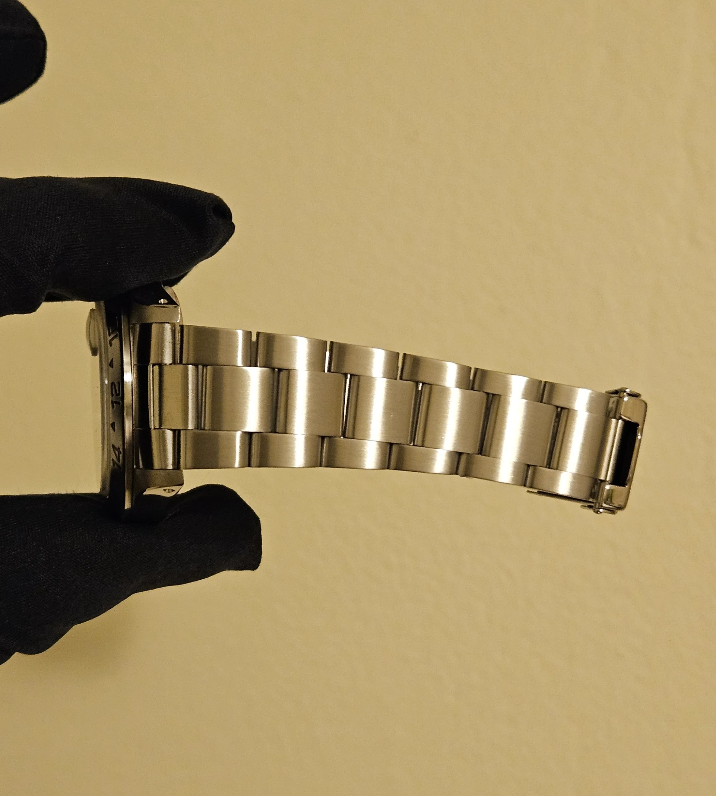 Aesthetic Condition: The crystal is free of any chips, scratches or scuffs. Dial and hands are both tritium and have aged to a beautiful creamy tone. No blemishes to note on the bezel, case, or bracelet.