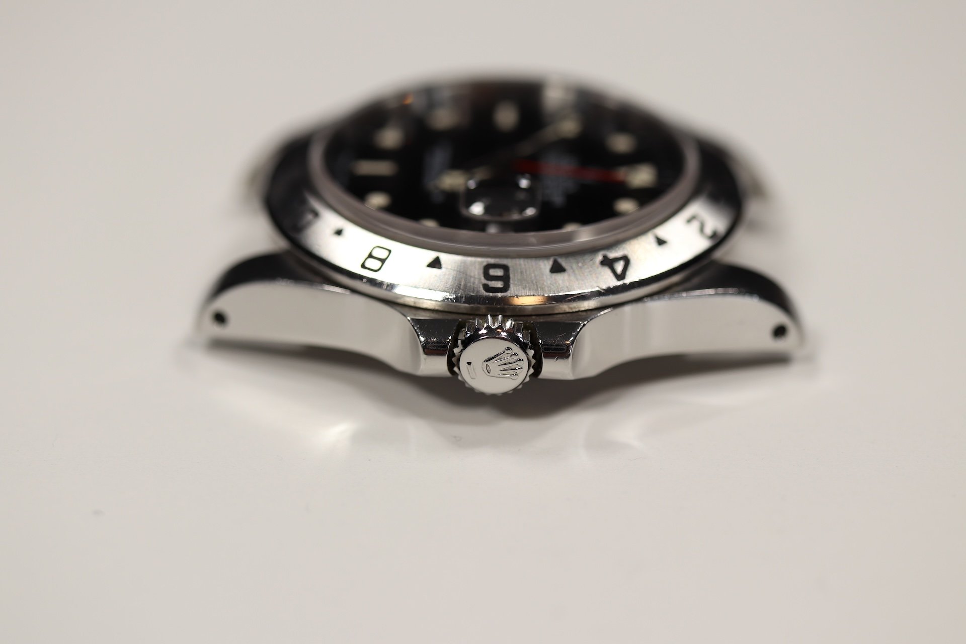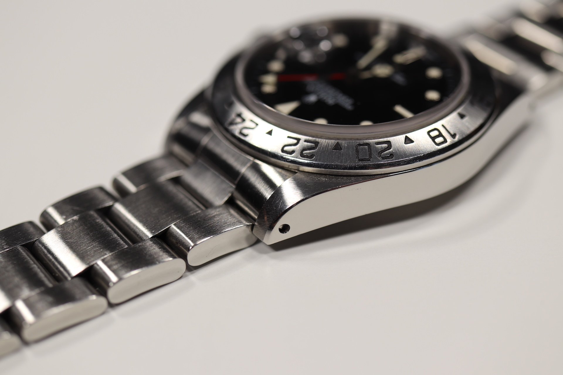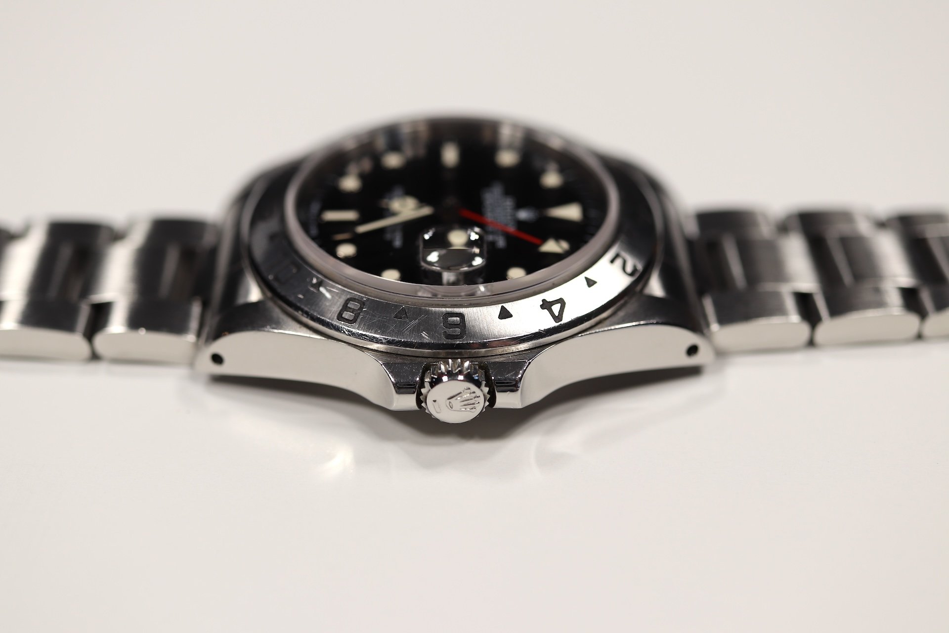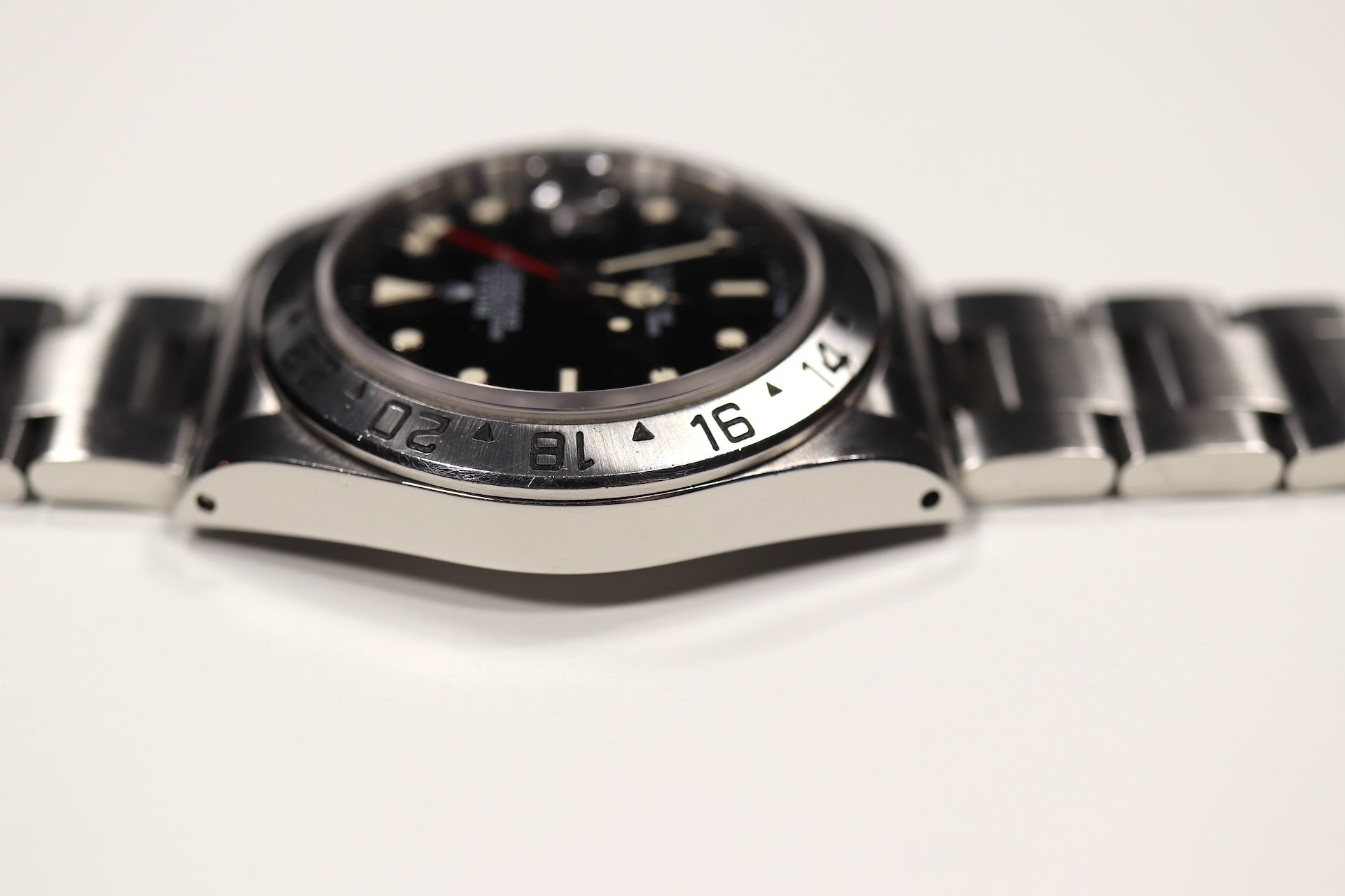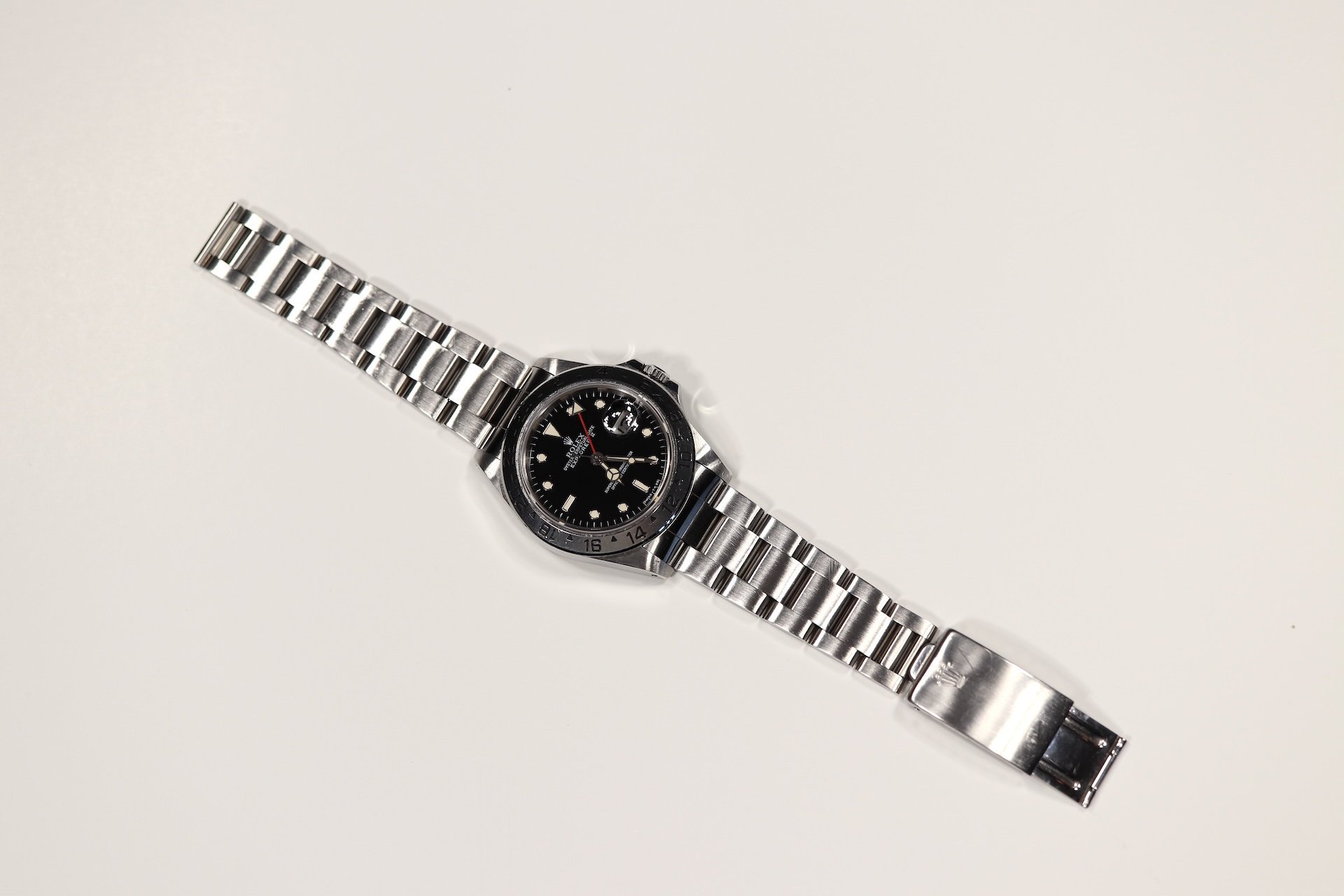 ·For sale, I have a Rolex Explorer II ref. 16570. Equipped with the Rolex 3185 Movement. The case measures 40mm without the crown. It's an E serial number dating back to 1990. The watch is working well, and all functions are working correctly. Service history is not available. The watch has aged very nicely, and the Patina is a rich, creamy colour.
