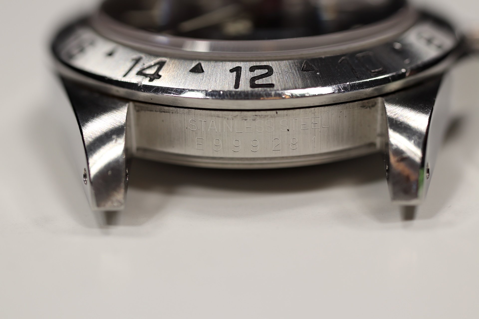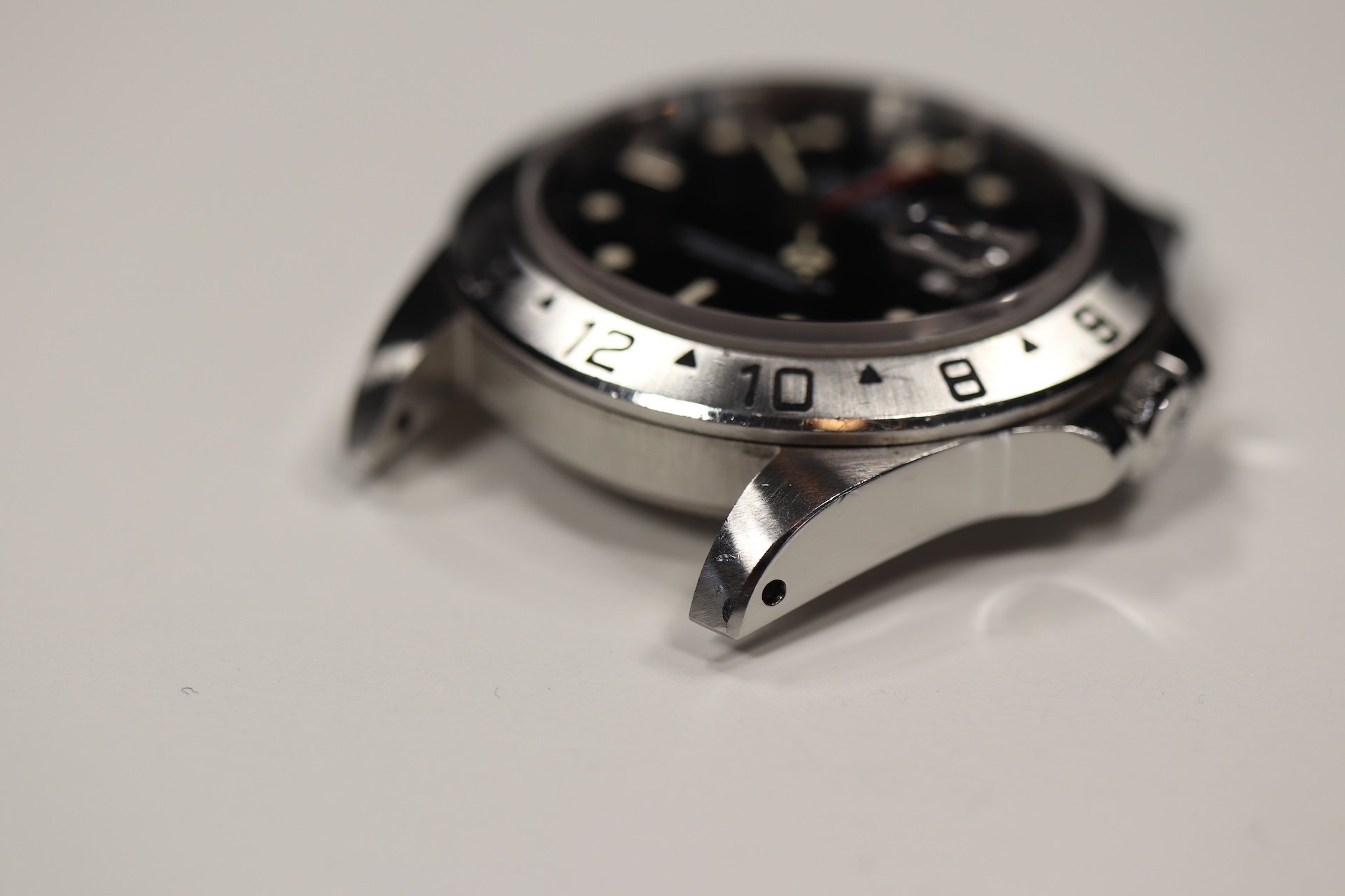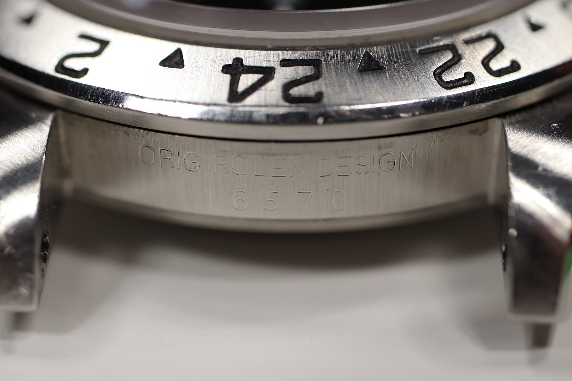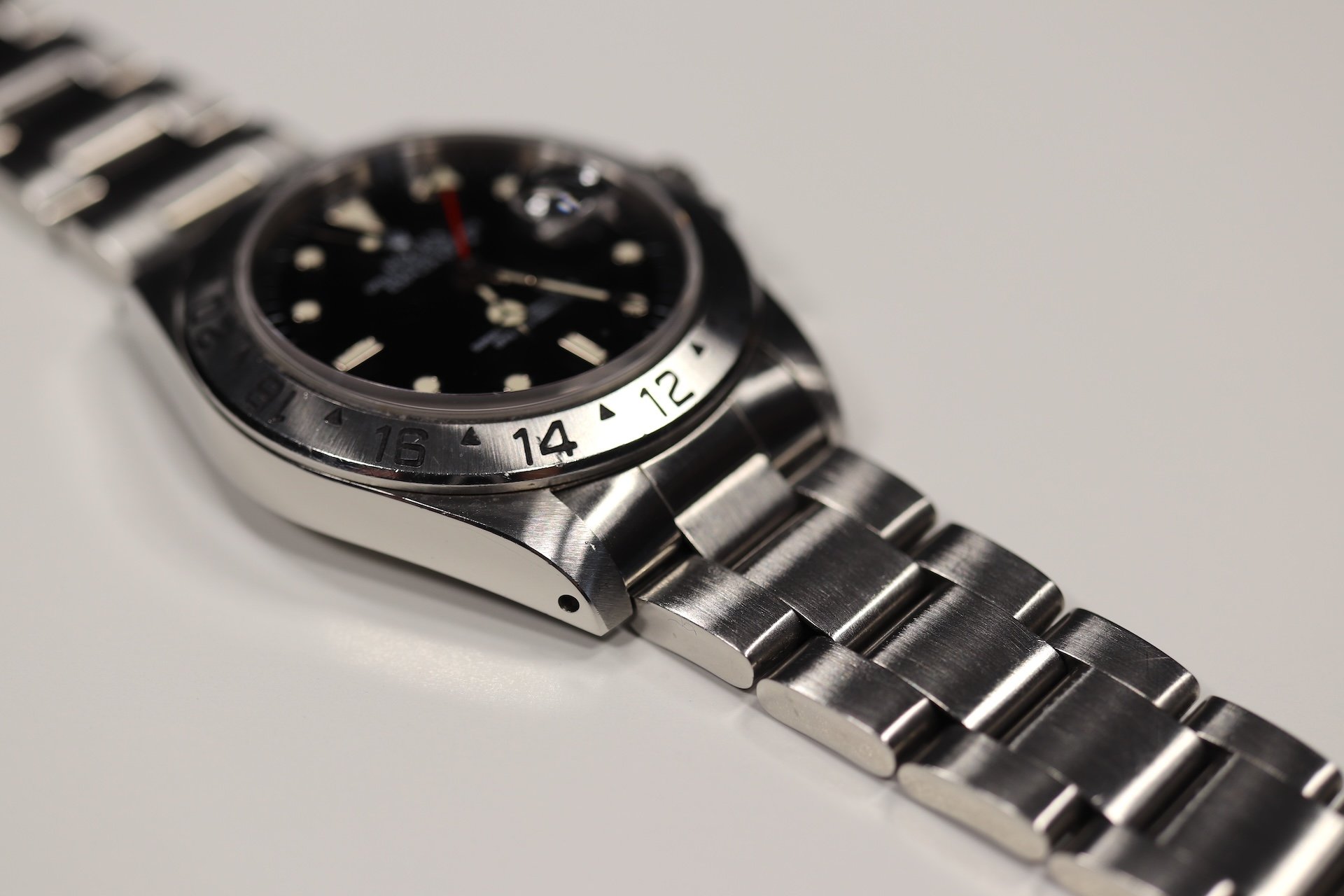 ·For sale, I have a Rolex Explorer II ref. 16570. Equipped with the Rolex 3185 Movement. The case measures 40mm without the crown. It's an E serial number dating back to 1990. The watch is working well, and all functions are working correctly. Service history is not available. The watch has aged very nicely, and the Patina is a rich, creamy colour.