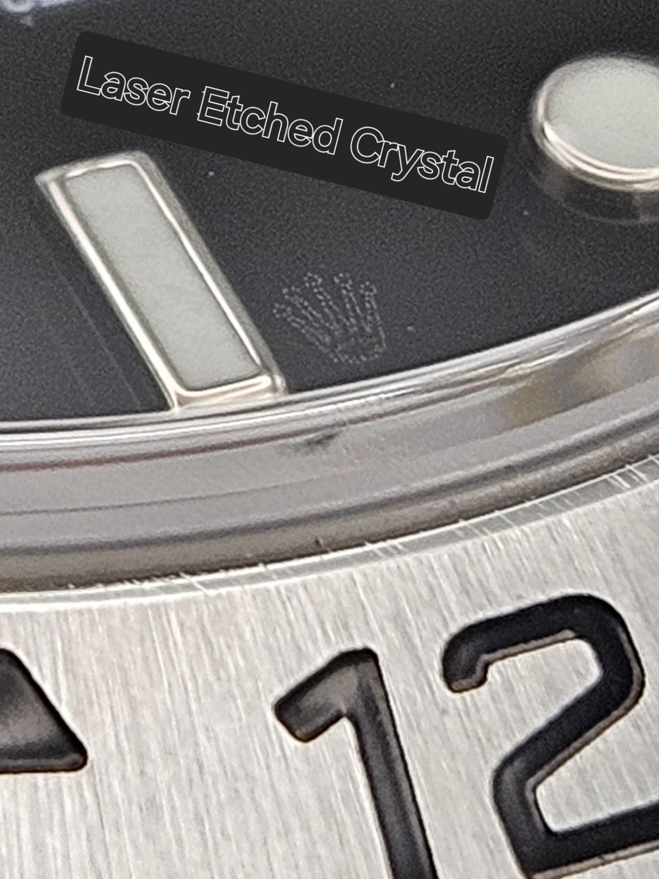 Aesthetic Condition: The bezel and lugs are in exceptional condition and still retain factory brushed finish. Crystal is clean and free of any blemishes. Using a loupe, the laser etched crown is visible at the 6 o'clock position.