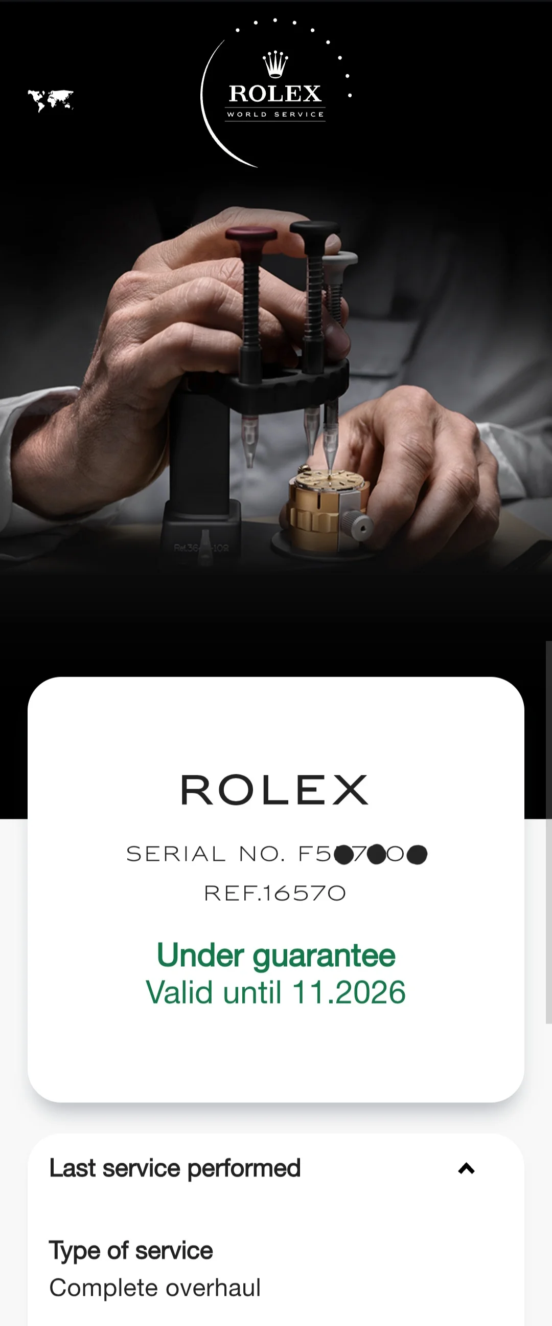 Box, Card, and Accessories: No original box or original papers. Rolex Service Center NFC enabled card + the green Rolex service pouch & box pictured