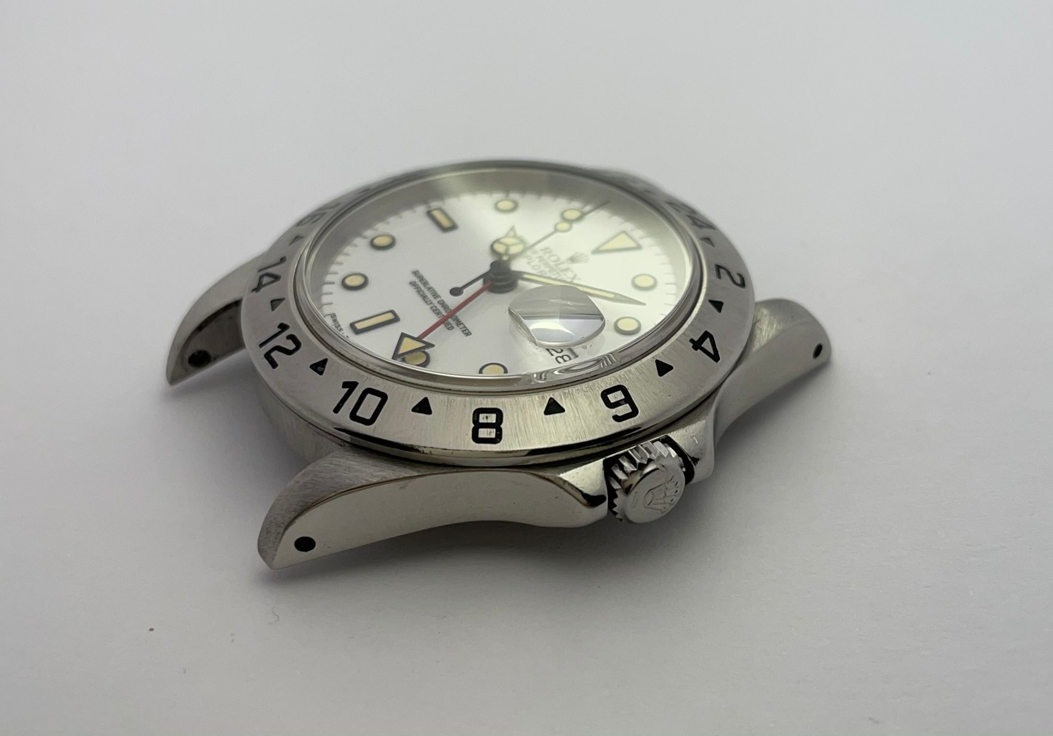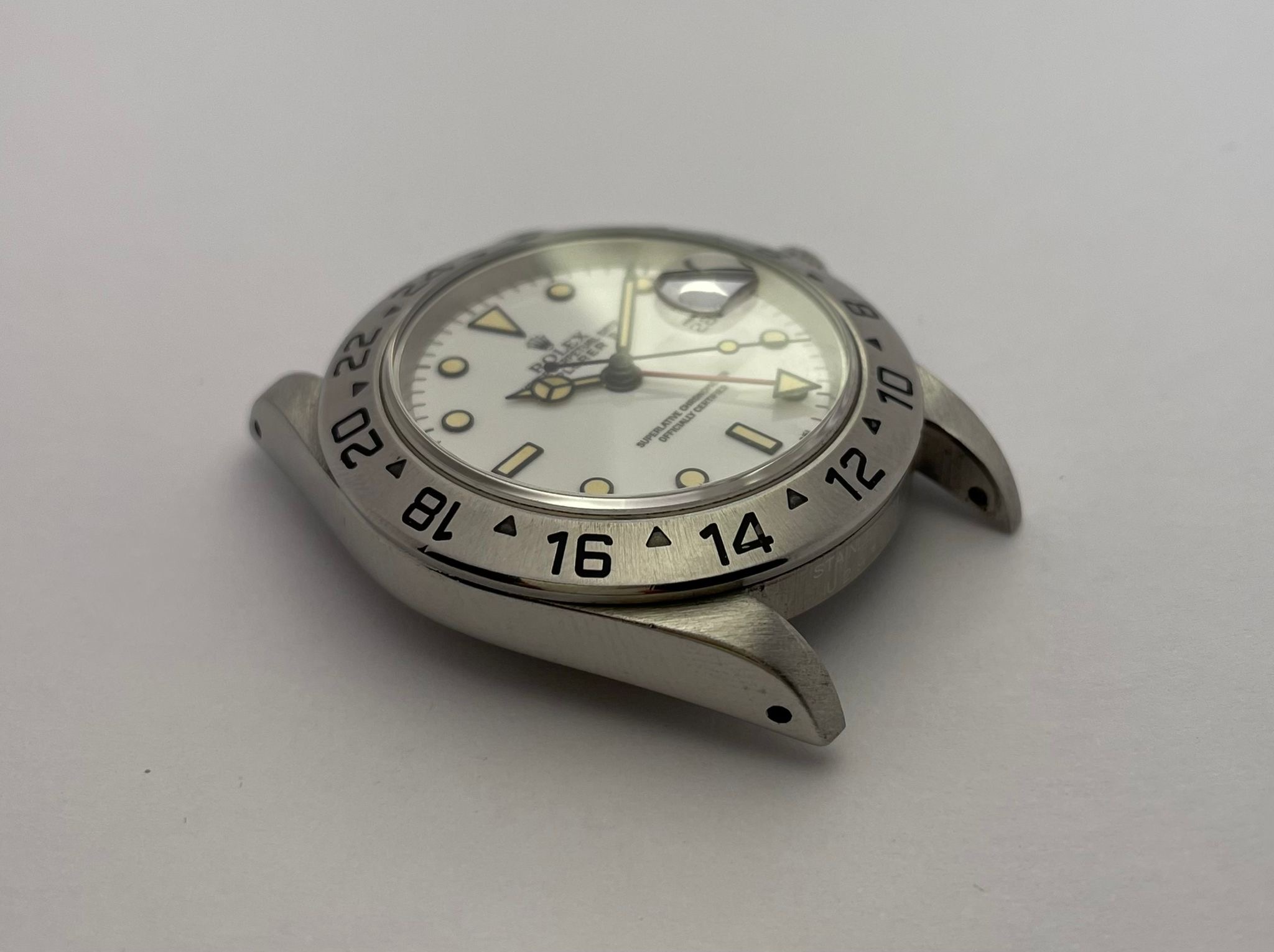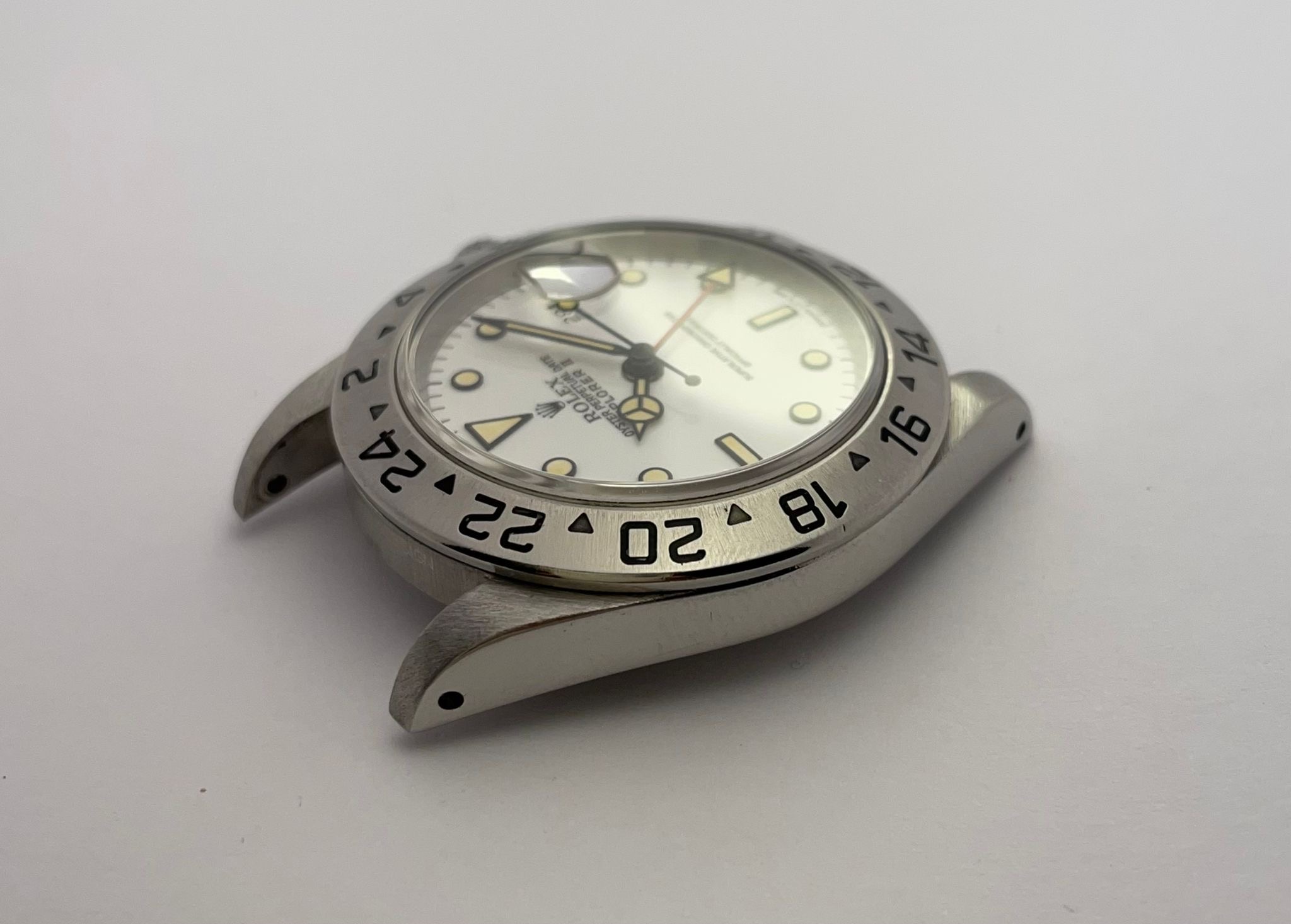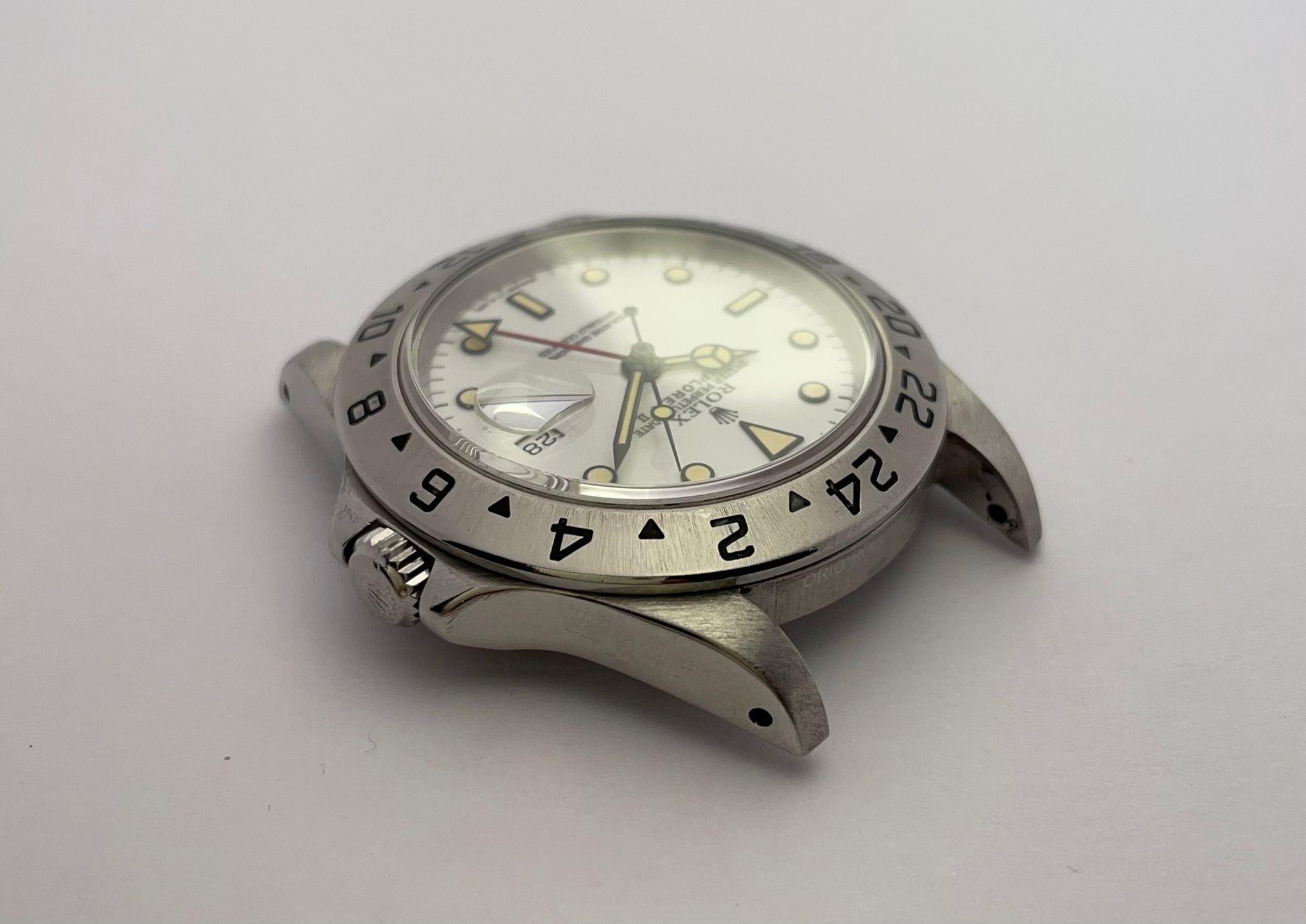 The dial is an original Rolex 16570 tritium Polar dial, with an amazing patina even on all plots and all lettering is clearly visible and correct.