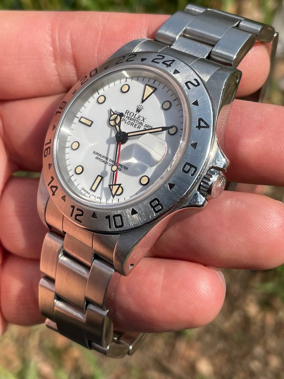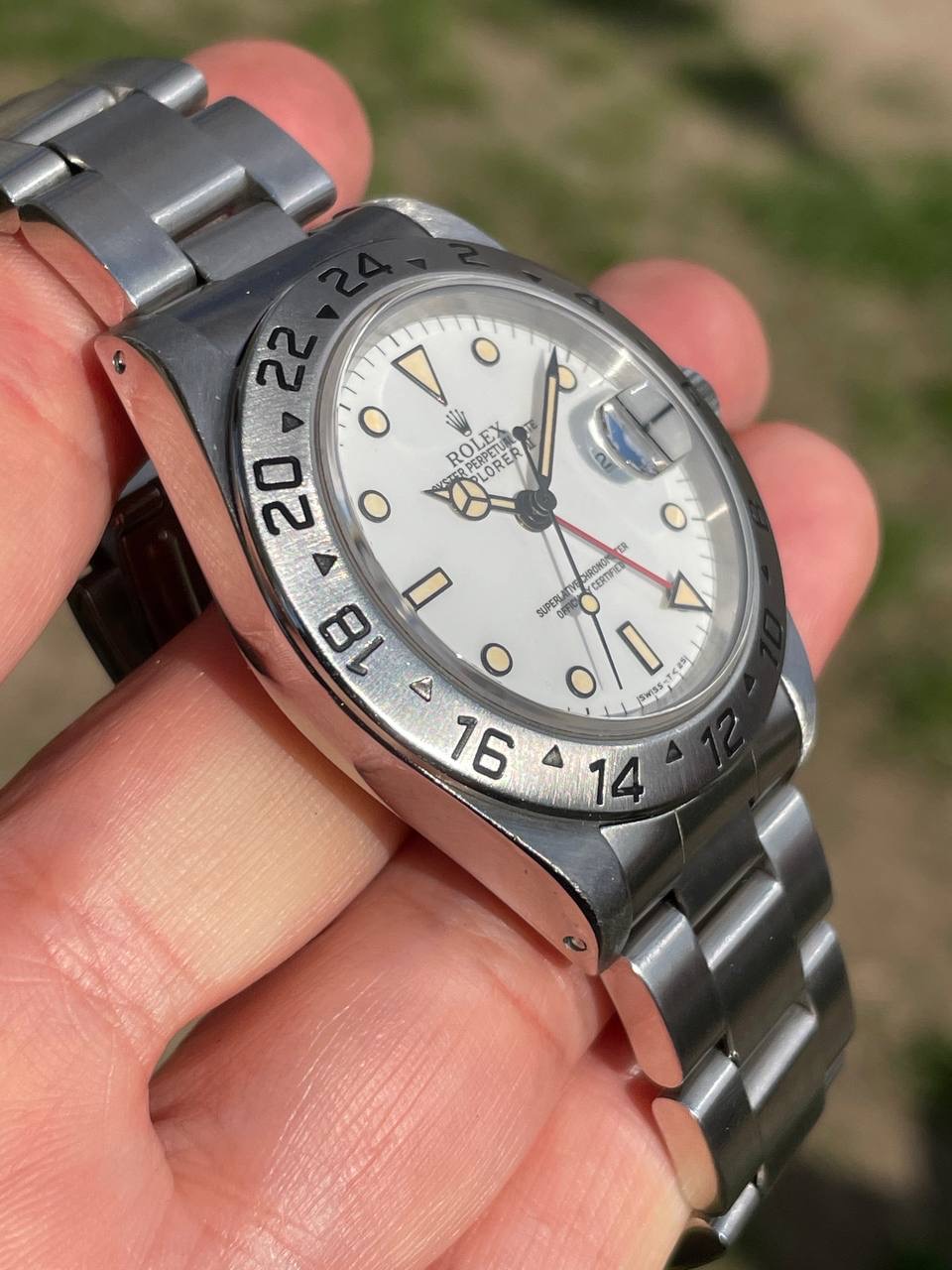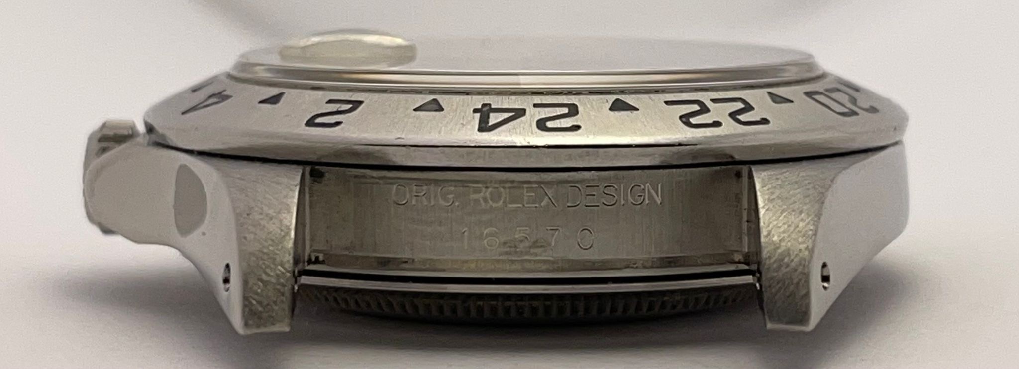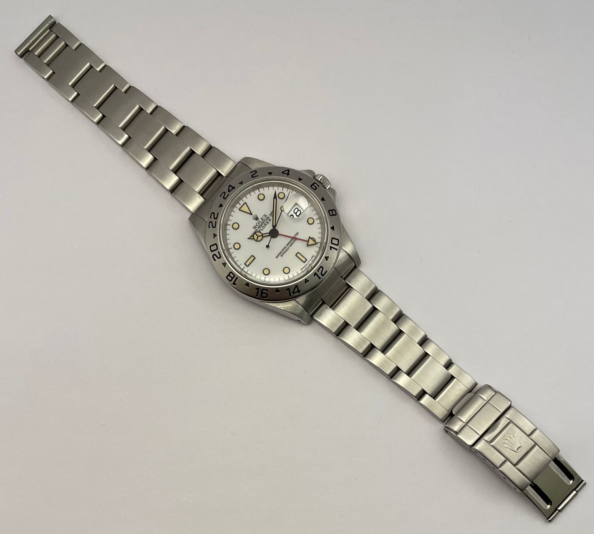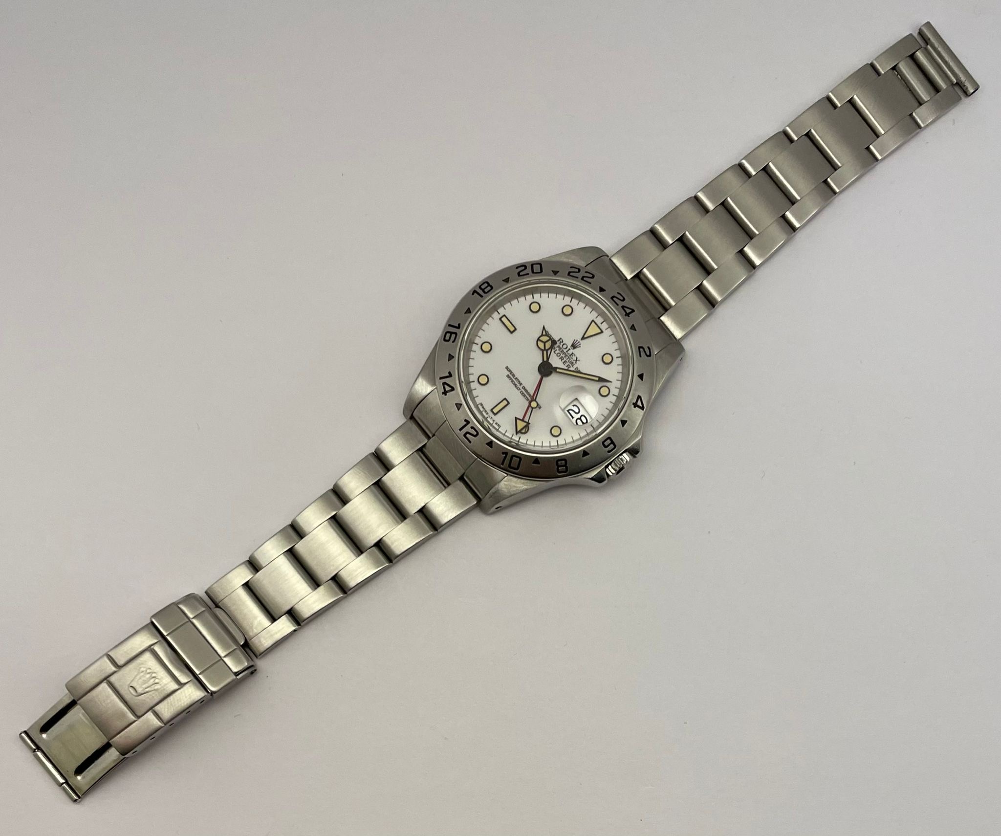The dial is an original Rolex 16570 tritium Polar dial, with an amazing patina even on all plots and all lettering is clearly visible and correct.