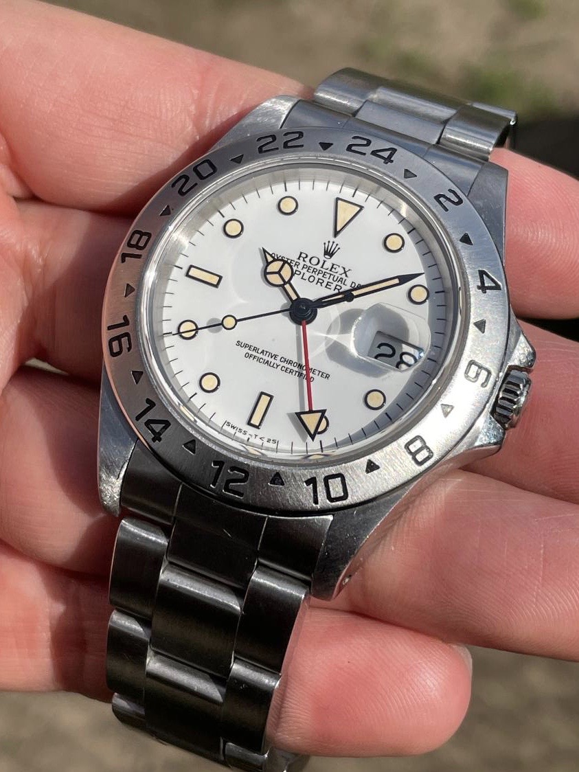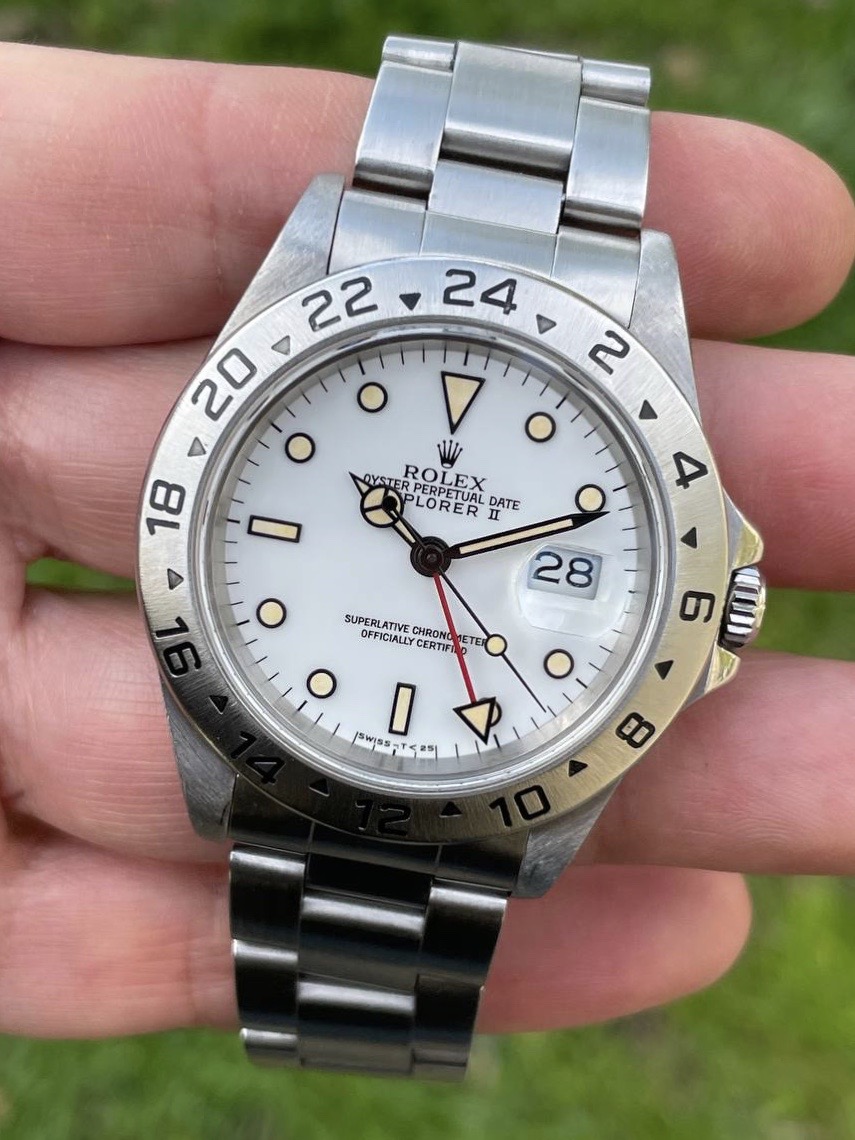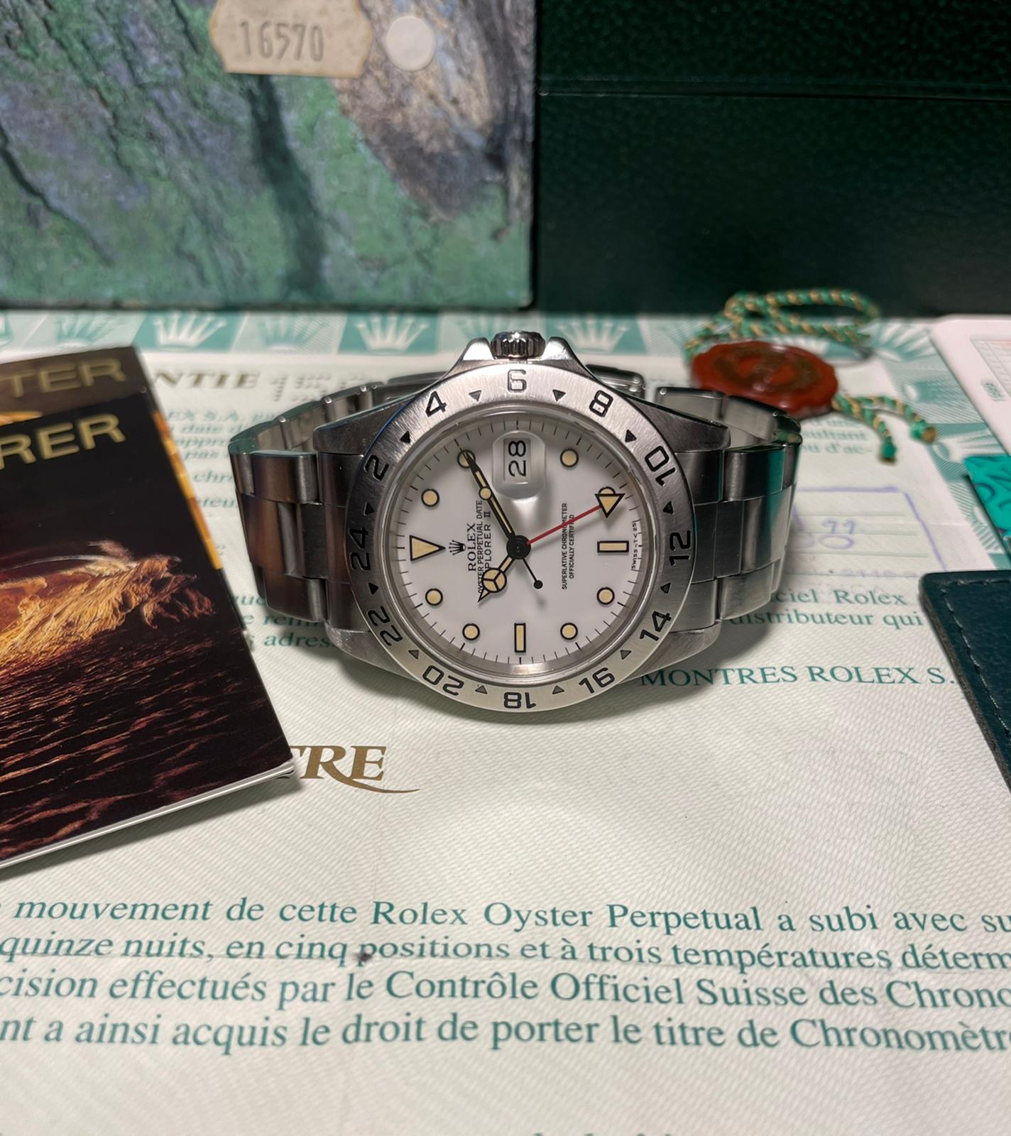 I have for sale a full set Rolex Explorer II ref.16570 "corn grain" in great conditions, with a perfect case and an incredible dial with maize patina hour markers.