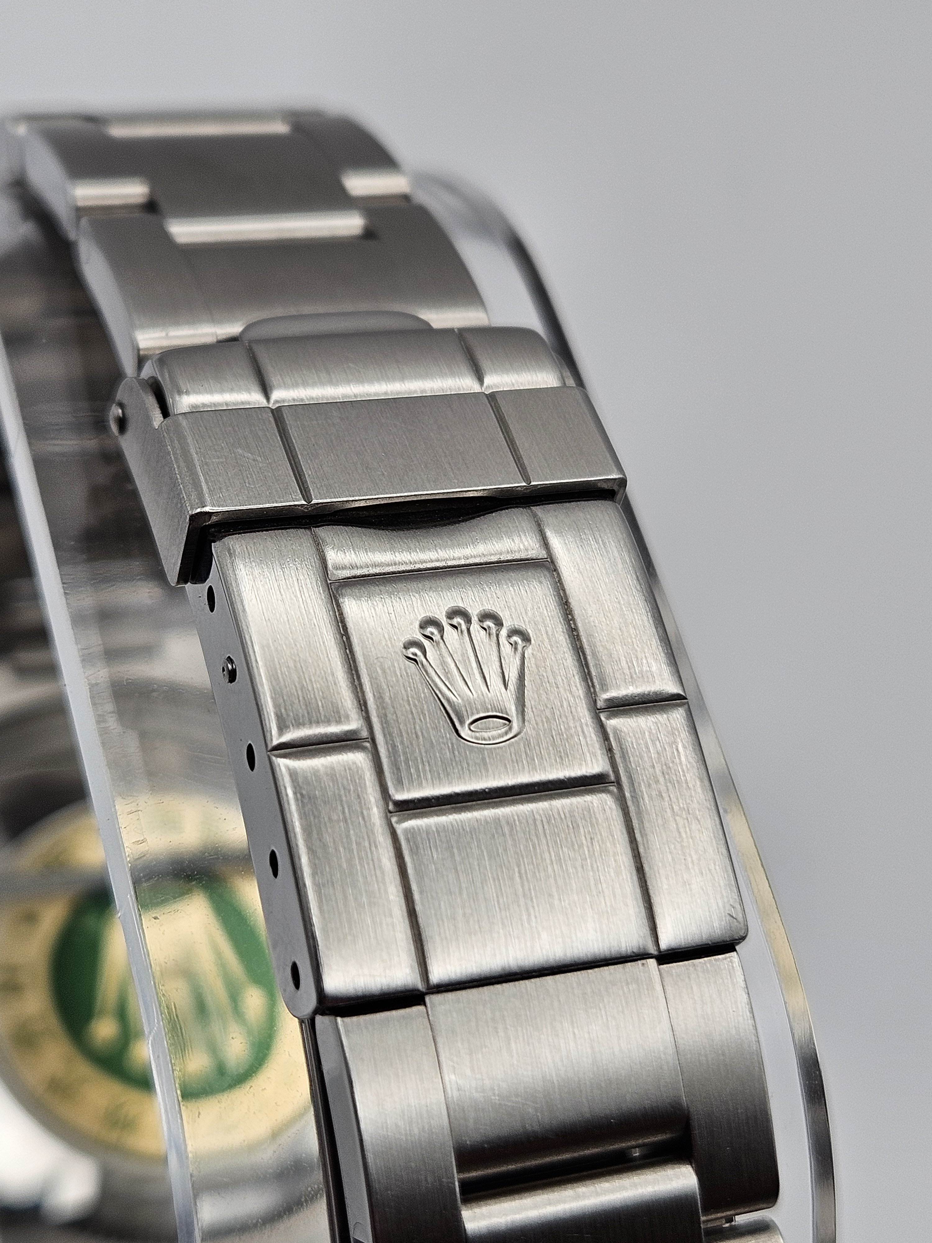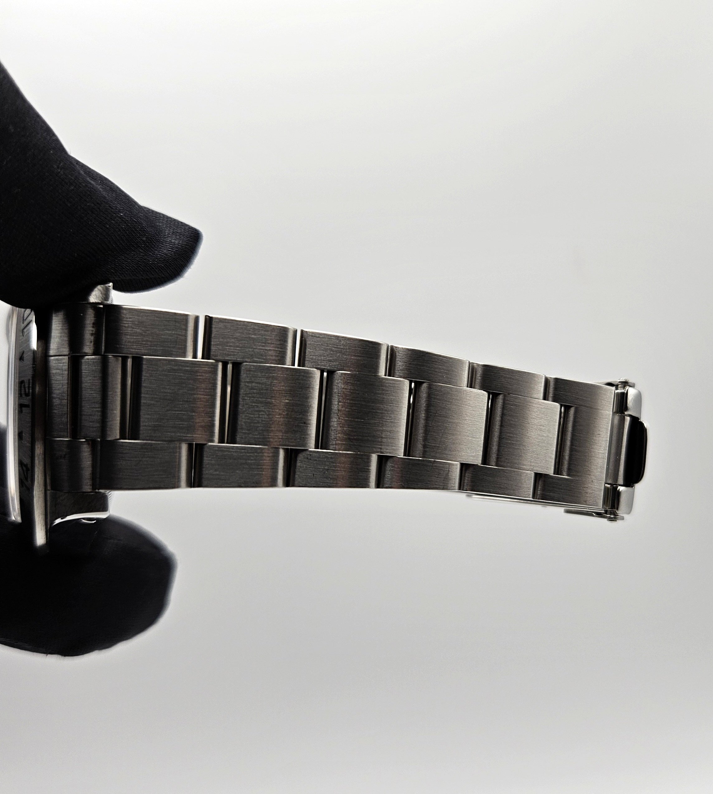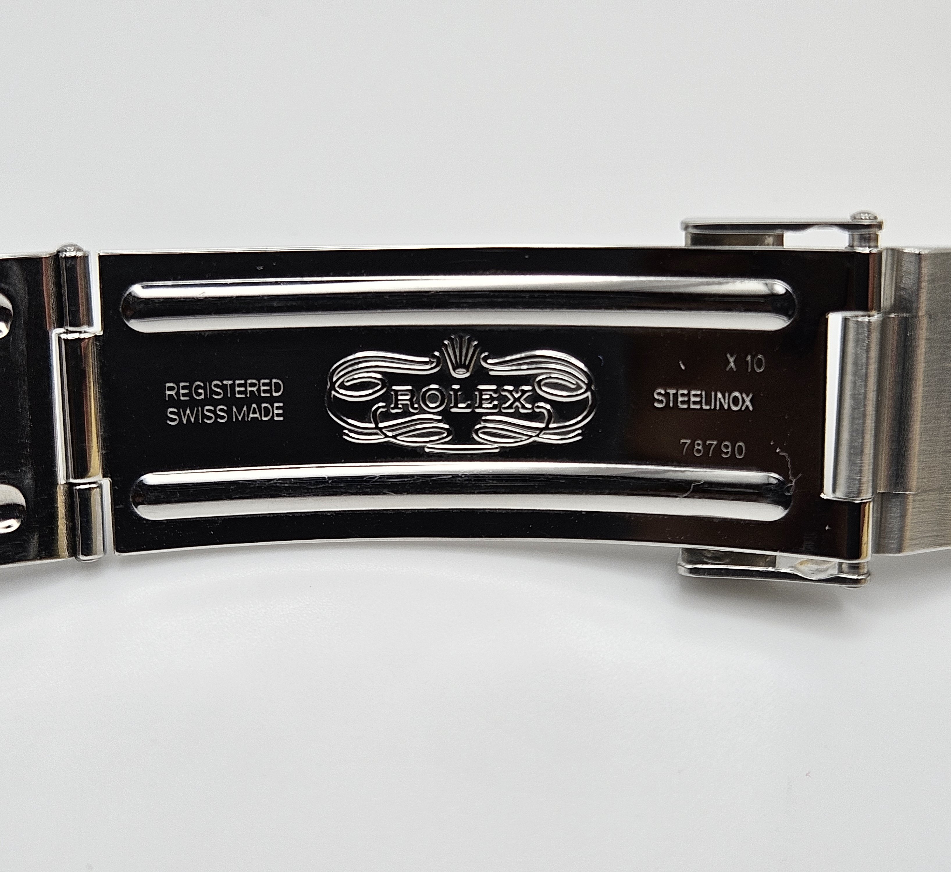 Bracelet: Solid endlink bracelet with an X10 coded clasp, is correct for an A-serial watch and measures 7.5 inches on the inner circumference. Additional links can be sourced for larger wrist sizes.