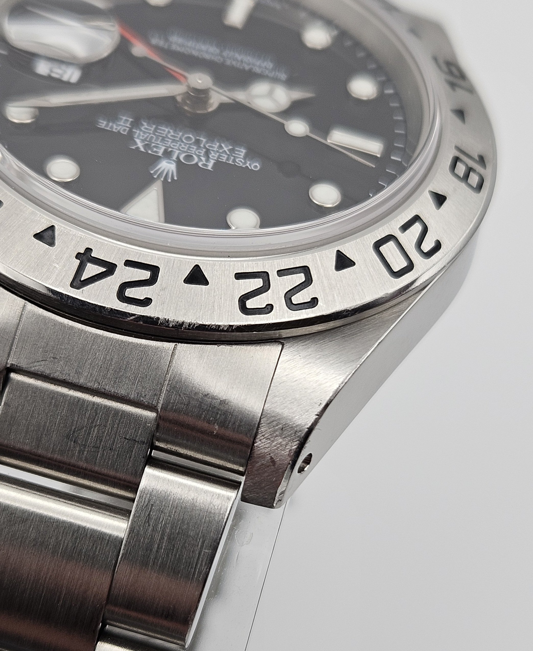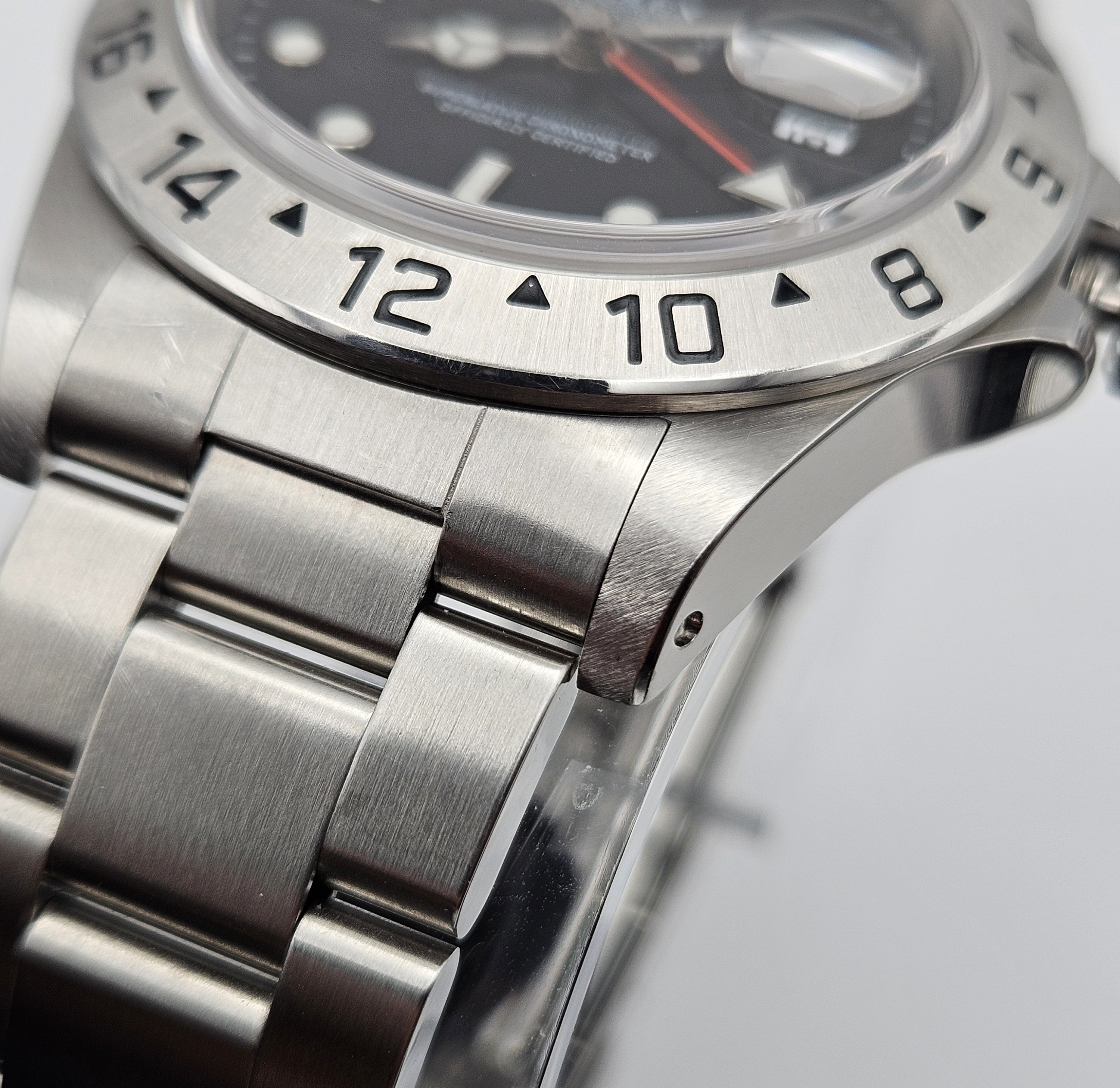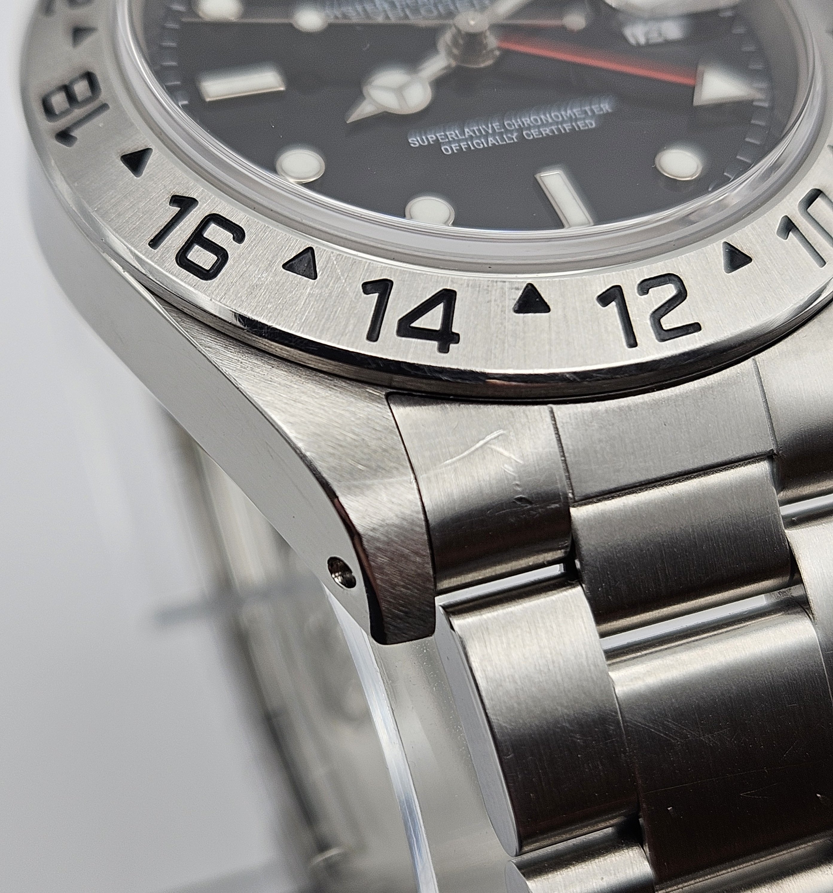 Aesthetic Condition: The bezel and lugs are in exceptional condition with quite a bit of the factory brushed finish still visible. The crystal is free of any blemishes. There is a small scratch on the lower endlink that extends to the lower left lug. Small swirl marks on the mirror polished sides of the case and some visible signs of wear on a couple of the bracelet links. .