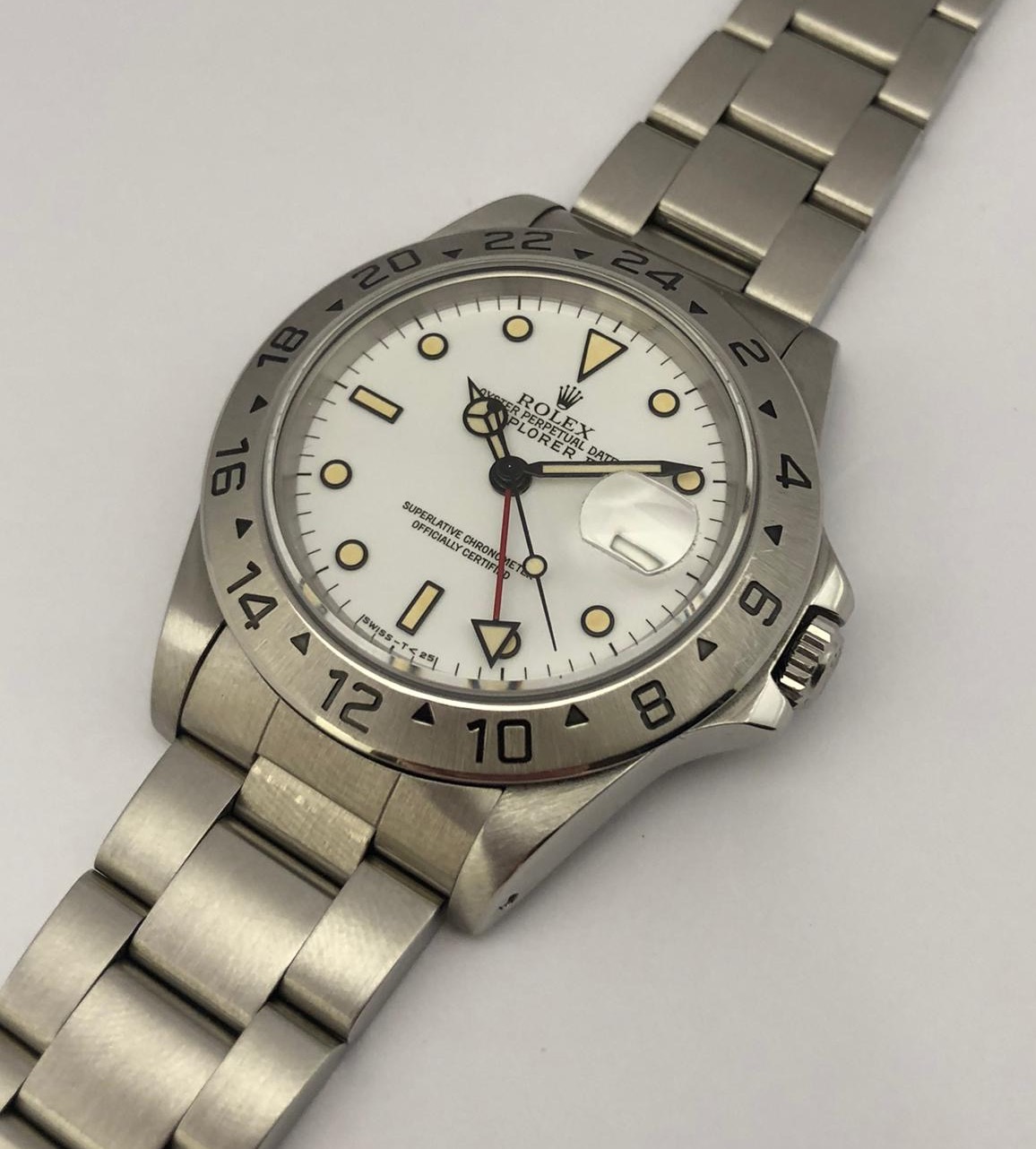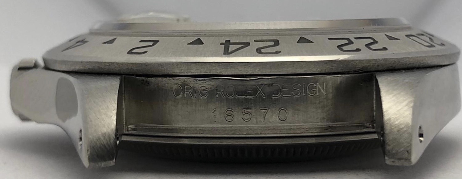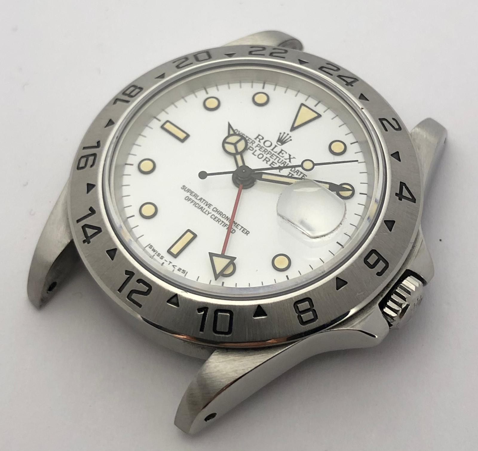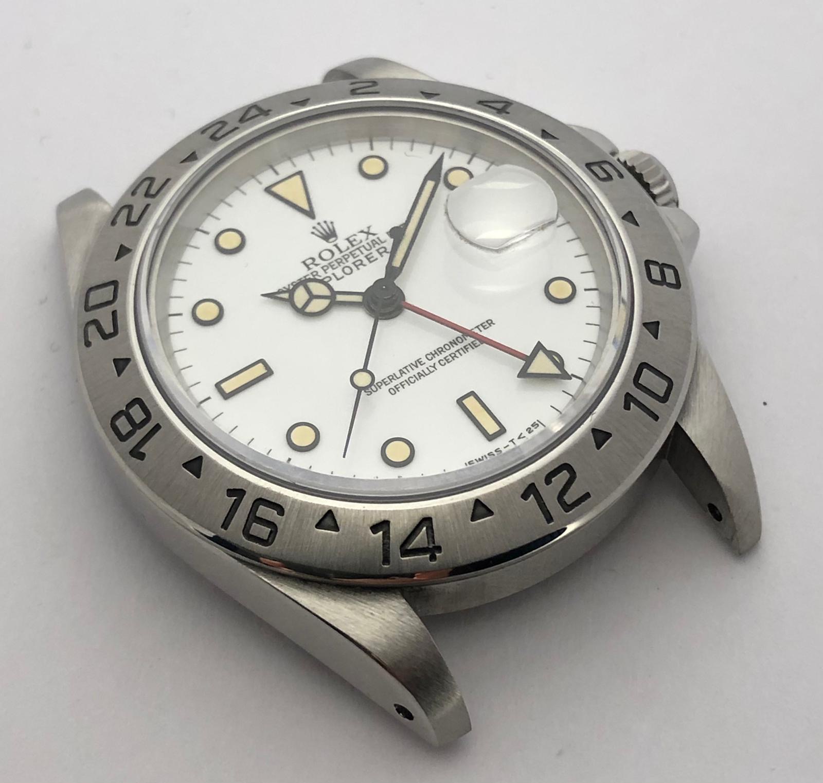 The dial is an original Rolex 16570 tritium Polar dial, with an amazing patina even on all plots and all lettering is clearly visible and correct.