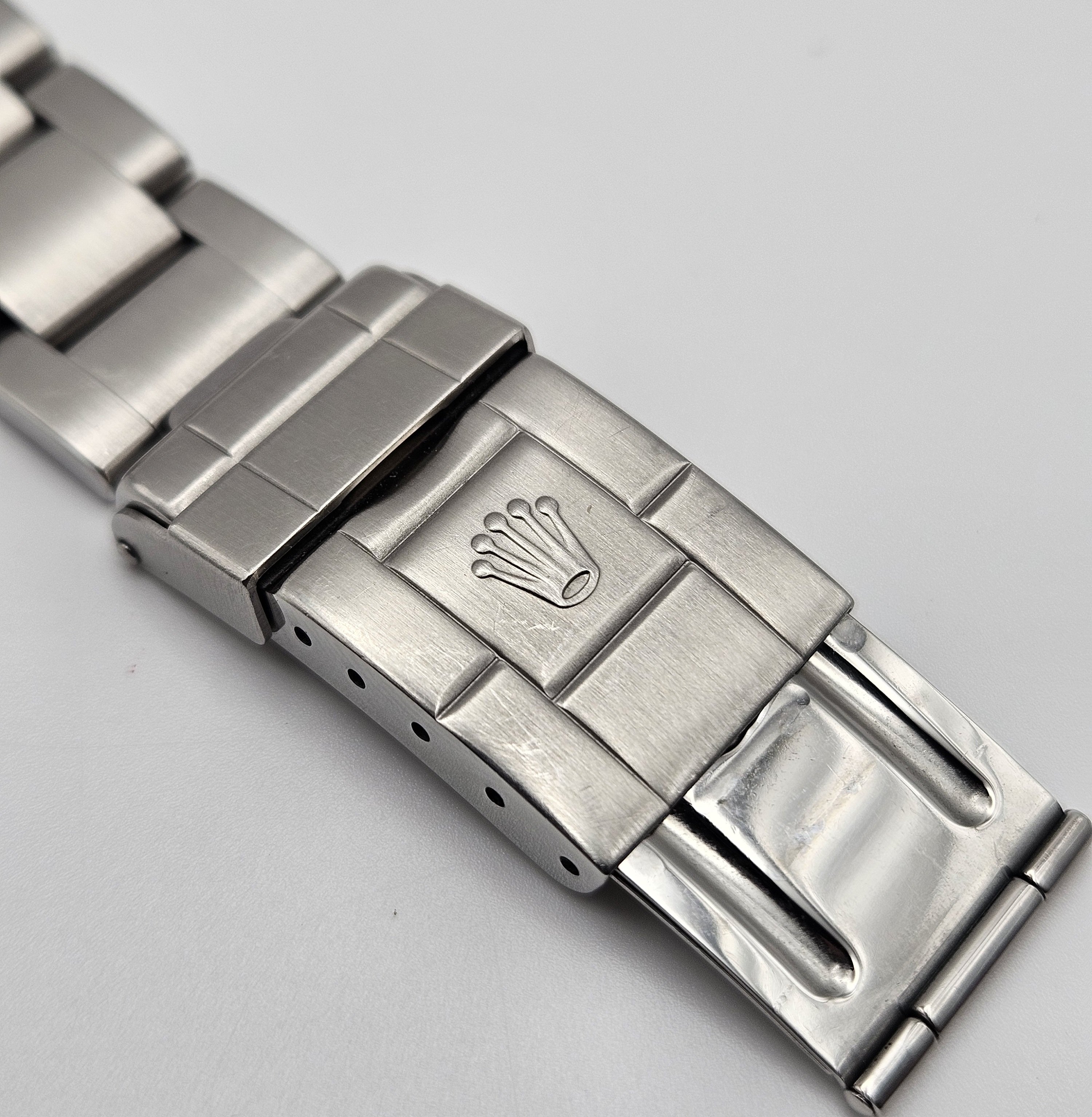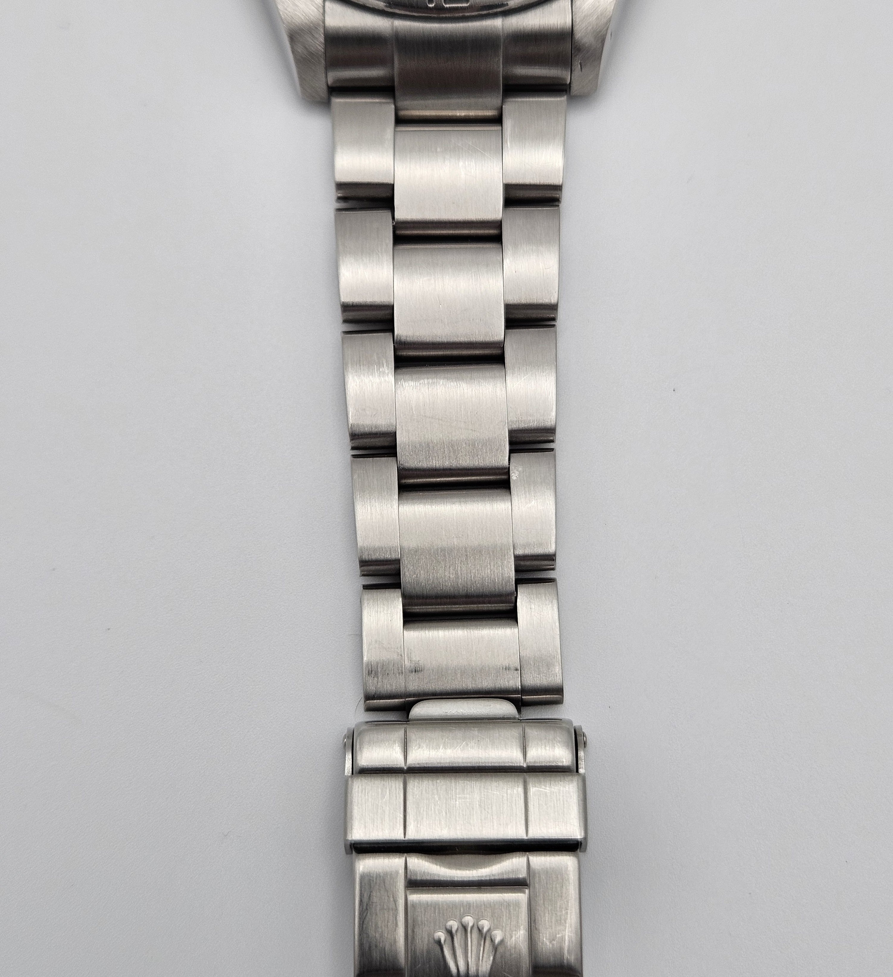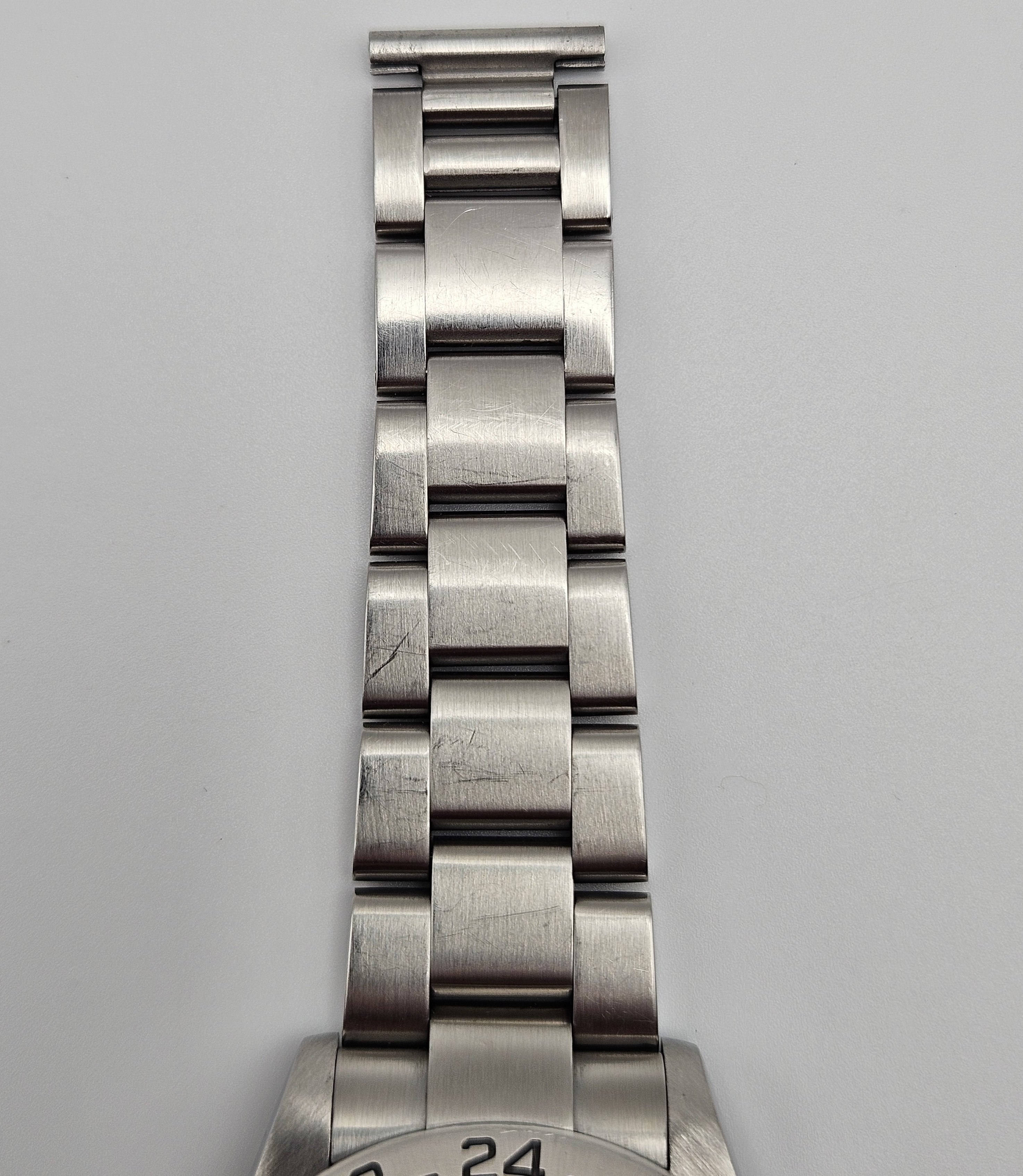 Aesthetic Condition: The crystal is clean and free of any blemishes. Light wear on the brushed surfaces on the lugs and bezel. Two small blemishes on the lower right lug, see pics under heavy magnification and compare them to the video. The sides of the case have some hairline scratches.