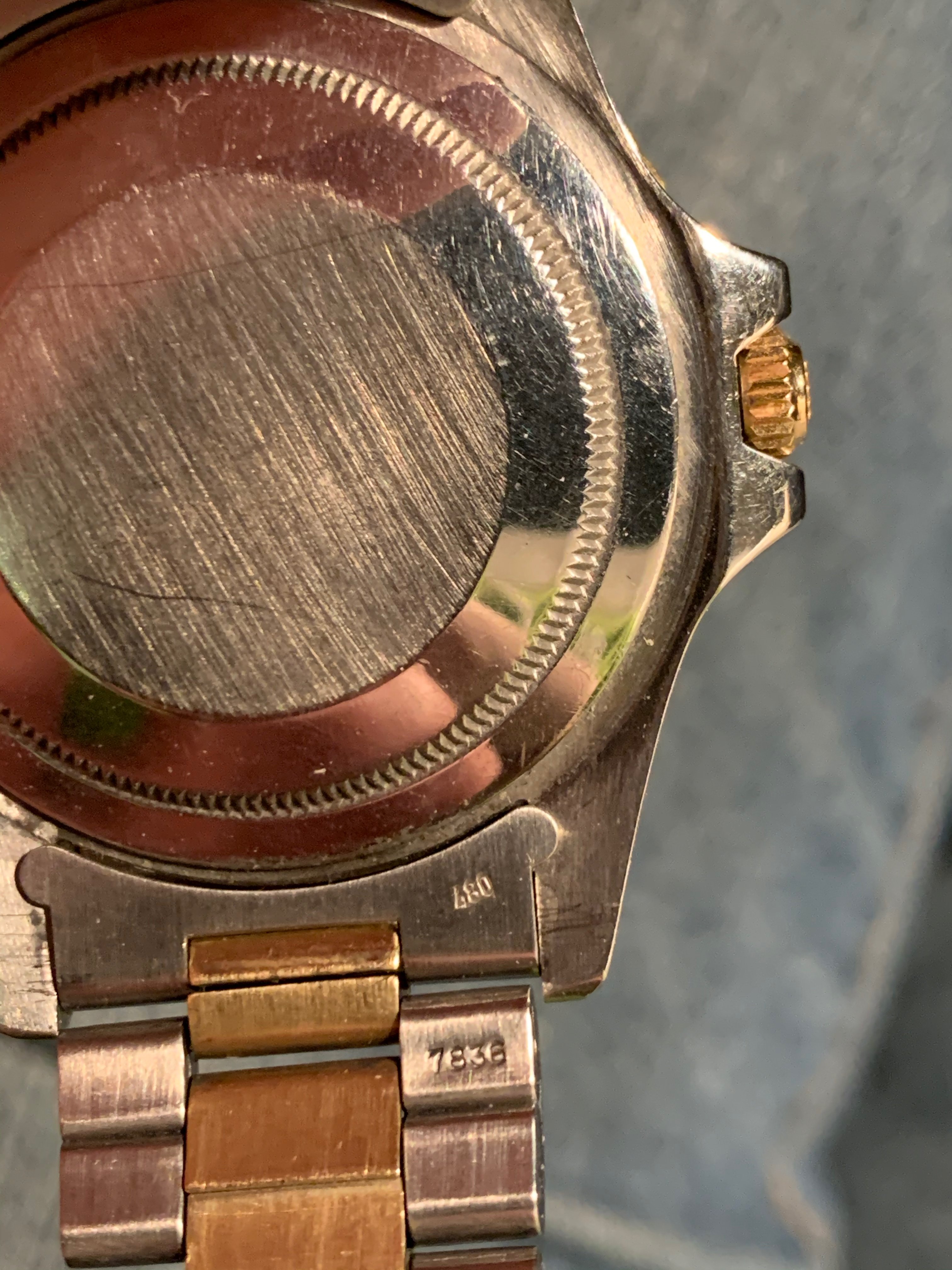 Amazing patina on the dial, blue jeans faded insert, fat case.