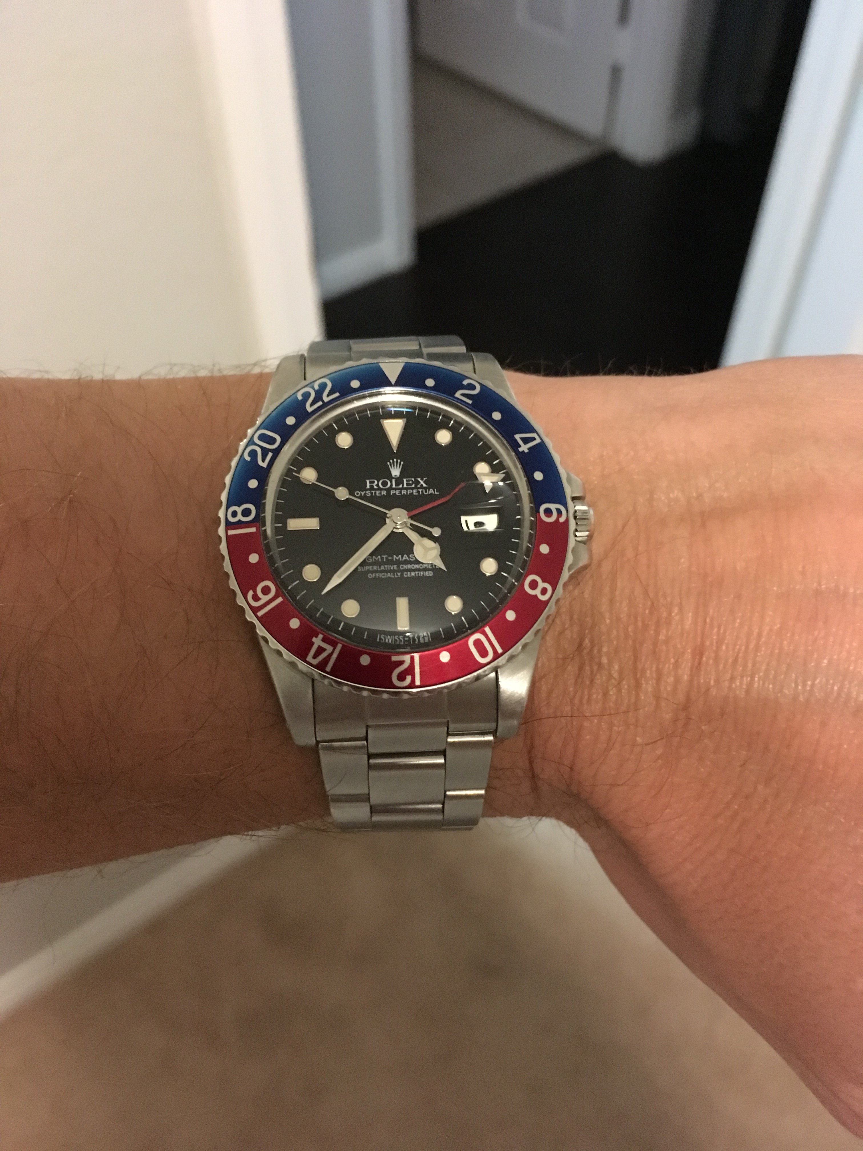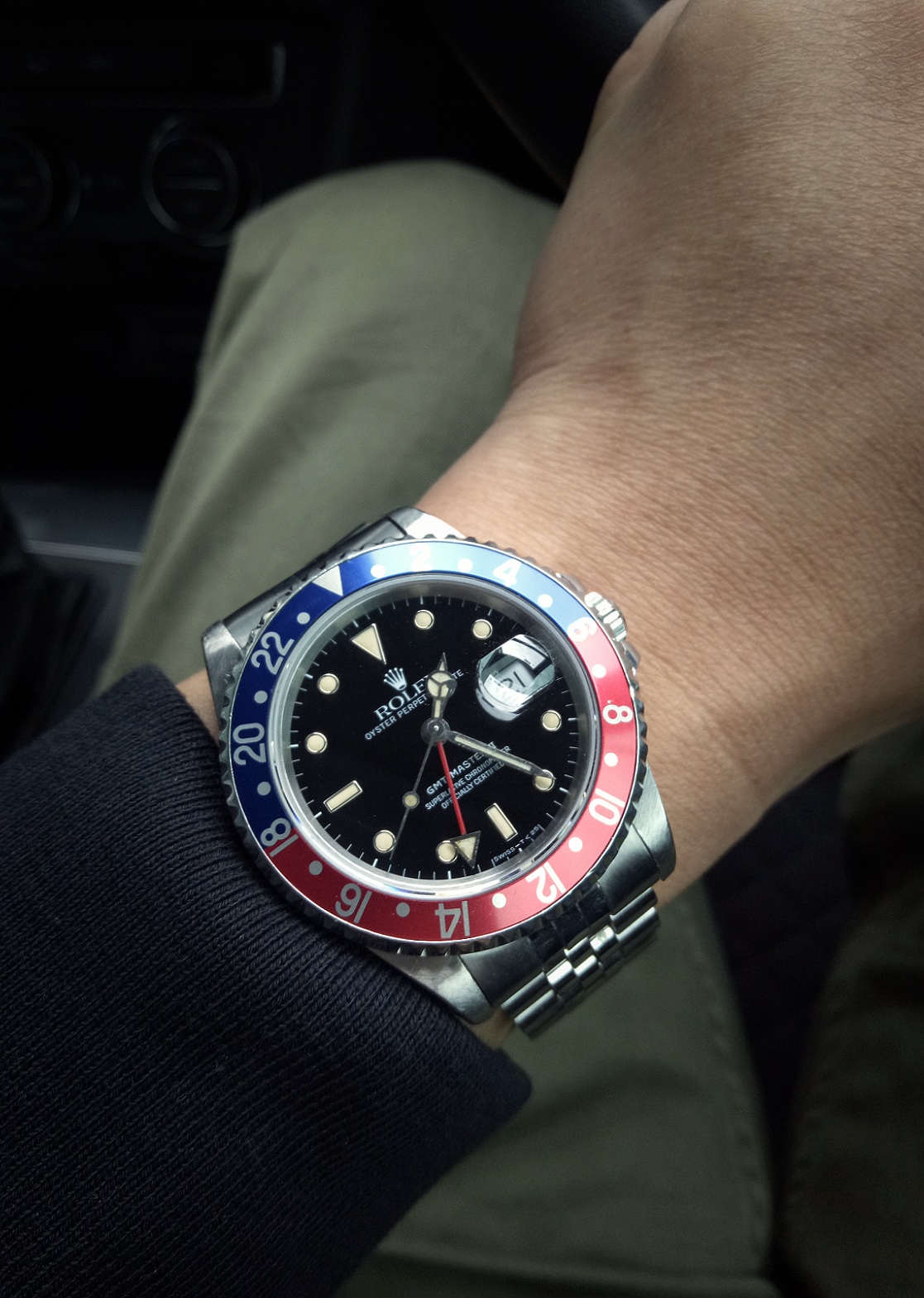 The GMT-Master is my favourite model. I've owned a 1675 and a matte 16750 in the past. Had the itch for one until the wall of eye popping prices brought me down. Lucky for me, I found a more than respectable E serial 16710 here from a true gentleman. Glad to have been able to hold on to it. Been wearing it on a super comfortable leather NATO.