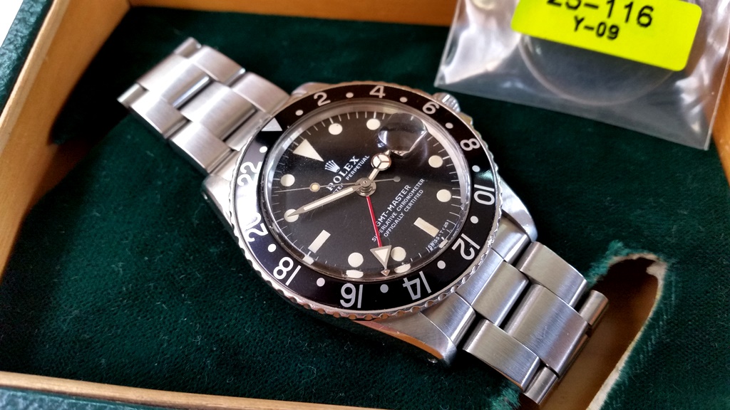 This is what a matte dial 16750 should look like, this one is NOS. Note the corrosion on hands which happened a lot during this period, many of these watches had their hands replaced at service. The chamfers are thinner than those of the earlier 1675's. The facet line on the crown guards is evident on this reference, its worth mentioning that this line was not always in the exact same place and can be more or less prominent.