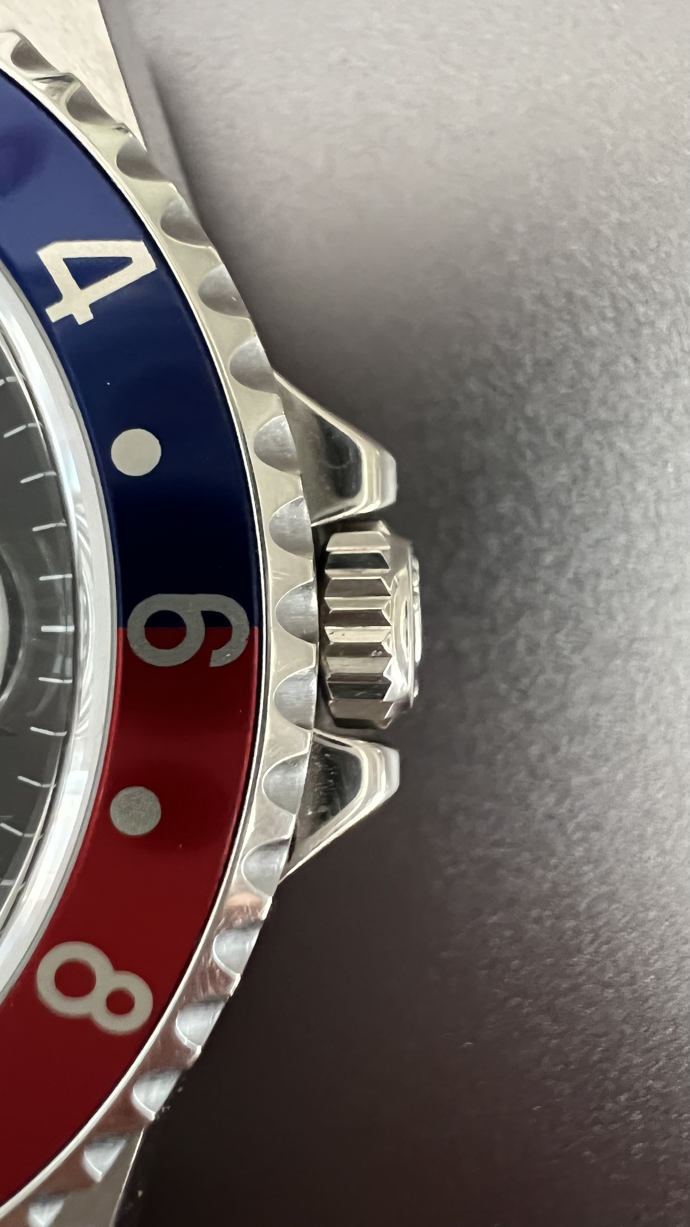 Bezel: Bi-directional rotating bezel with the blue&red bezel insert in mint condition.