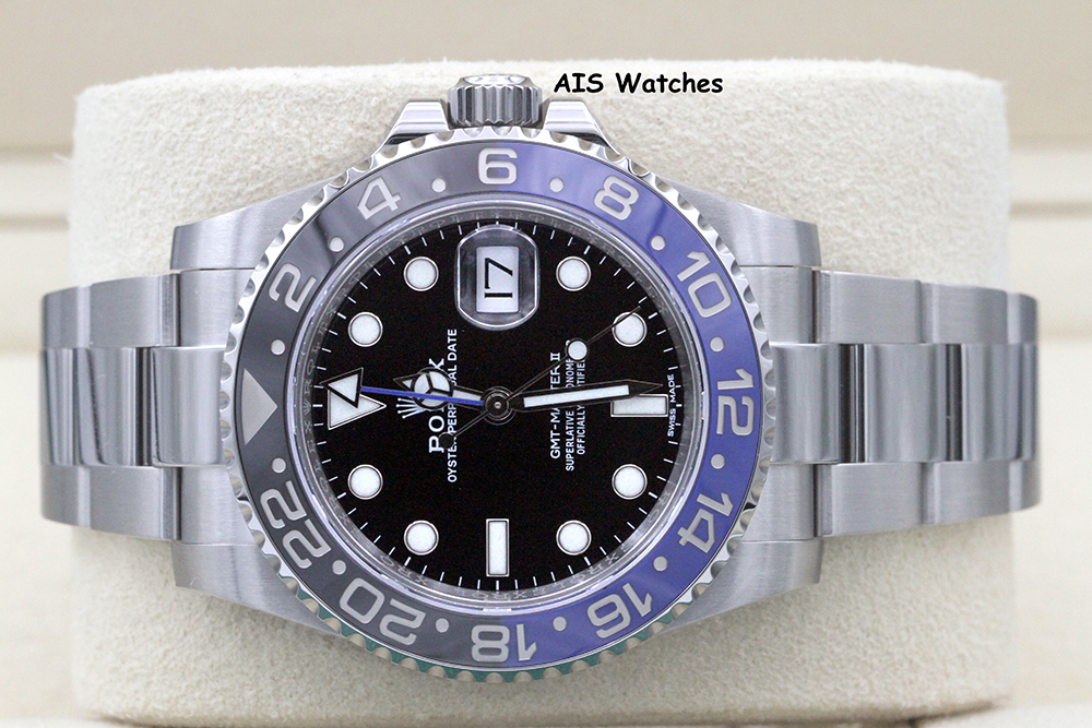 Up for sale is a Discontinued Rolex GMT Master II 116710BLNR Black Blue Batman Ceramic Bezel Box & Papers. The timepiece is in excellent condition.