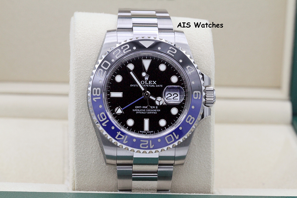 Up for sale is a Discontinued Rolex GMT Master II 116710BLNR Black Blue Batman Ceramic Bezel Box & Papers. The timepiece is in excellent condition.