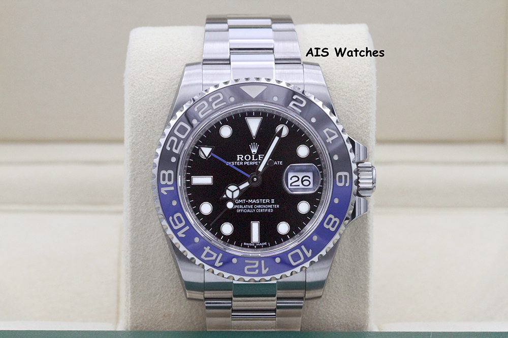 Up for sale is a Discontinued Rolex GMT Master II 116710BLNR Black Blue Batman Ceramic Bezel Box & Papers. The timepiece is in excellent condition.