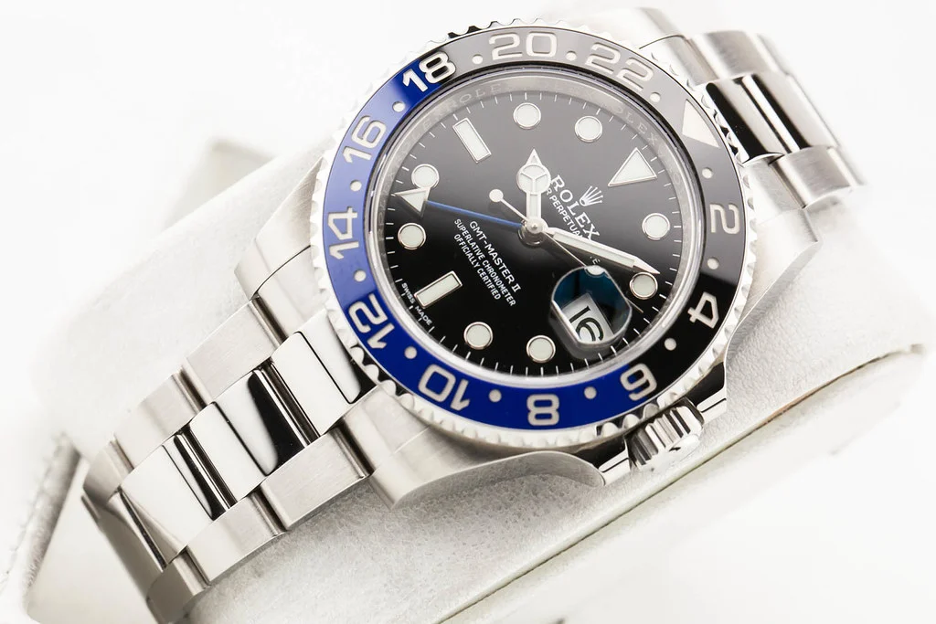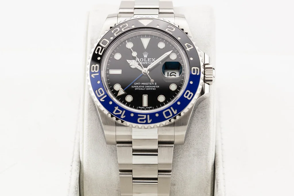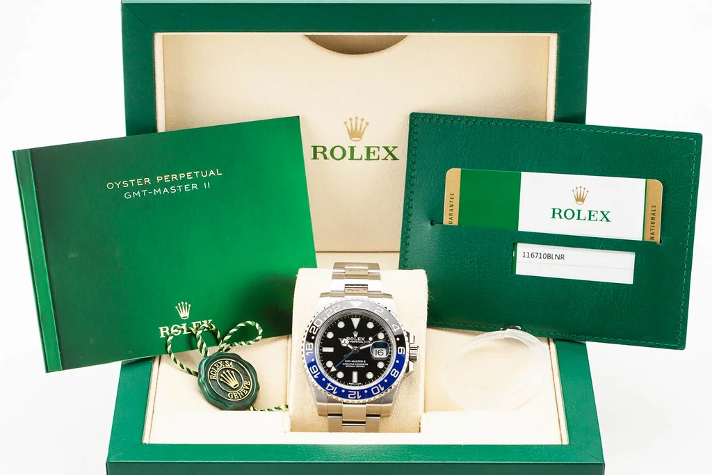 ·Up for sale is an excellent condition Rolex GMT Master II Batman on Oyster Bracelet, reference # 116710BLNR. It comes with all boxes, papers, booklets, hang tag, and Rolex Warranty Card dated November 2018.