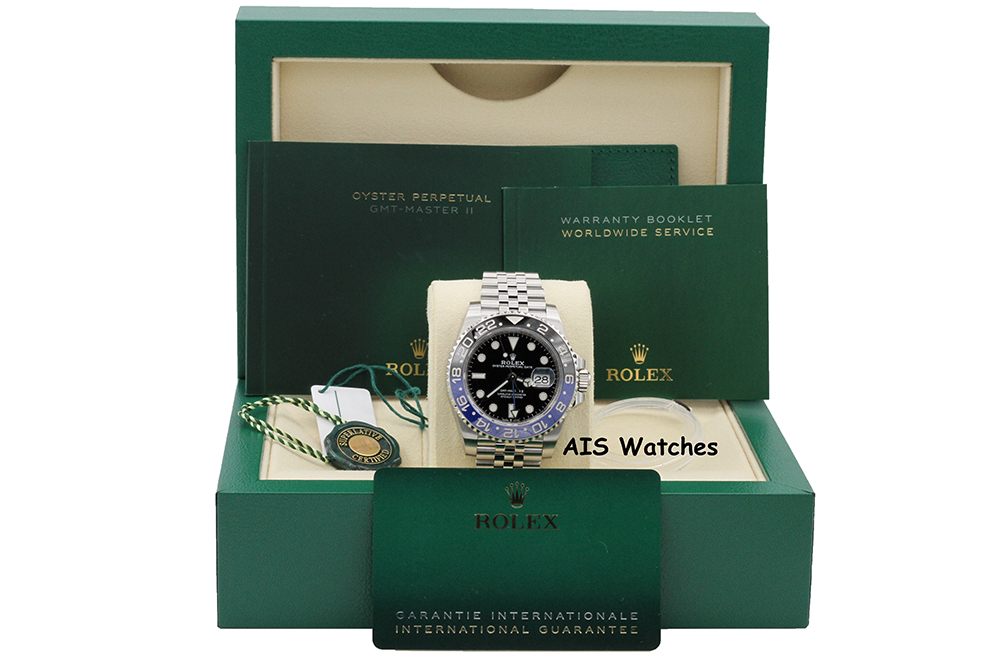 Up for sale is a Rolex GMT Master II 126710BLNR Black & Blue Batgirl / Batman Jubilee Bracelet Ceramic Bezel Box & Papers. The timepiece is excellent condition.