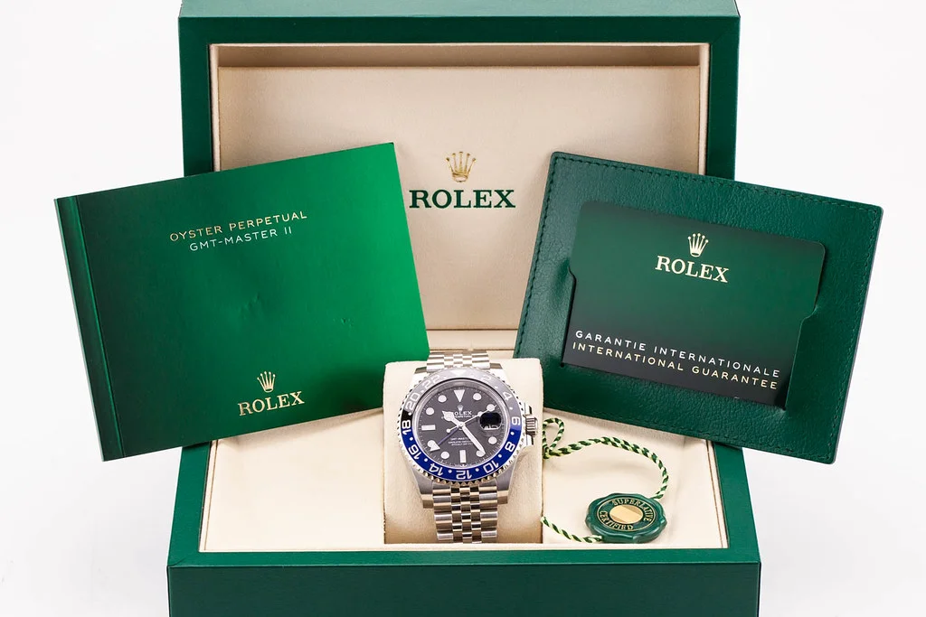 ·Up for sale is a brand new Rolex GMT Master II Batgirl Jubilee, reference # 126710BLNR. It comes complete with all newly redesigned boxes, papers, booklets, hang tag, and Rolex Warranty Card dated May 2025.