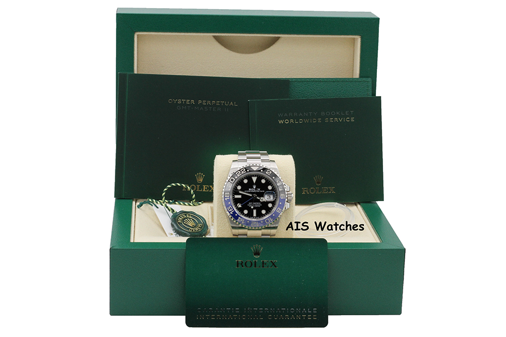 Up for sale is a Rolex GMT Master II 126710BLNR Black & Blue Batman Oyster Bracelet Ceramic Bezel Box & Papers. The timepiece is excellent condition.