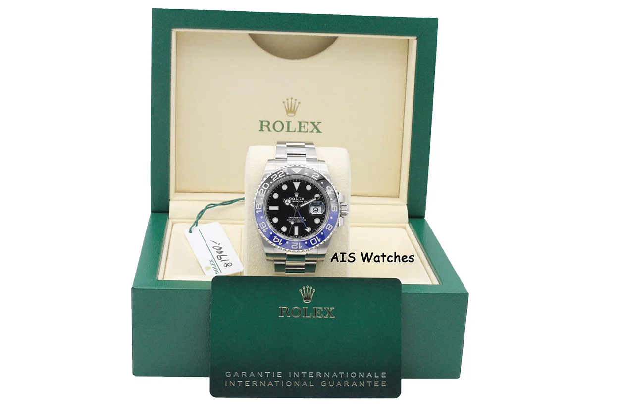 Up for sale is a Rolex GMT Master II 126710BLNR Black & Blue Batman Oyster Bracelet Ceramic Bezel Box & Papers. The timepiece is in excellent condition.