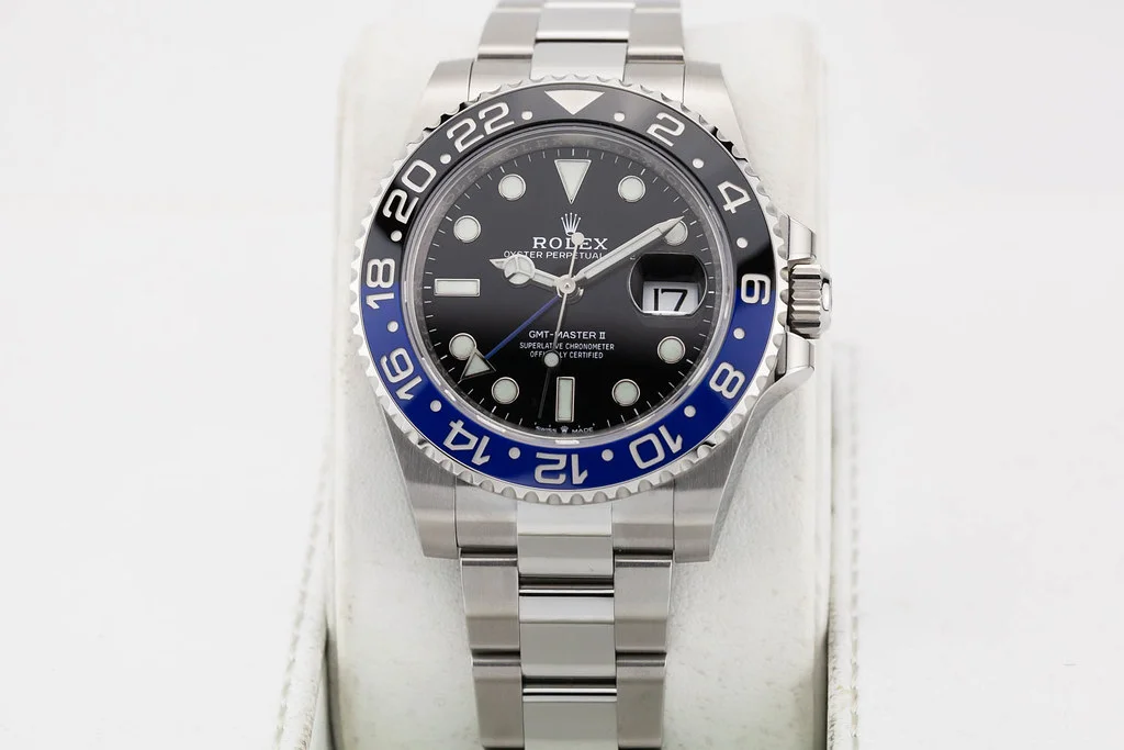·Up for sale is a brand new Rolex GMT Master II Batman on Oyster Bracelet, reference # 126710BLNR. It comes with all newly redesigned boxes, papers, booklets, hang tag, and Rolex Warranty Card dated April 2025.