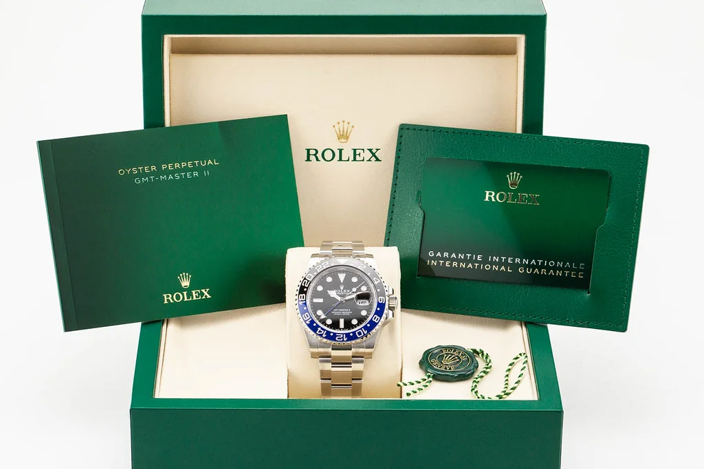 ·Up for sale is a brand new Rolex GMT Master II Batman on Oyster Bracelet, reference # 126710BLNR. It comes with all newly redesigned boxes, papers, booklets, hang tag, and Rolex Warranty Card dated April 2025.