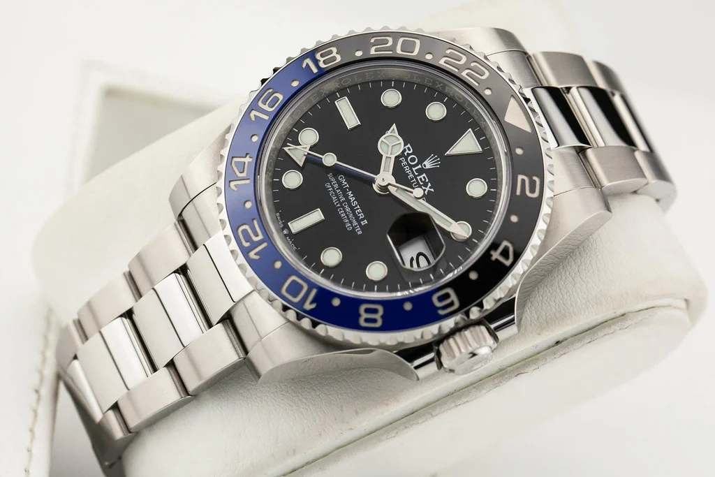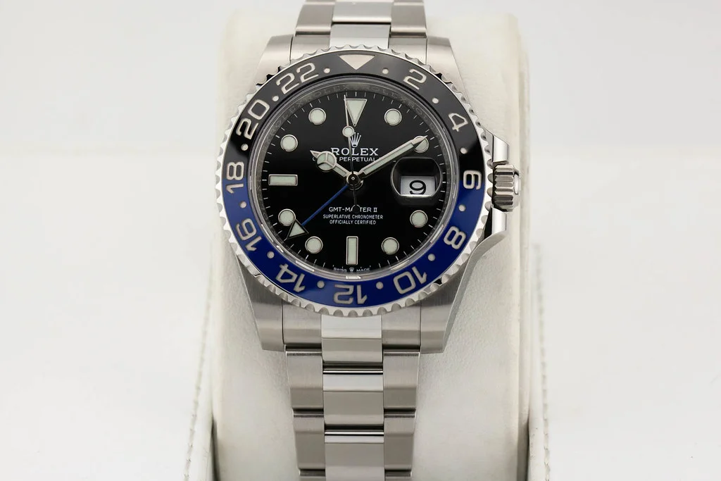 ·Up for sale is a brand new Rolex GMT Master II Batman on Oyster Bracelet, reference # 126710BLNR. It comes complete with all newly redesigned boxes, papers, booklets, hang tag, and Rolex Warranty Card dated March 2025.