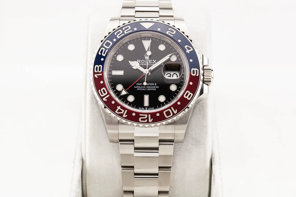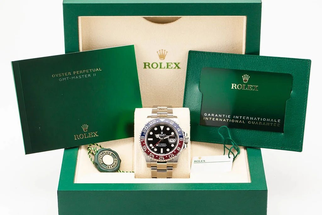 ·Up for sale is an excellent condition Rolex GMT Master II 126710BLRO 40mm Black Dial Pepsi. It comes complete with all boxes, papers, booklets, hang tags, and Rolex Warranty Card dated December 2023.