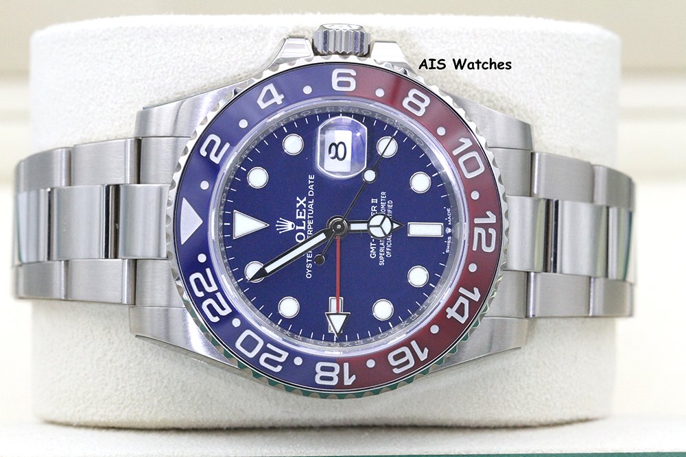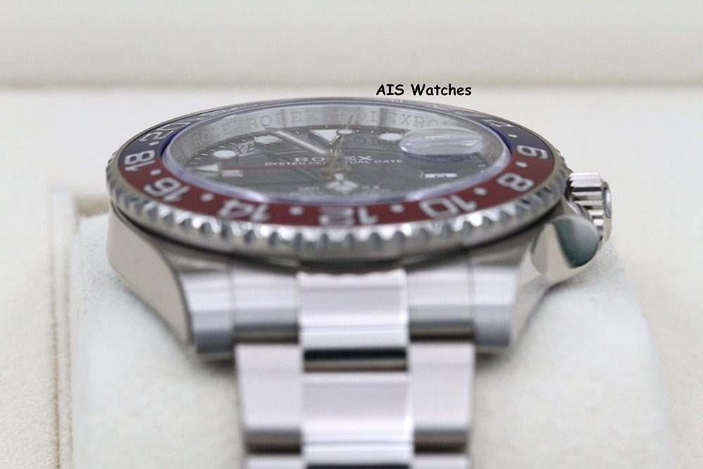 Up for sale is Rolex GMT-Master II 126719 BLRO 18K White Gold Pepsi Ceramic Blue Dial with Box & Papers. The timepiece is in excellent condition with protective stickers.