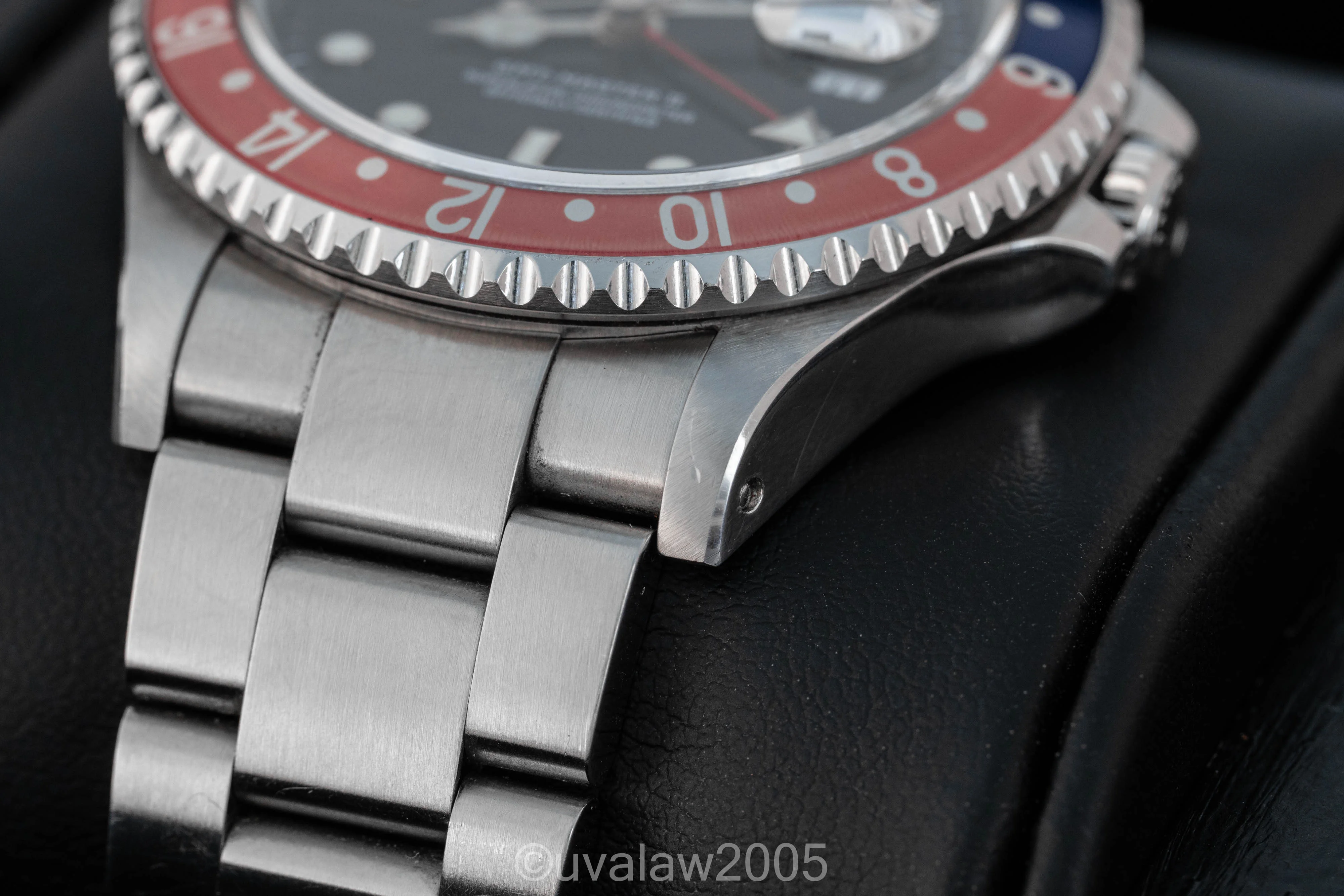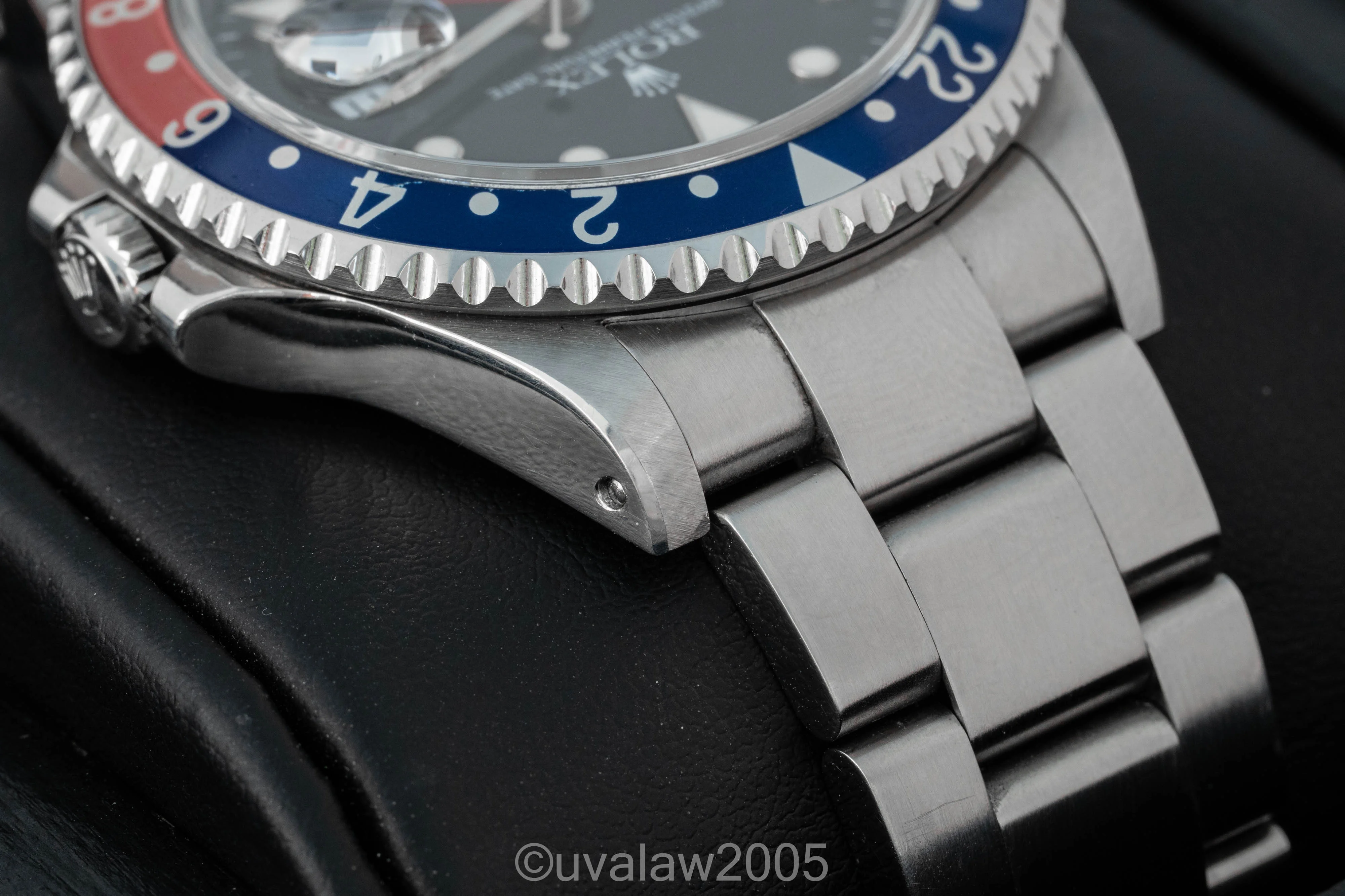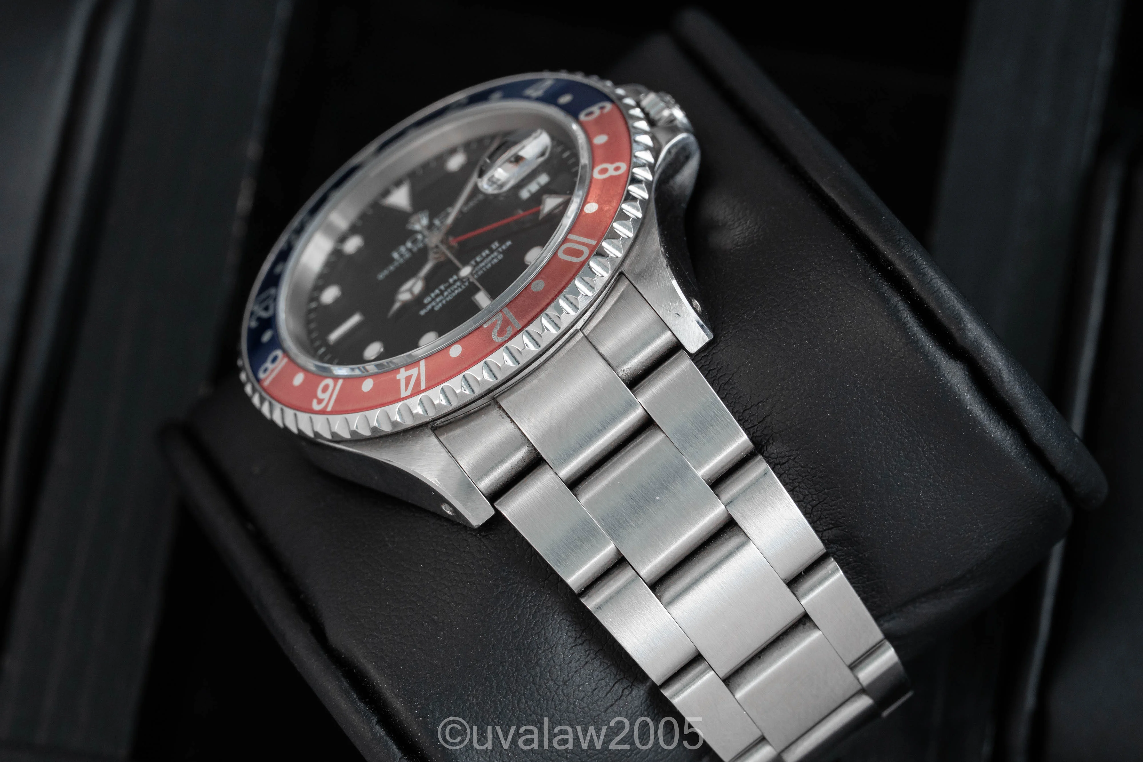 ·For sale is my Rolex GMT-Master II reference 16710 with holes case, solid endlinks, and three OEM bezel inserts. I bought it earlier this year with a black bezel from Angel City Time (original sales post here), and then purchased vintage OEM Pepsi and Coke inserts from jfullm42time.