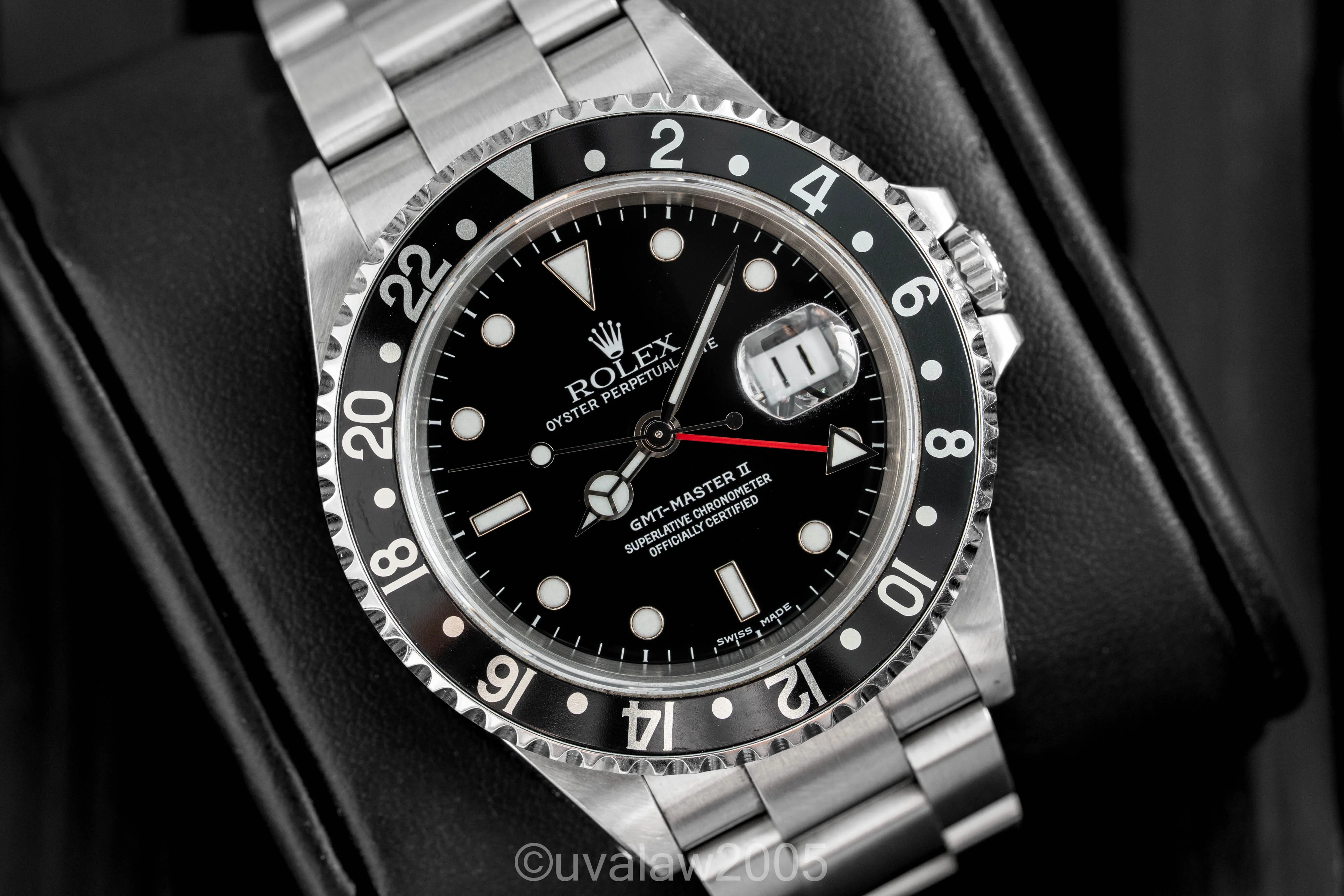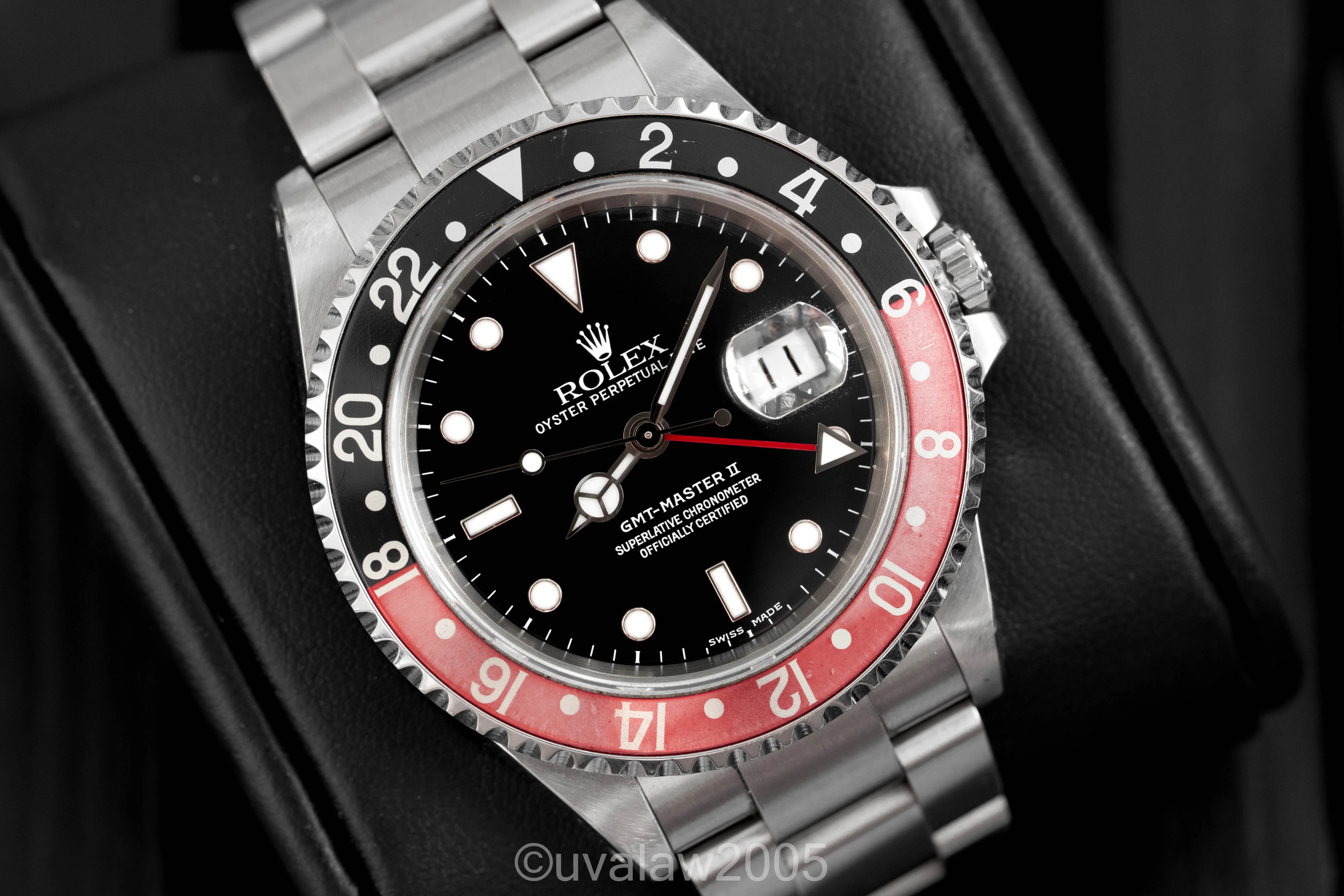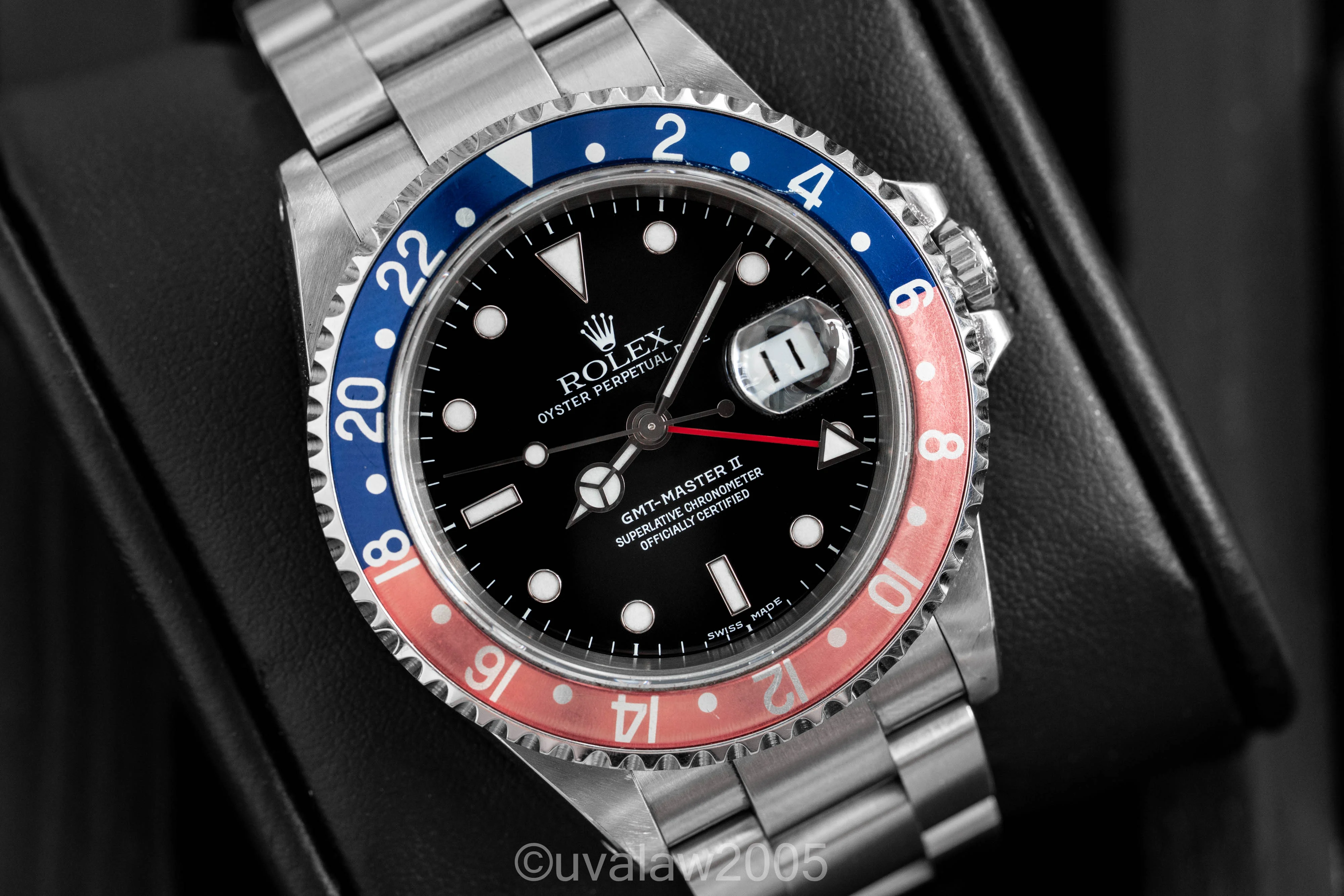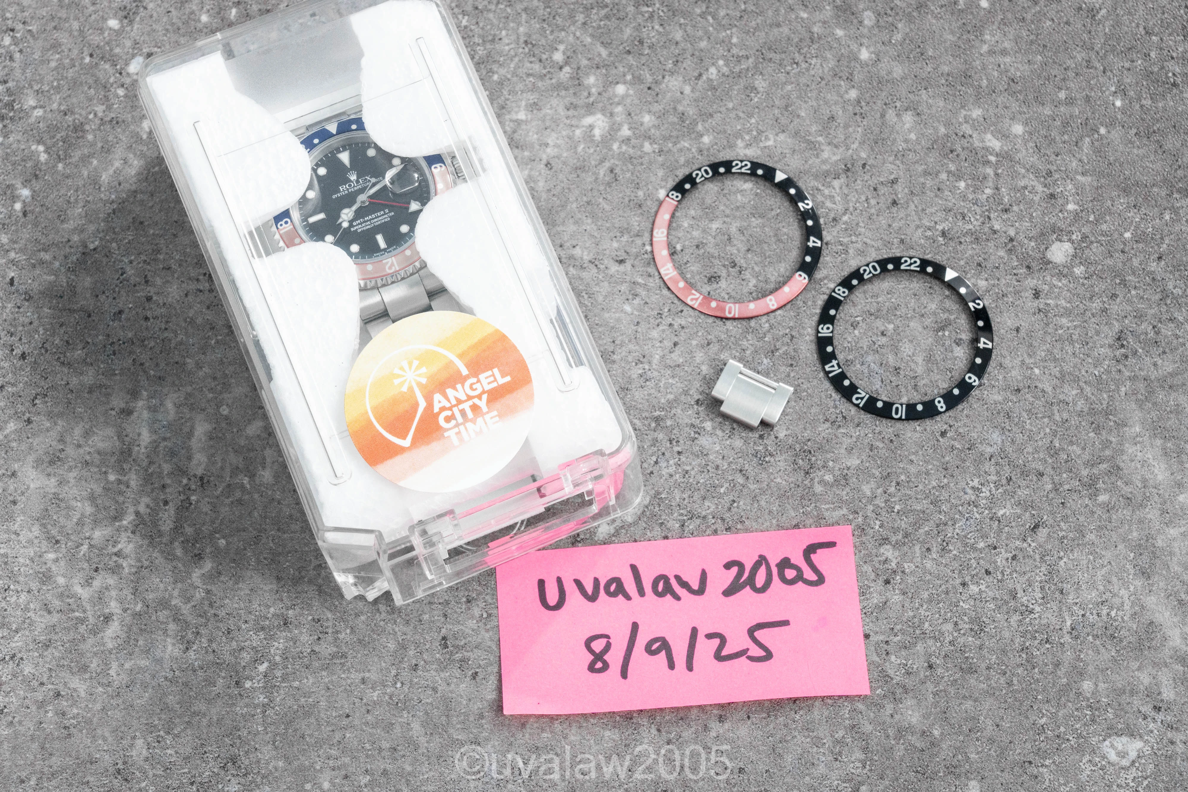 ·For sale is my Rolex GMT-Master II reference 16710 with holes case, solid endlinks, and three OEM bezel inserts. I bought it earlier this year with a black bezel from Angel City Time (original sales post here), and then purchased vintage OEM Pepsi and Coke inserts from jfullm42time.