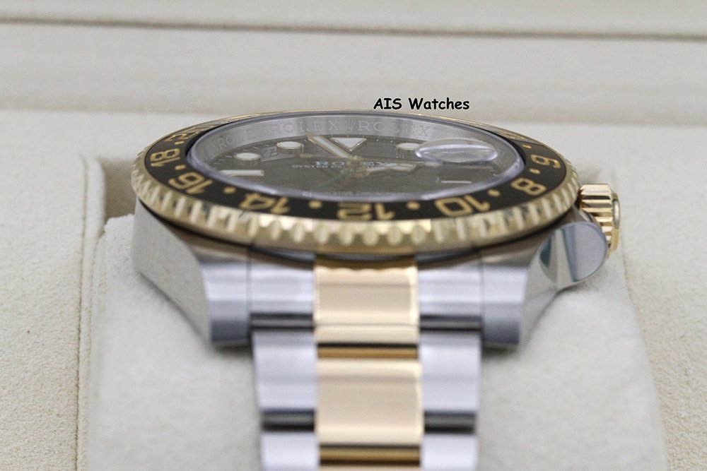 Up for sale is a Rolex GMT Master II 18K/SS 116713 LN 40MM Black Dial 2022 RSC Serviced + Box & Papers. The timepiece is in excellent condition.