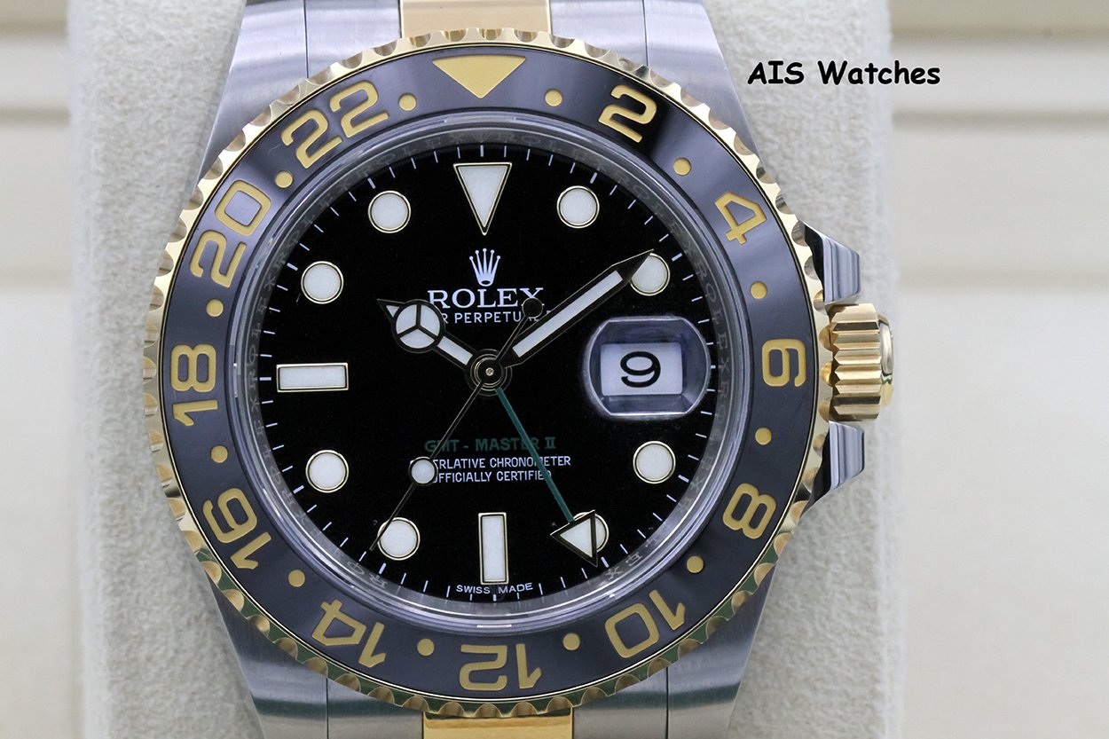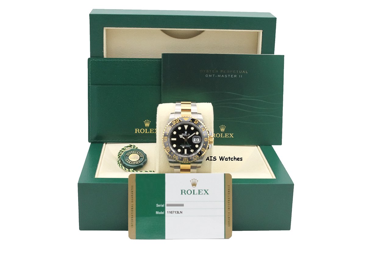 Rolex GMT Master II 18K/SS 116713LN 40MM Black Dial Box & Paper