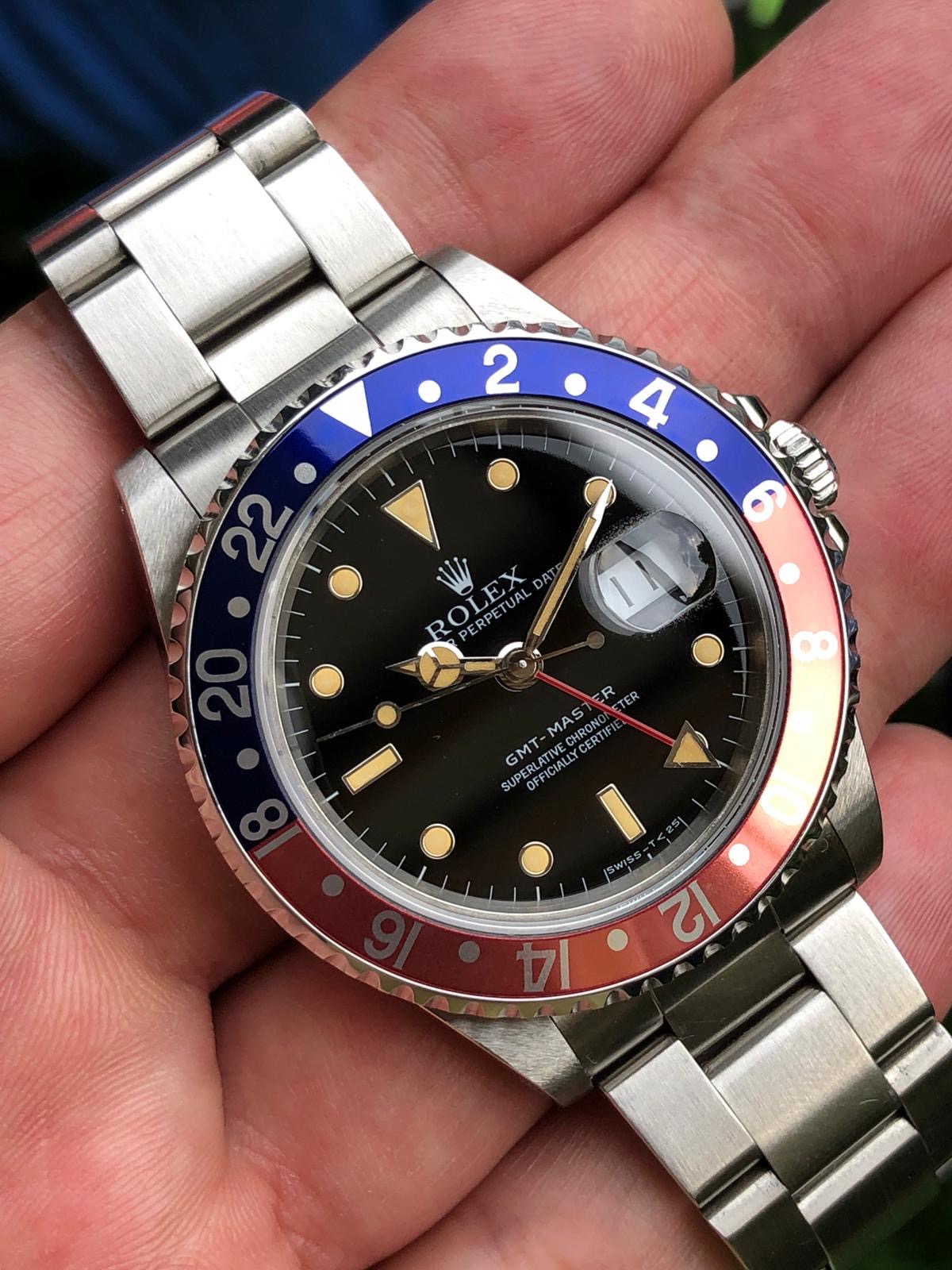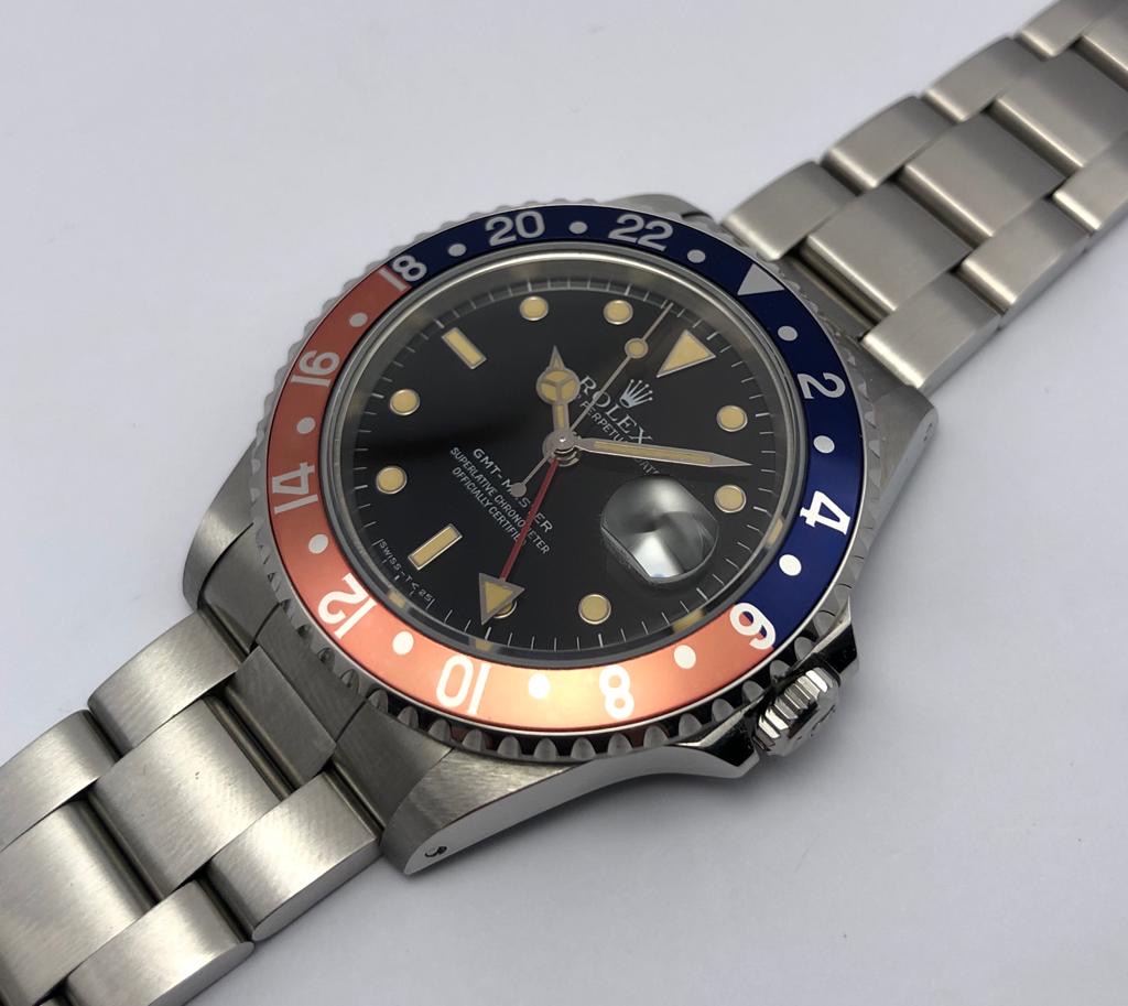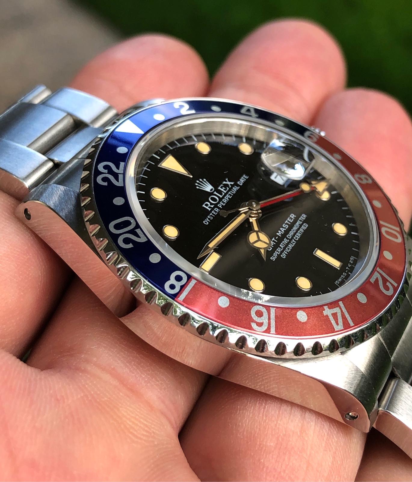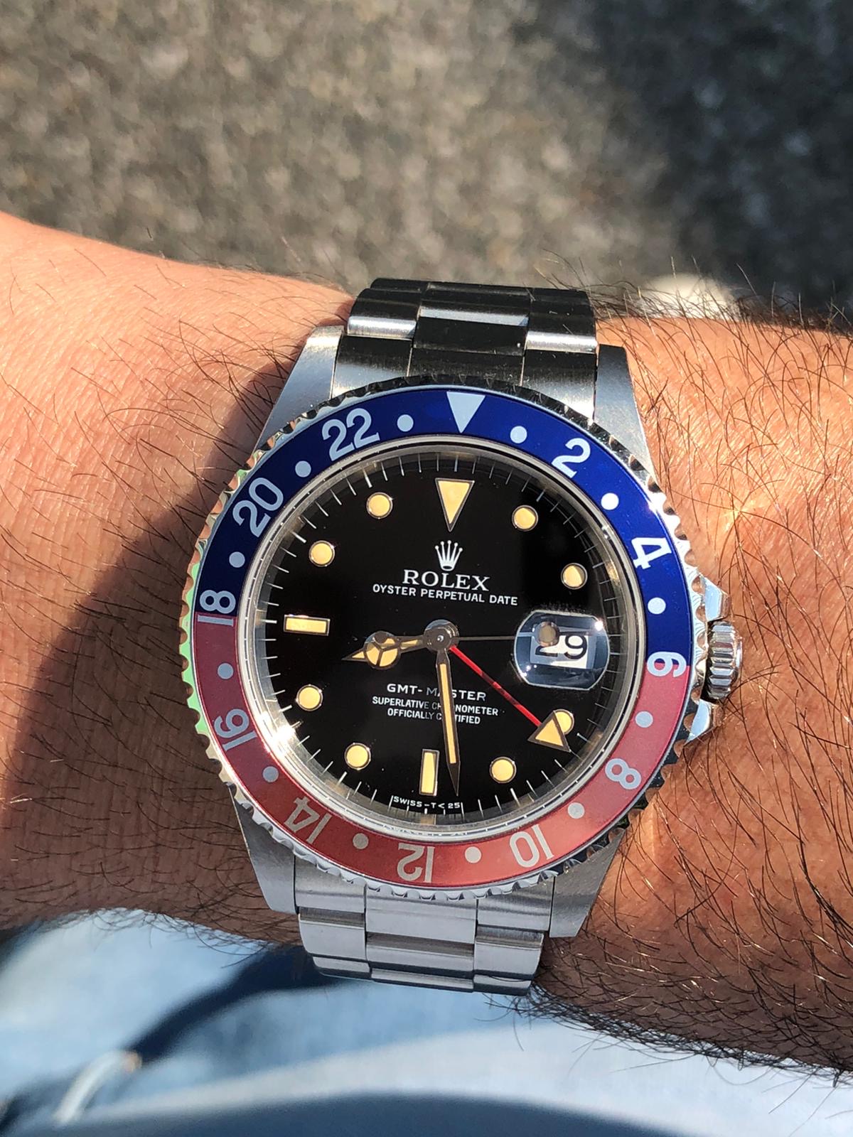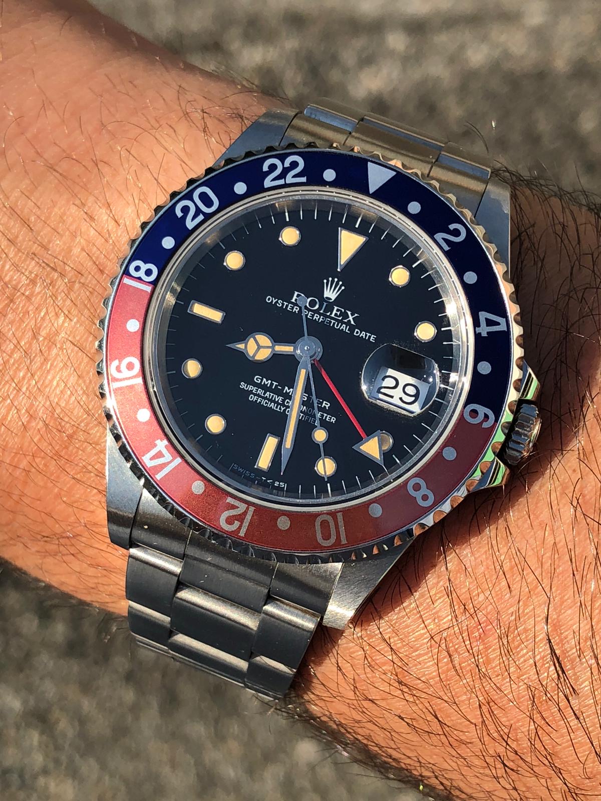 I have for sale an amazing full set Rolex GMT Master ref.16700 in excellent conditions, with a strong case, a beautiful dial with killer patina and a lovely fat font serif bezel insert naturally faded to salmon / coral pink.