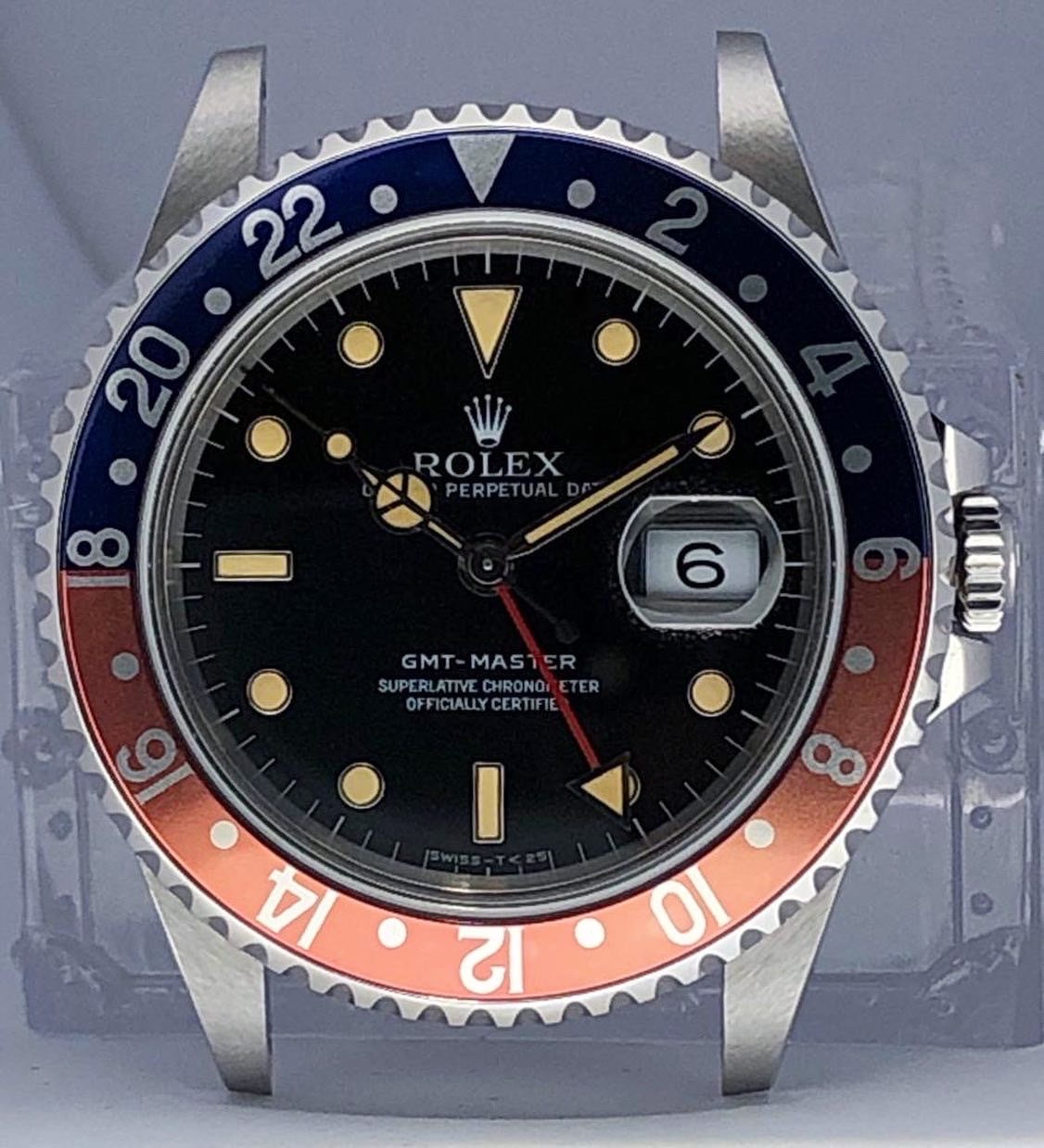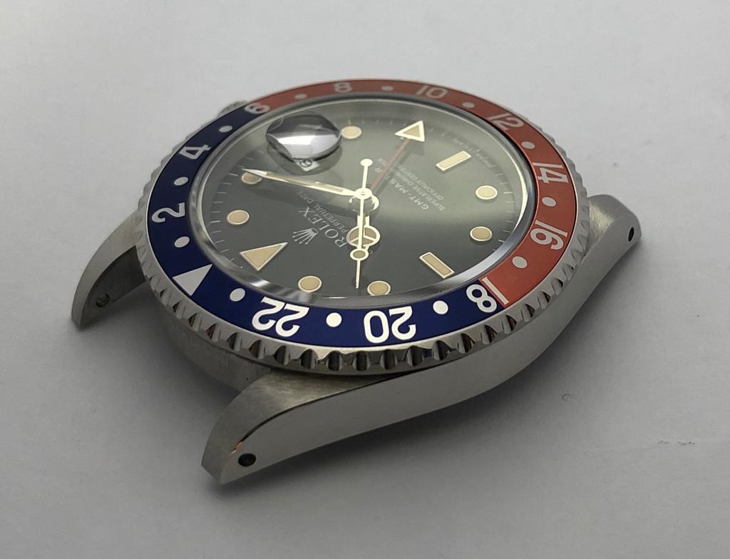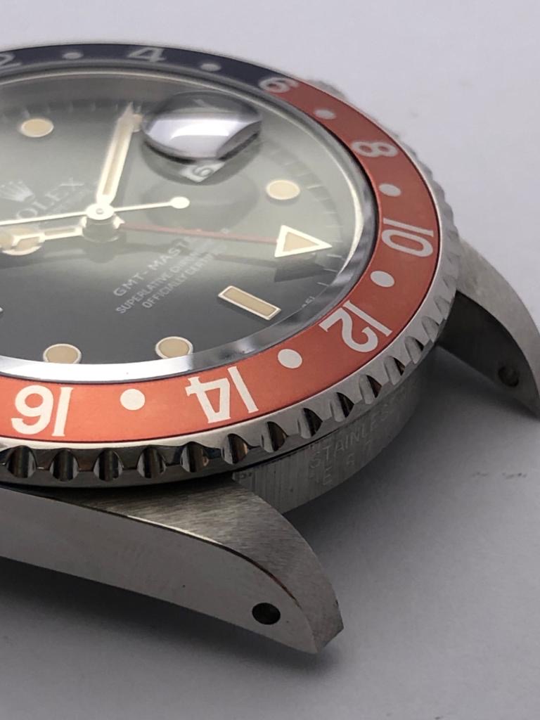 Original Rolex "Pepsi" serif bezel insert in mint condition with a beautiful salmon fading.