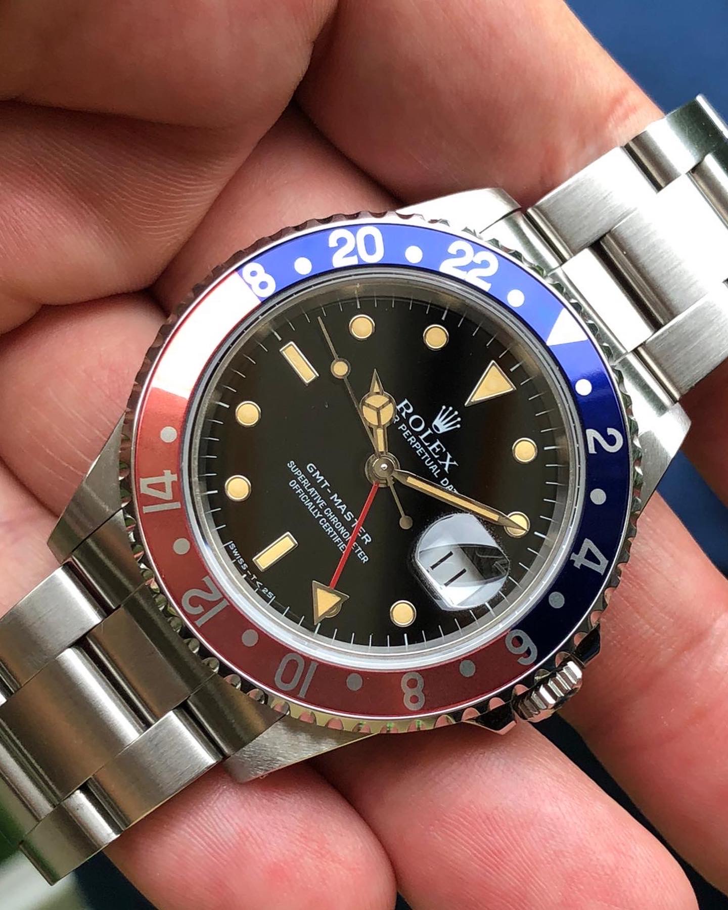 The dial is an original Rolex 16700 tritium dial with a strong patina even on all plots and all lettering is clearly visible and correct.