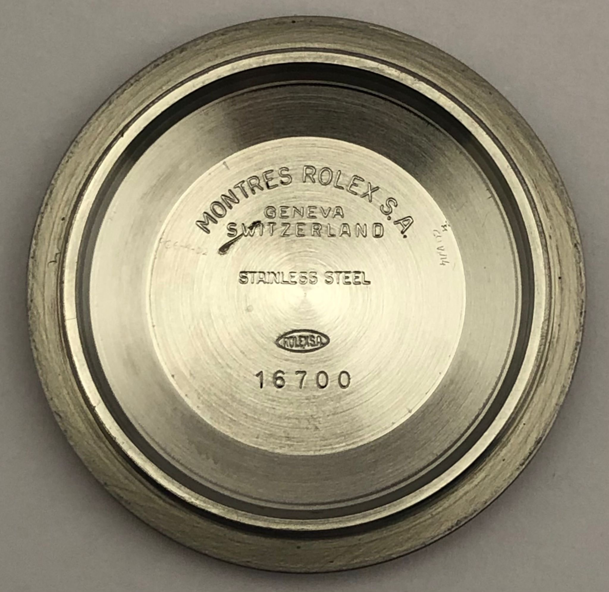 The dial is an original Rolex 16700 tritium dial with a strong patina even on all plots and all lettering is clearly visible and correct.