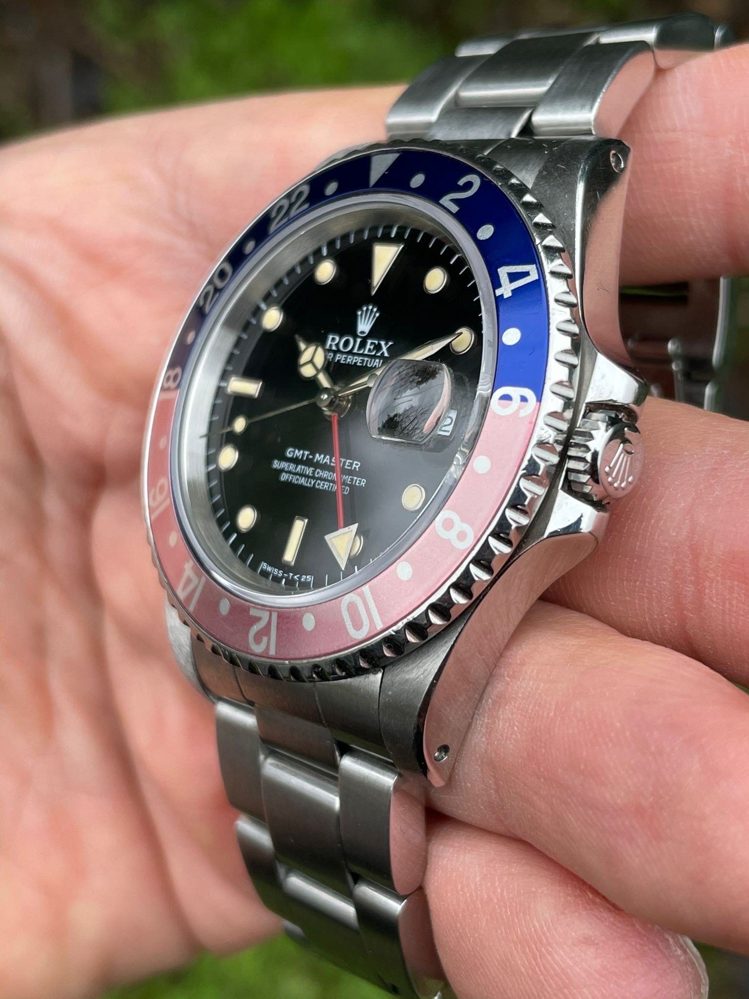 I have for sale a fantastic full set Rolex GMT Master ref.16700 in amazing conditions, with an unpolished case, a flawless dial with killer patina and a beautiful pink fat font serif 'Pepsi' bezel insert.