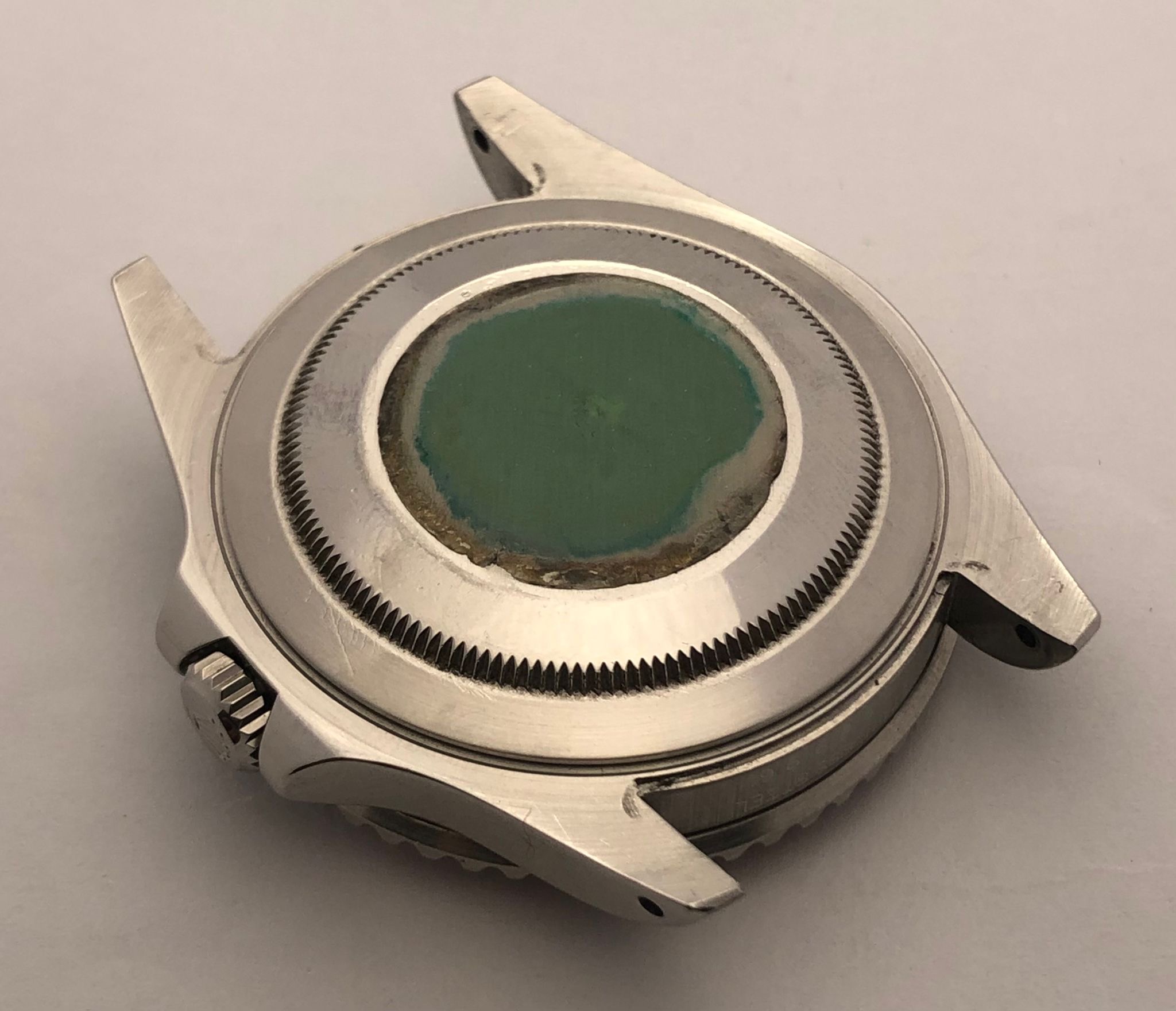 Even and thick case, that in my opinion has never been polished, with the original Rolex sticker on caseback.