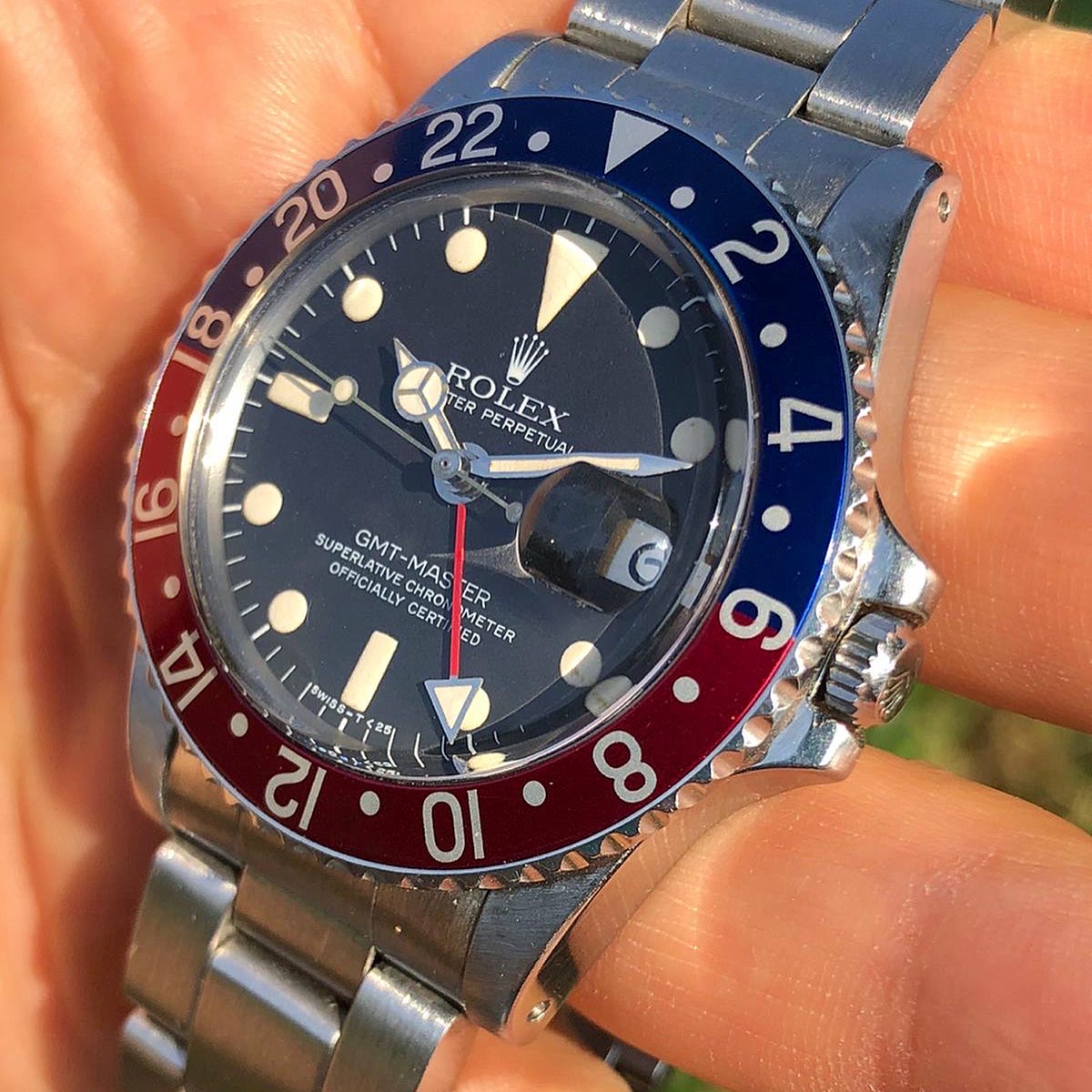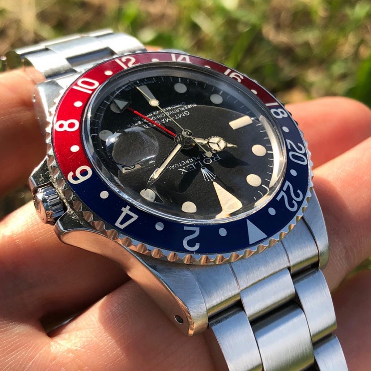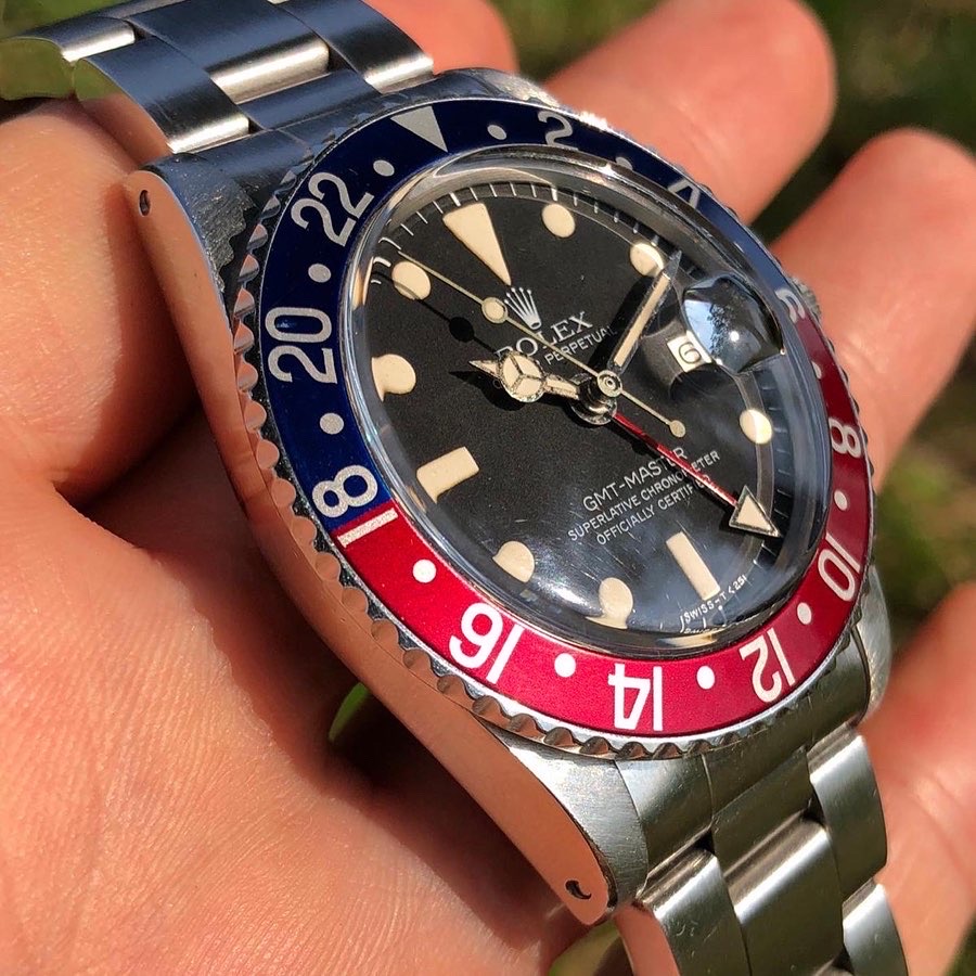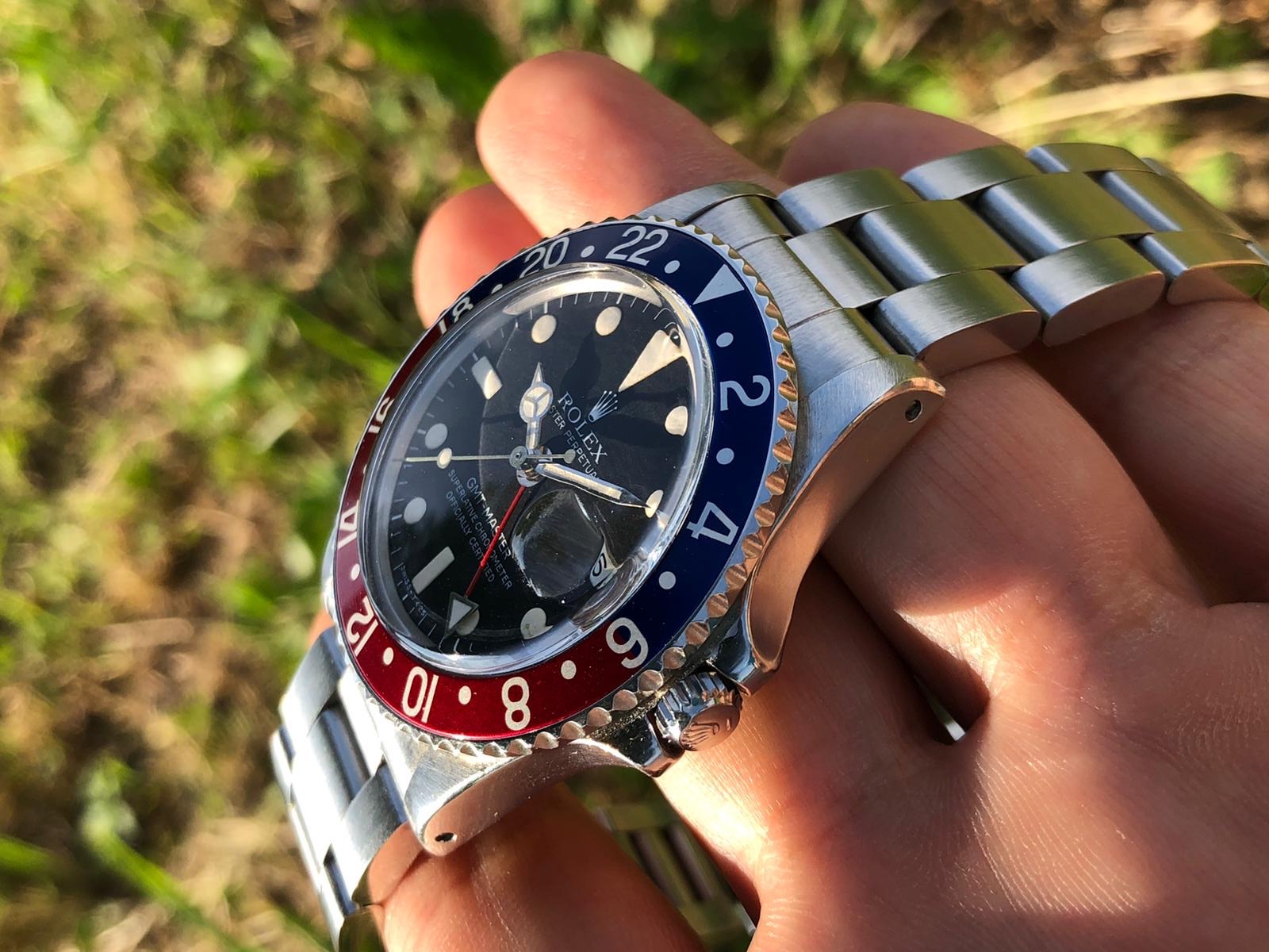 The Rolex GMT-Master 1675 Maxi dial is one of the most sought after vintage Rolex GMT-Master and this"maxi" dial is in stunning condition, with beautifully matching hour plots and hands that have a light vanilla patina.