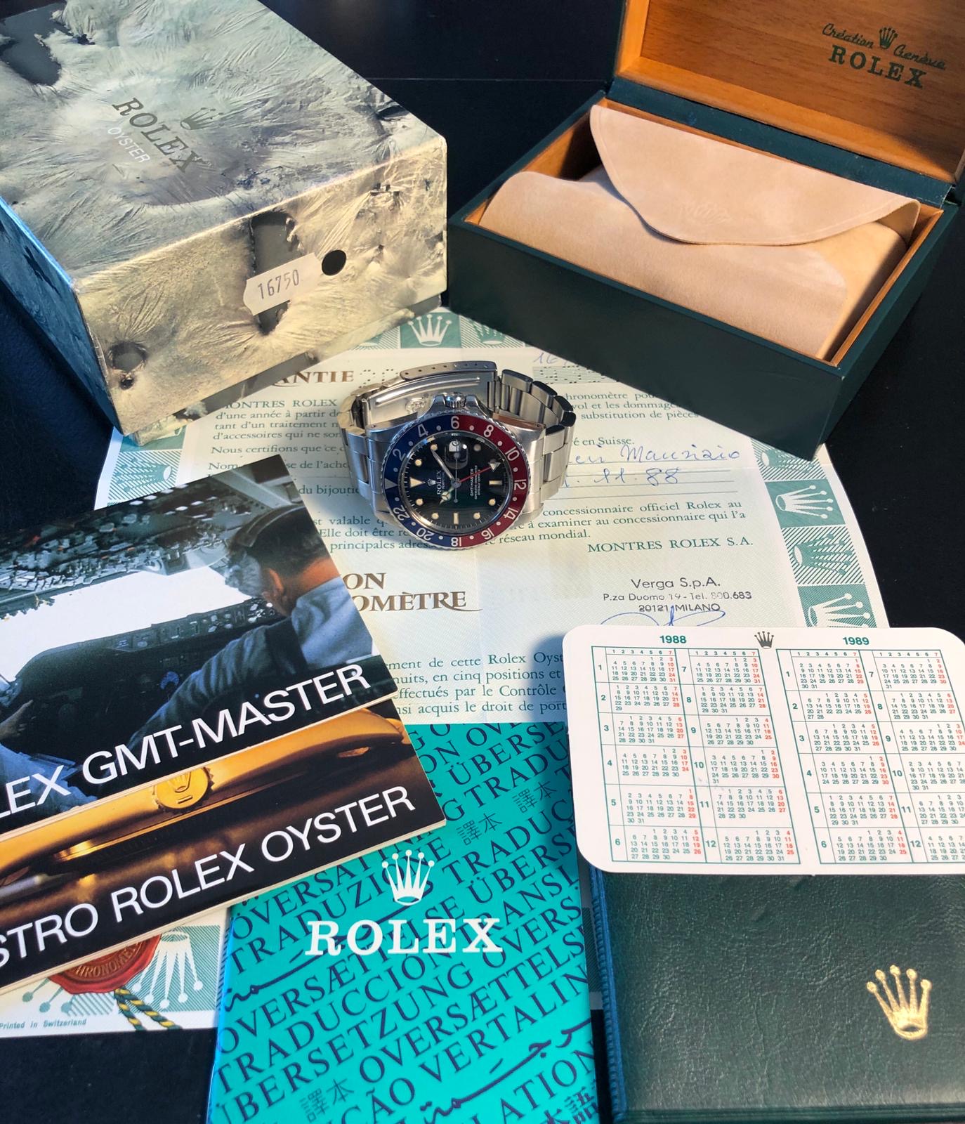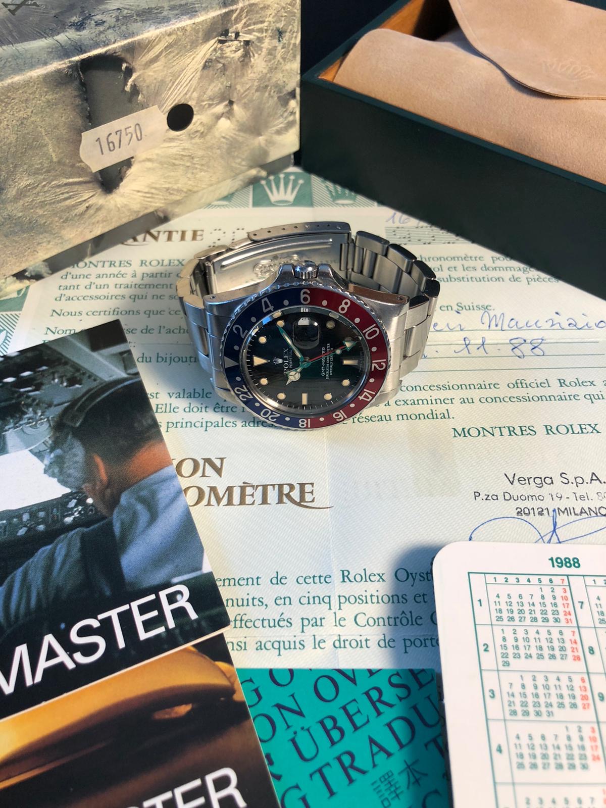 I have for sale a full set 9.3 serial GMT Master 16750 in great conditions, with an unpolished case, a fantastic dial and a beautiful 'Pepsi' bezel insert.
