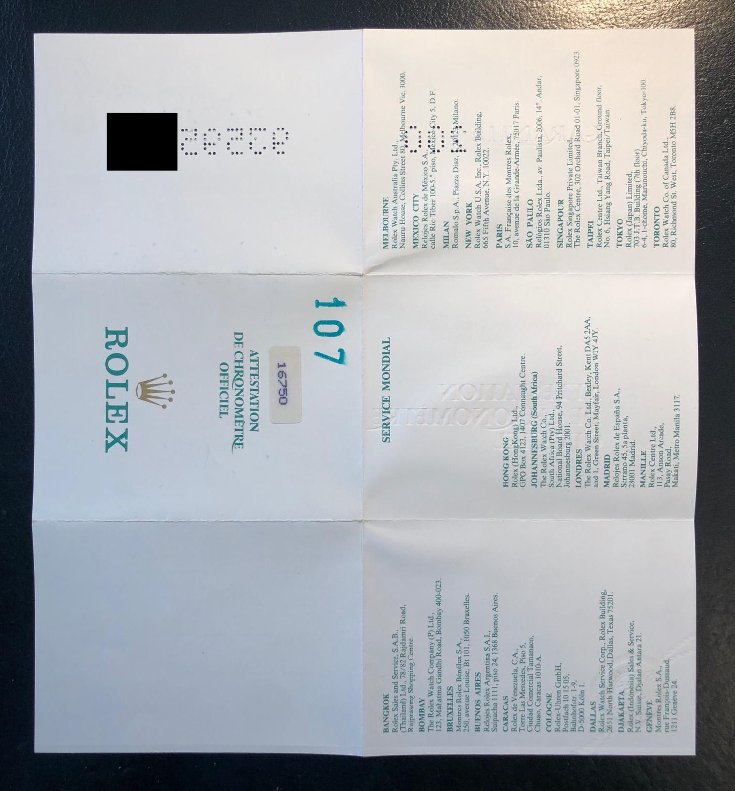 The watch comes with the complete full set, including the original Rolex guarantee.