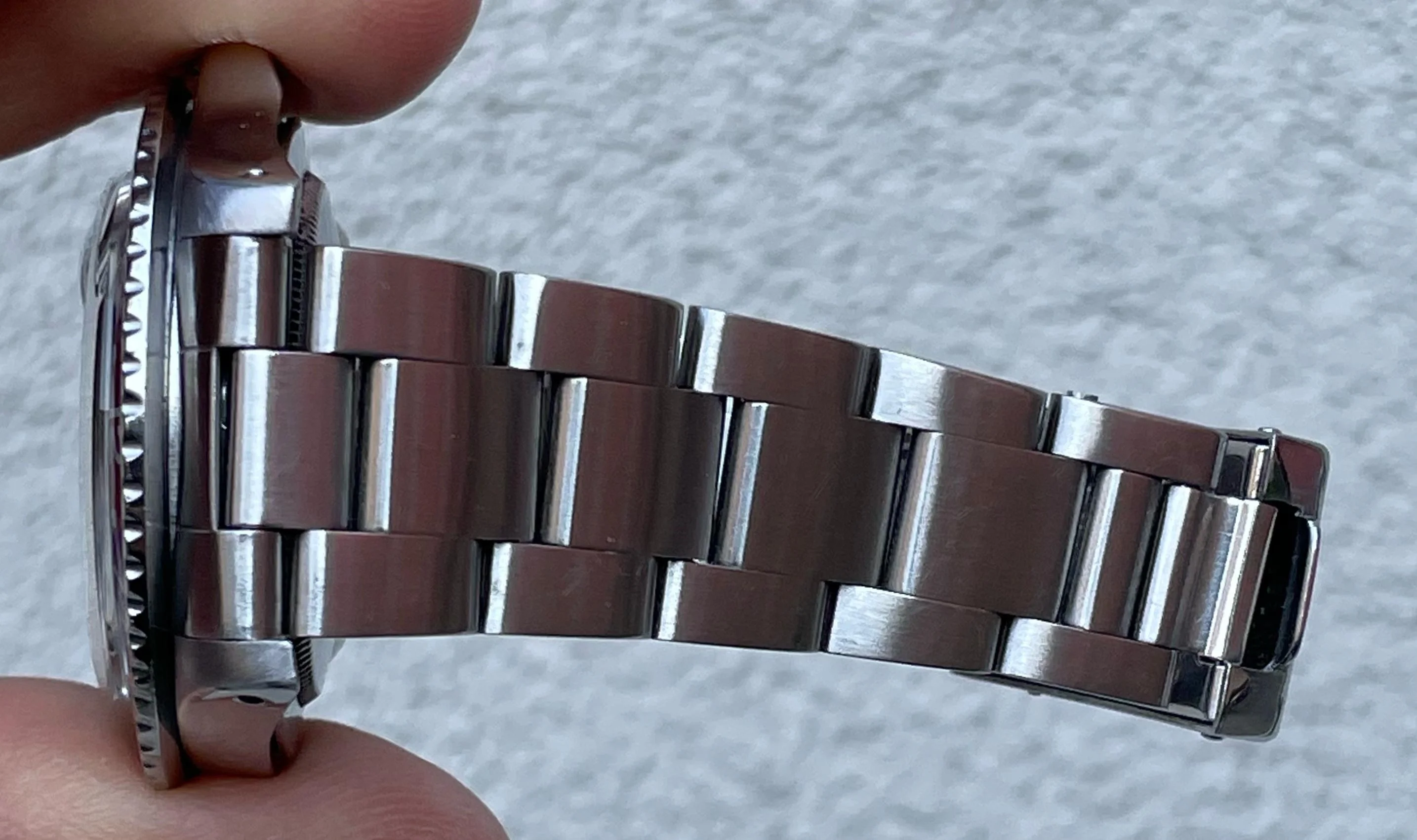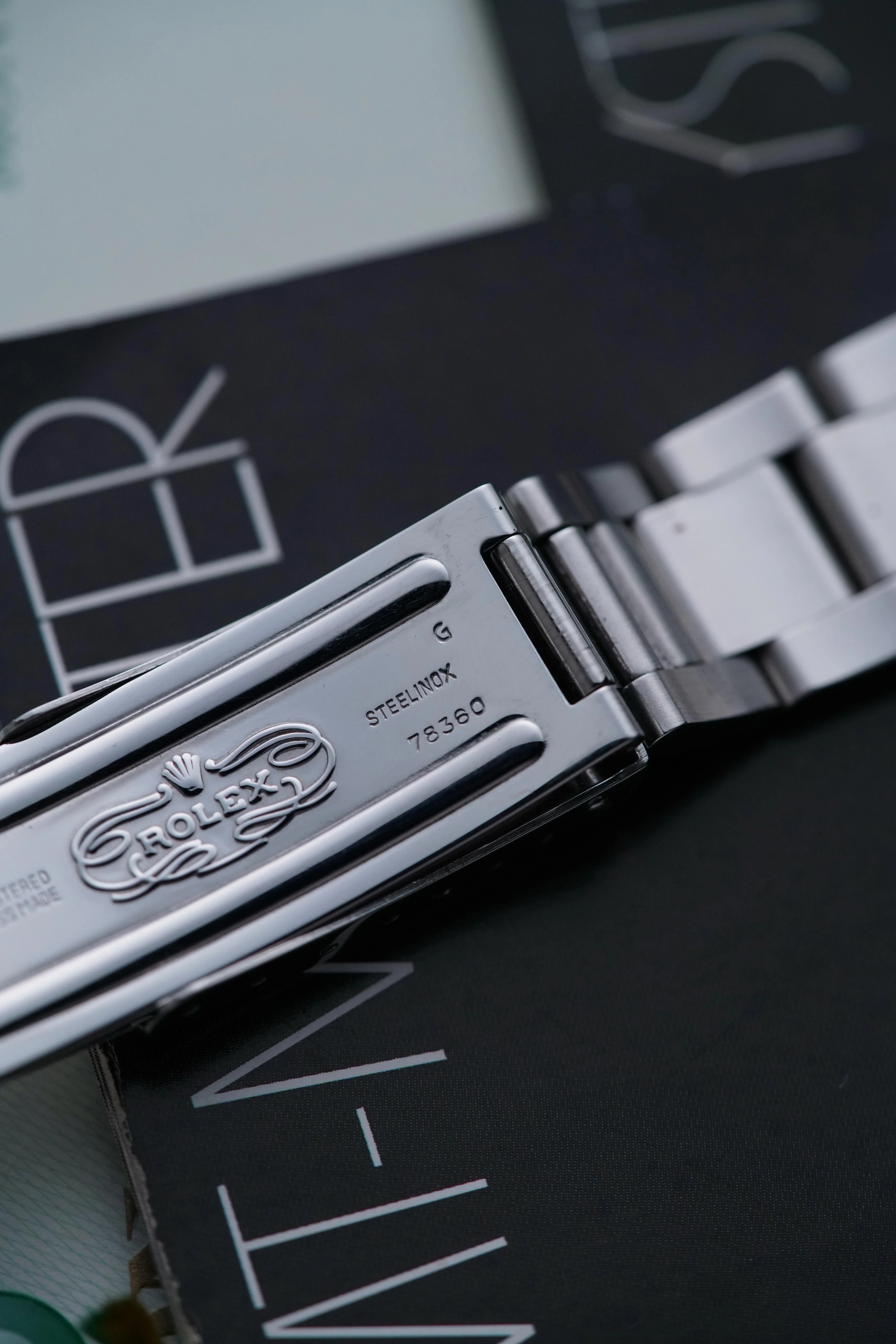 Bracelet is original 78360 with correct ‘G’ date code, all 13 links, correct 580 ends.