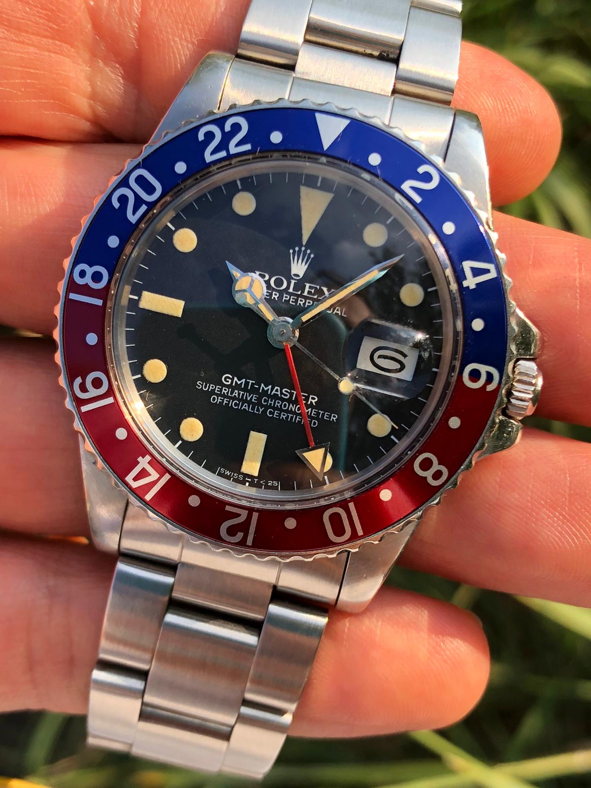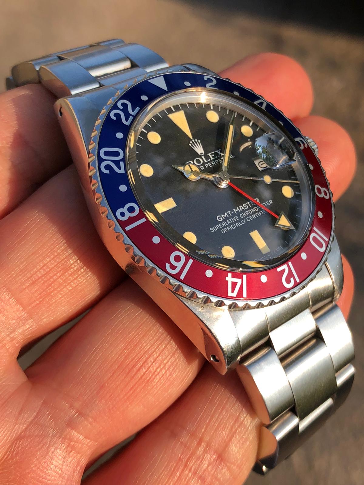 I have for sale a 6.7 serial GMT Master ref.16750 in great conditions, with a strong case, a beautiful dial with a nice patina and a fantastic fat font Pepsi insert.